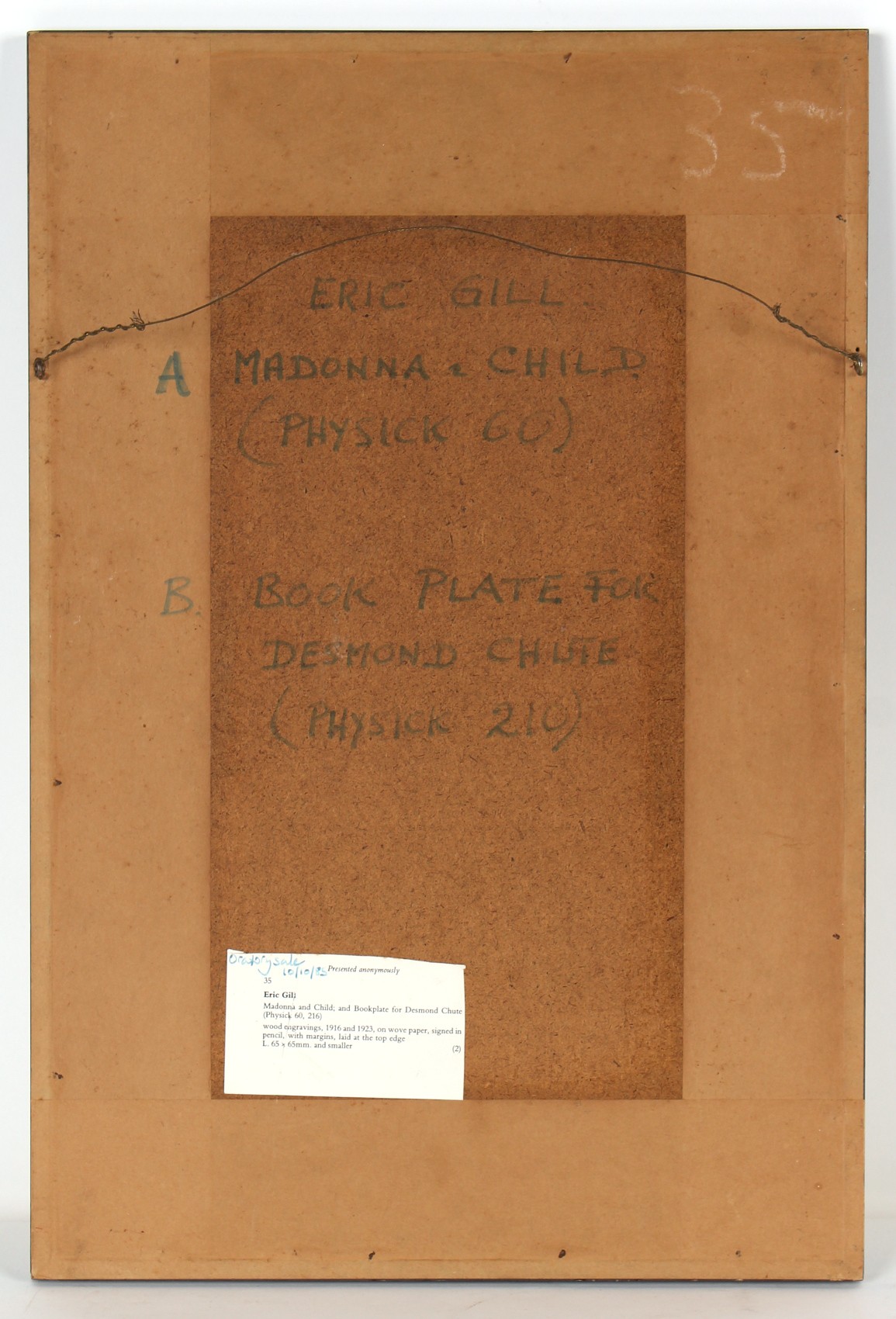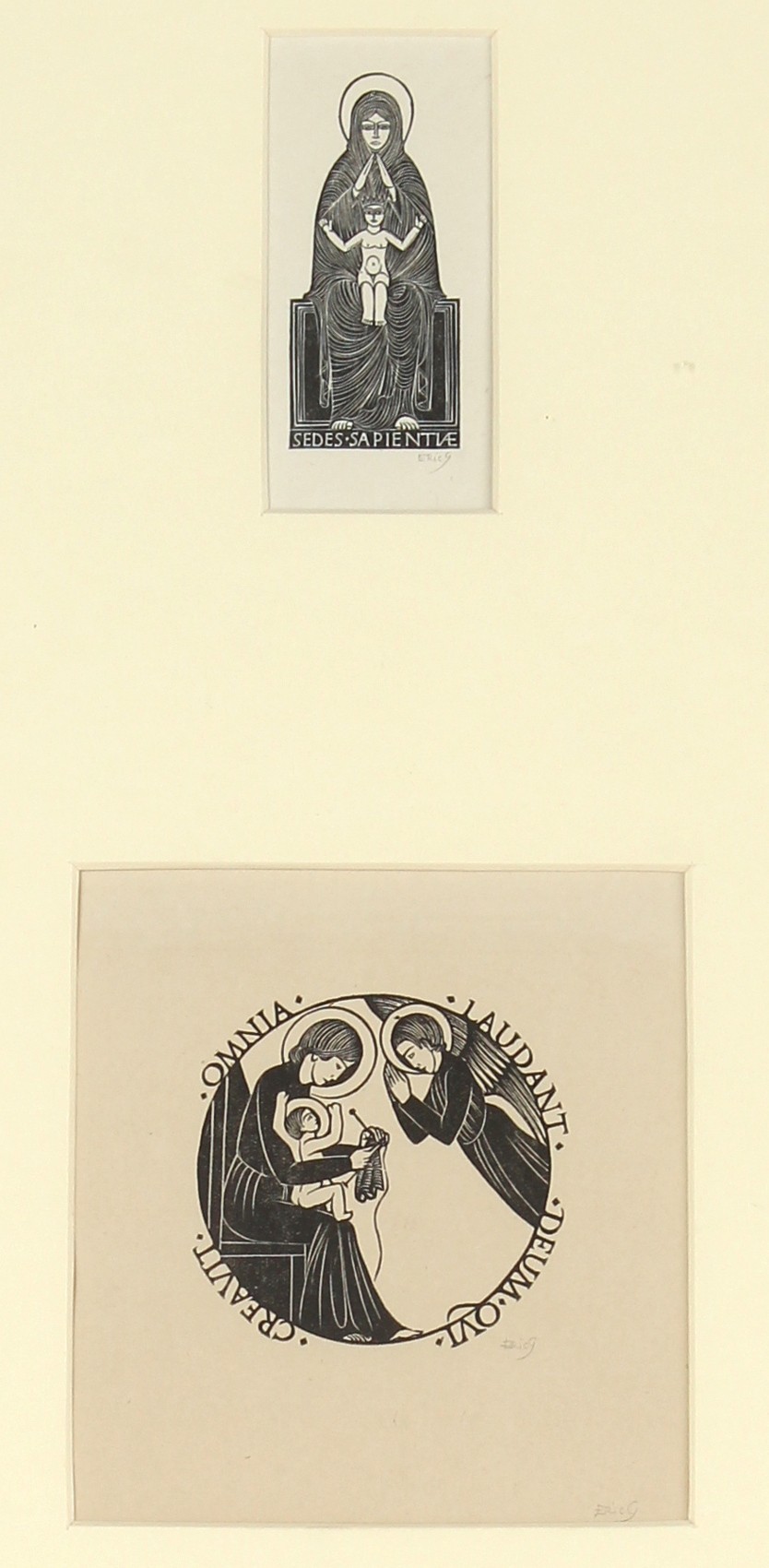 Property of a lady - Eric Gill (1882-1940) - MADONNA AND CHILD and BOOKPLATE FOR DESMOND CHUTE (Physick 60 and 216) - wood engravings, 1916 and 1923, on wove paper, both signed in pencil in the margin, mounted in a single glazed frame, 19.75 by 13.25ins. (50.2 by 33.7cms.) (overall).