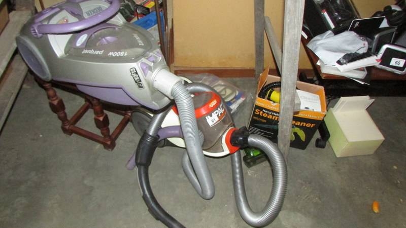 A Vax vacuum cleaner, a Black and Decker vacuum and a hand steam cleaner. (Collect only)