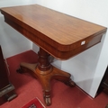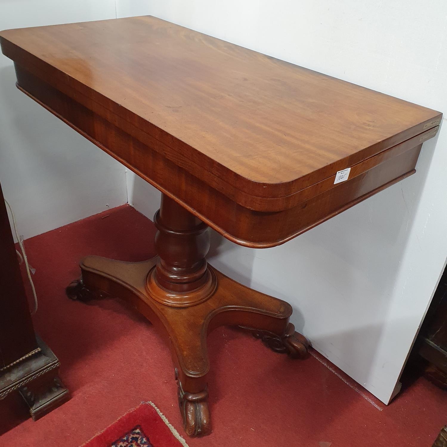 A wonderful early 19th Century blonde Mahogany fold over Tea Table with turned shaft, platform base and moulded feet. 92 x 45 x 75 cms approx.