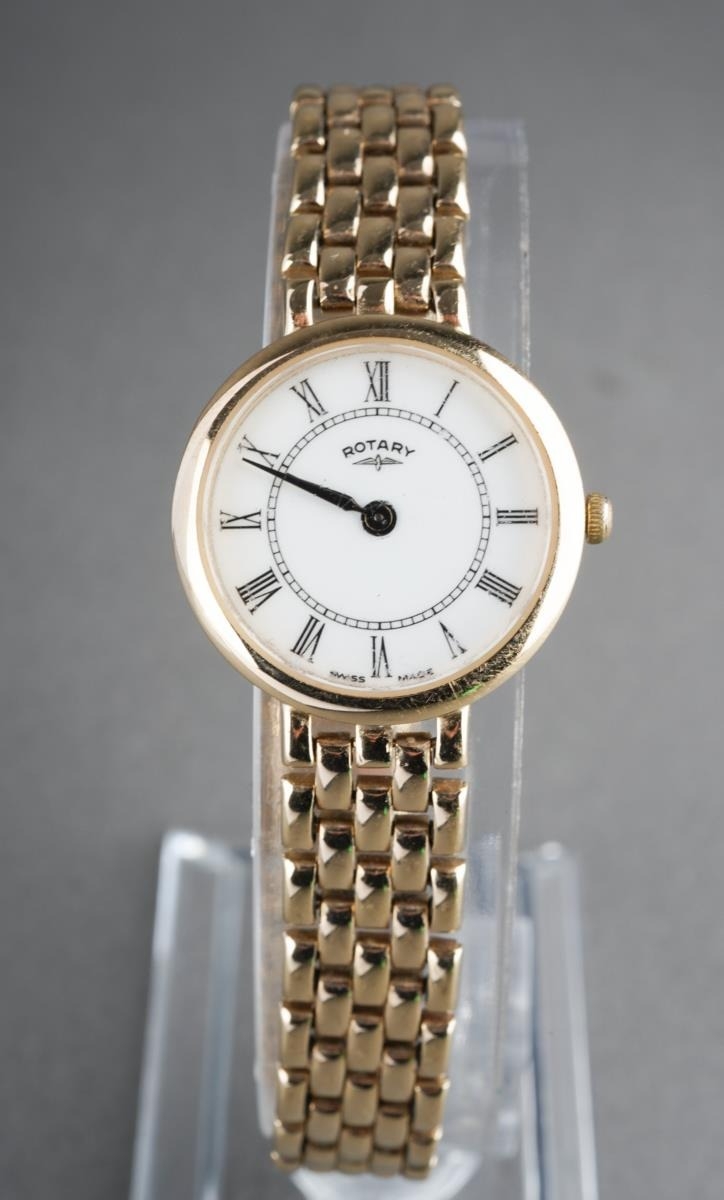 A 9ct gold Rotary wristwatch. Hallmarked 9ct gold, approx length 180mm, approx gross weight 23.8 grams.