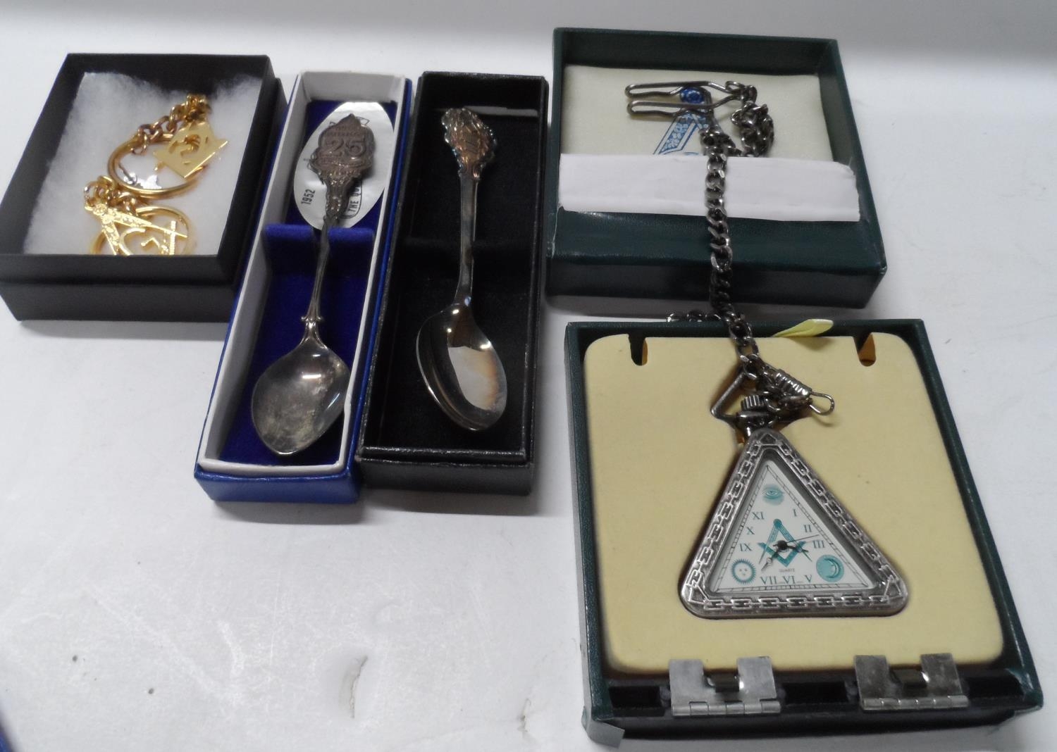 Collection of small Masonic spoons, key-rings etc