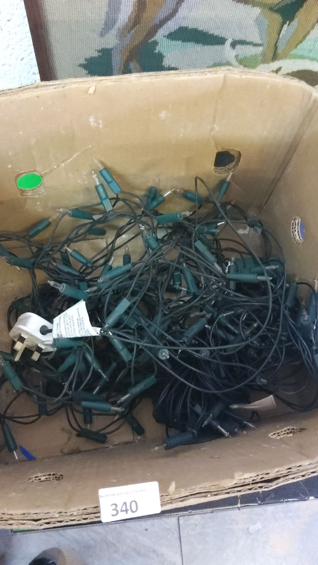 Box of assorted xmas string lights.