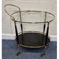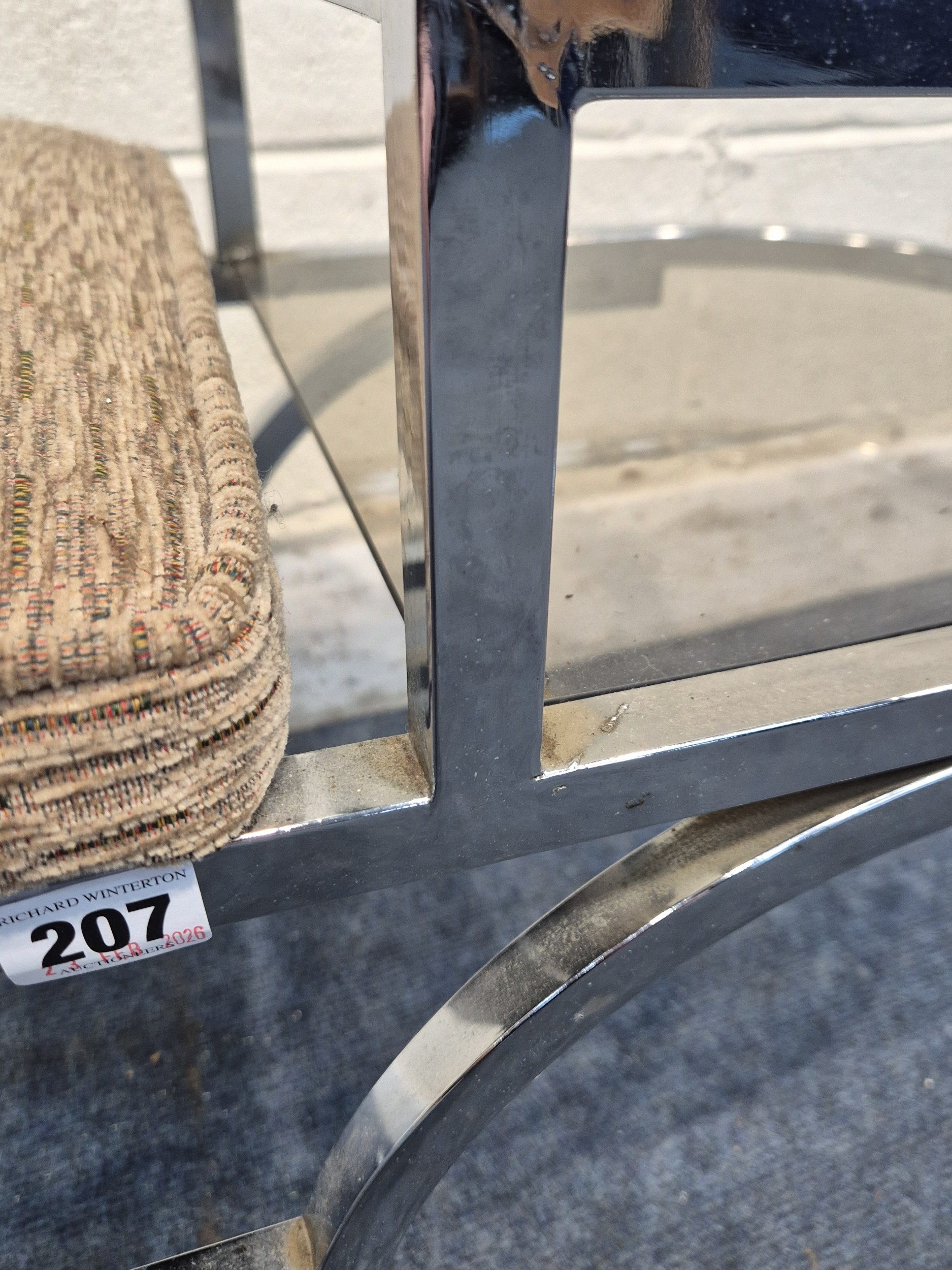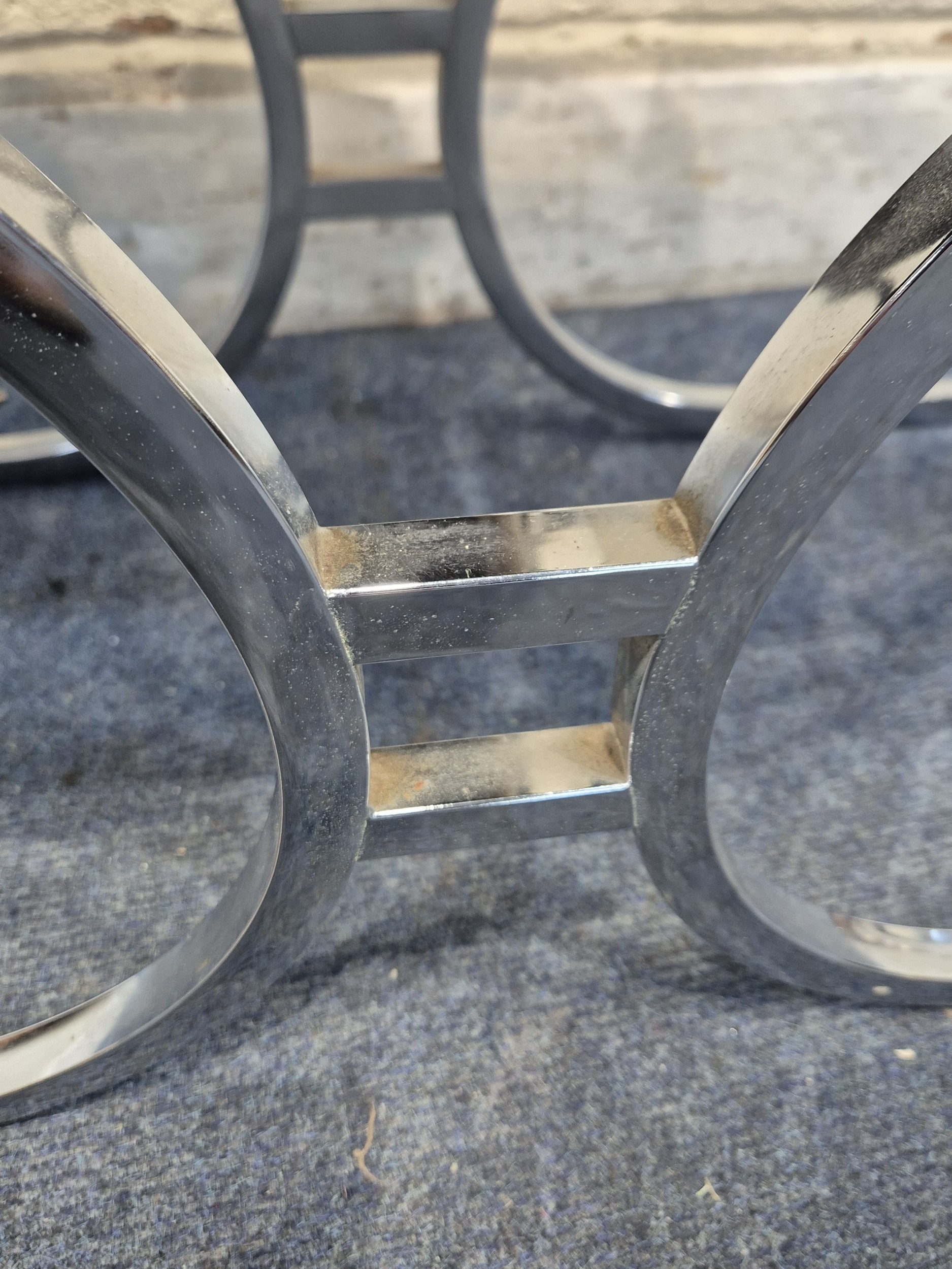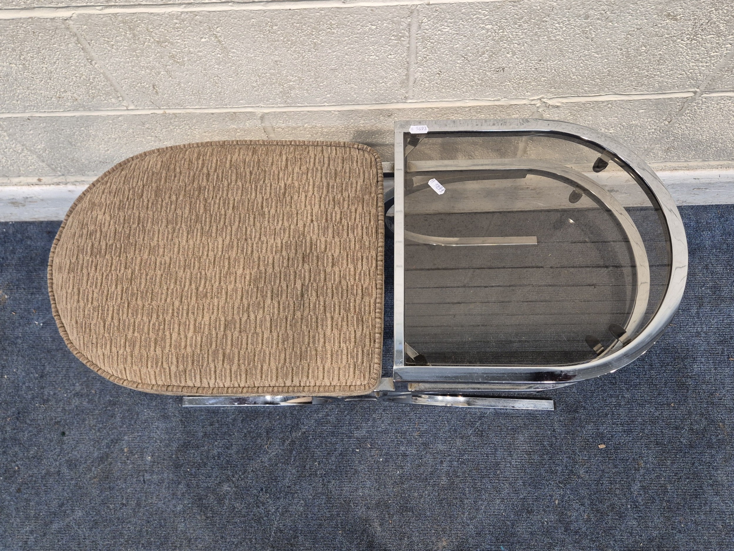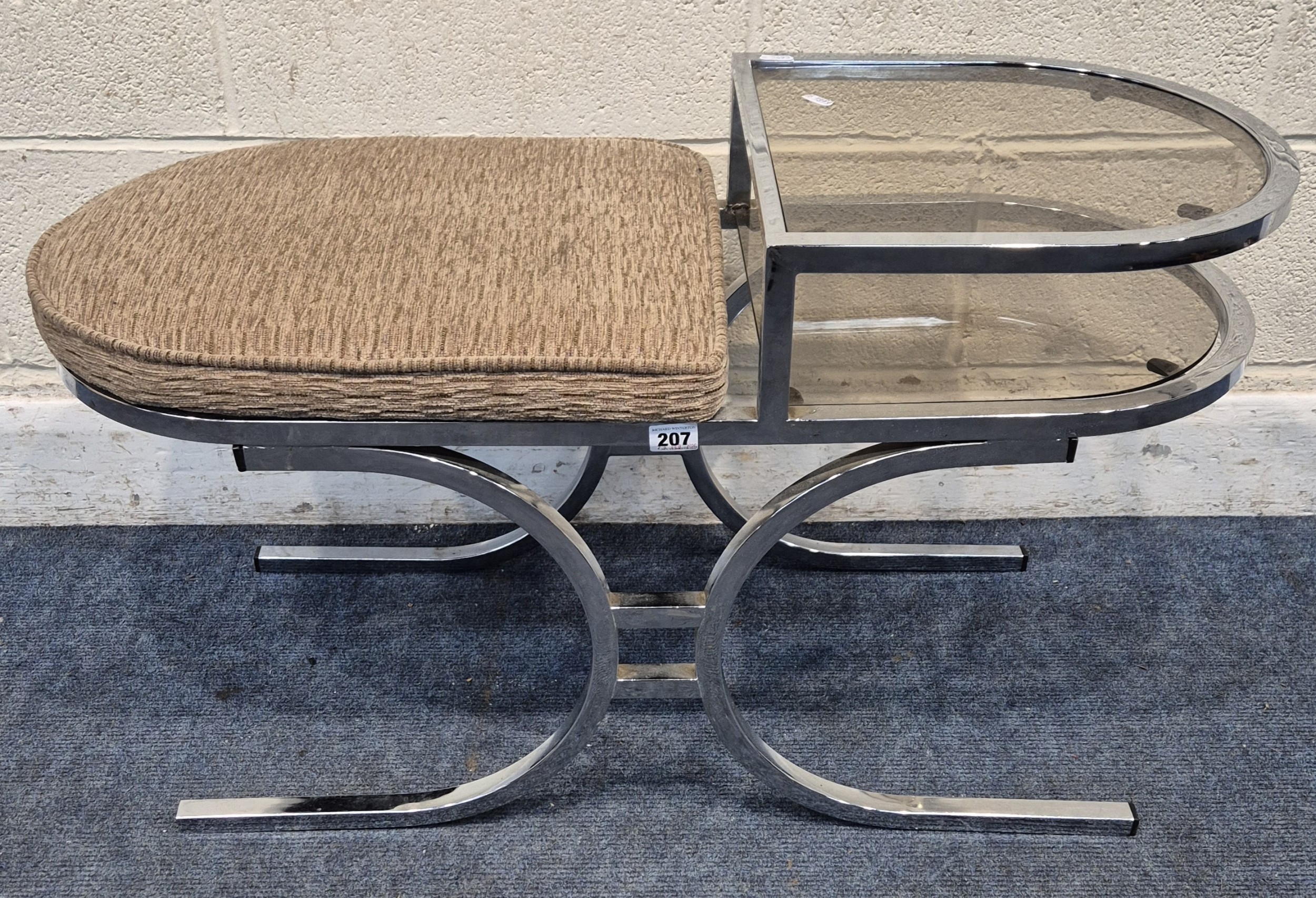 A MID-CENTURY ITALIAN CHROME FRAMED TELEPHONE TABLE, with two smoked glass shelves, width 89cm x depth 38cm x height 50cm, condition report: general signs of usage