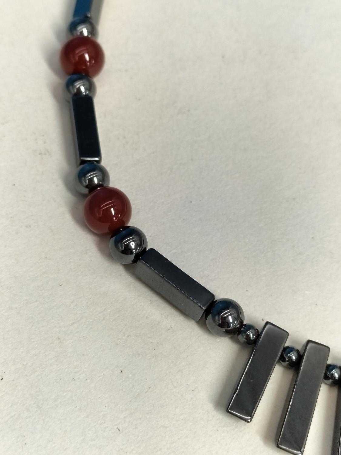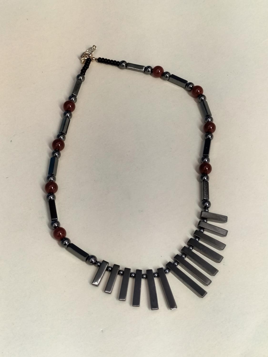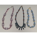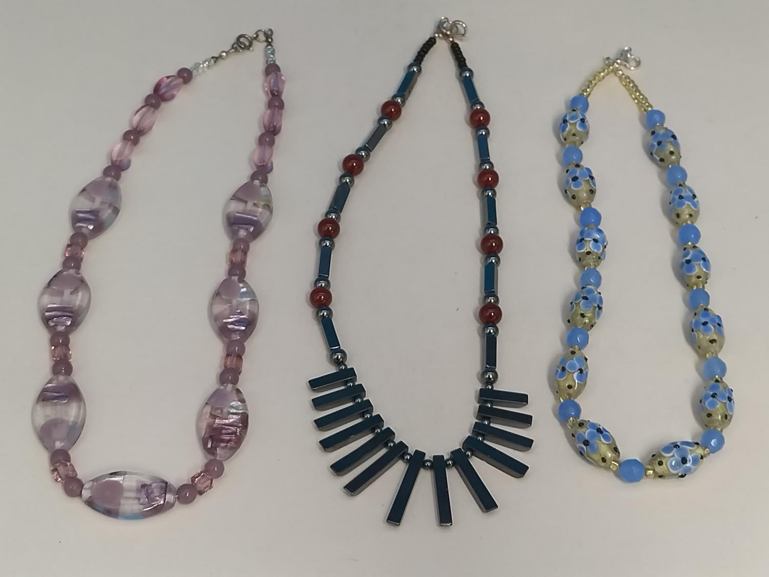 Assorted Glass and Stone Bead Necklaces (3) to include Haematite, Carnelian and Lampwork Glass. All with 925 Stamped Clasps.