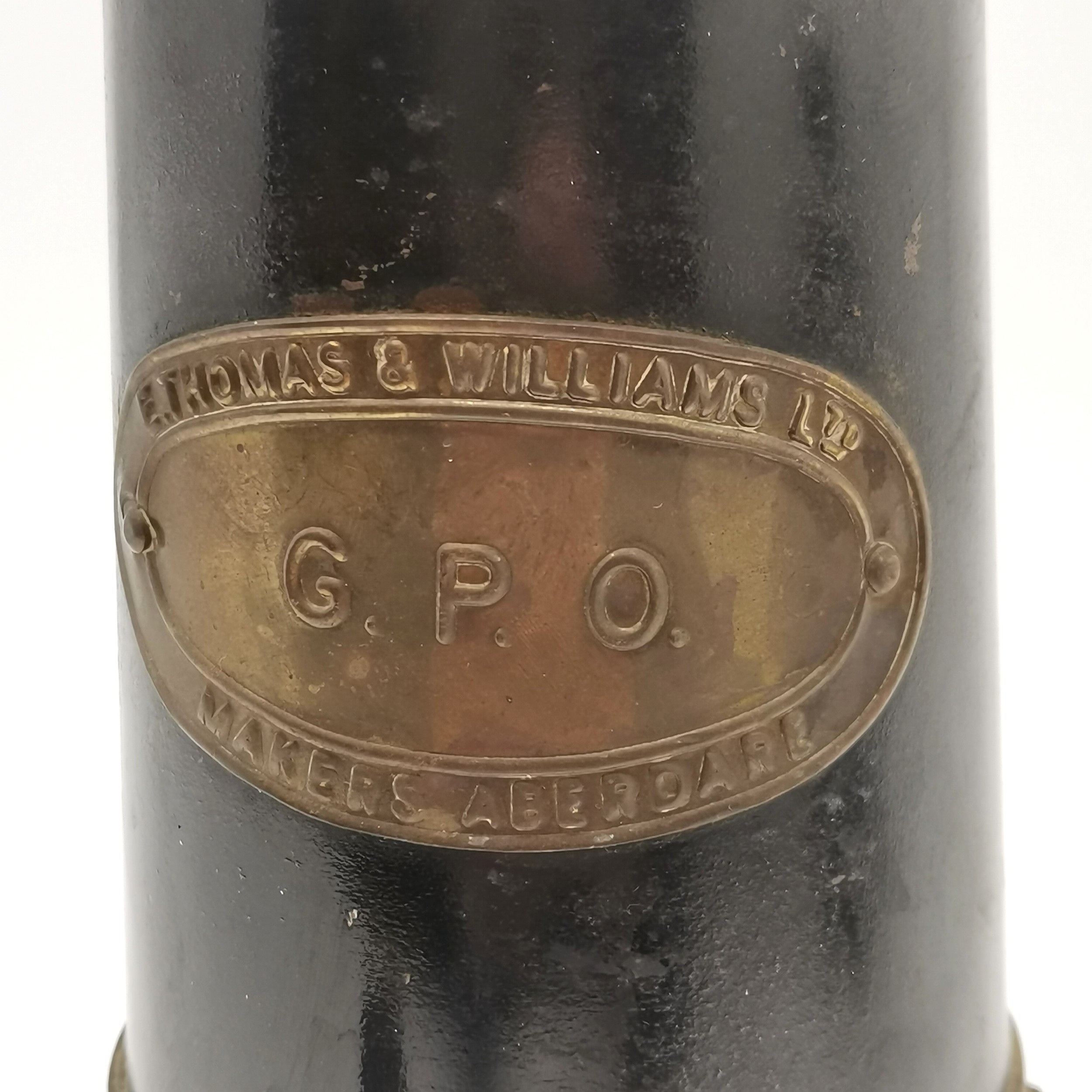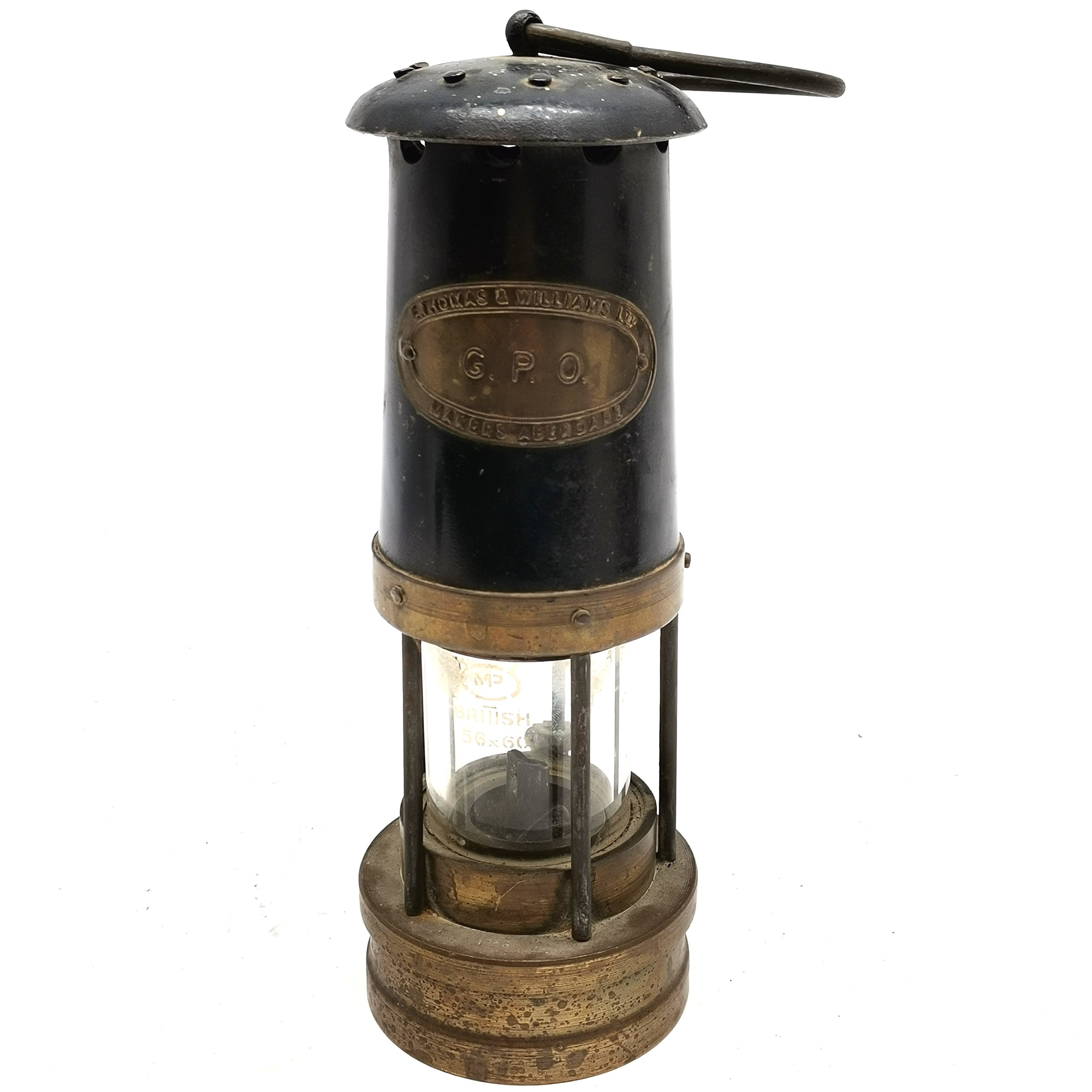 Vintage E Thomas & Williams (Aberdare) GPO miners lamp in brass & steel - 25cm high with no obvious damage ~ SOLD IN AID OF STALBRIDGE COMMUNITY CHARITY