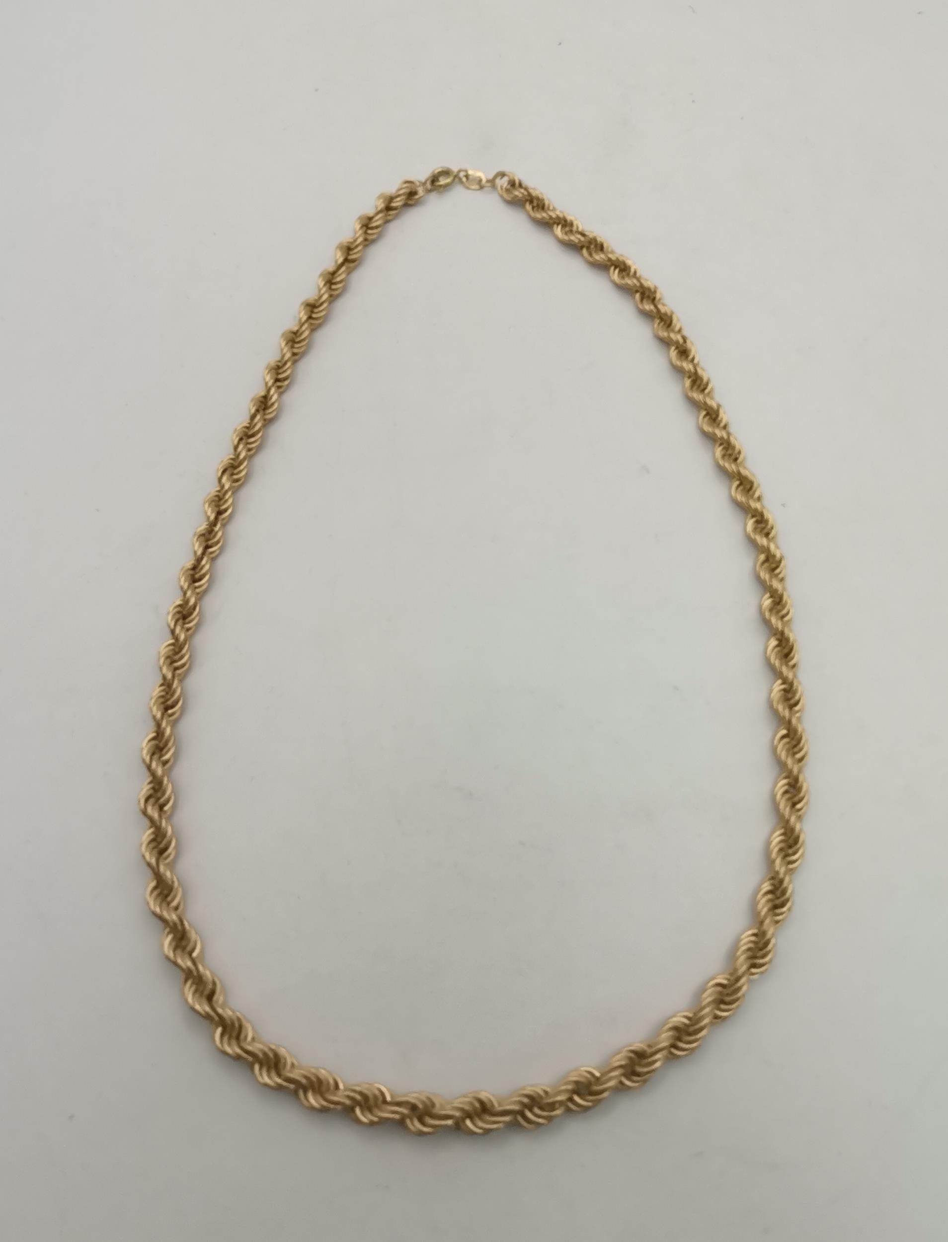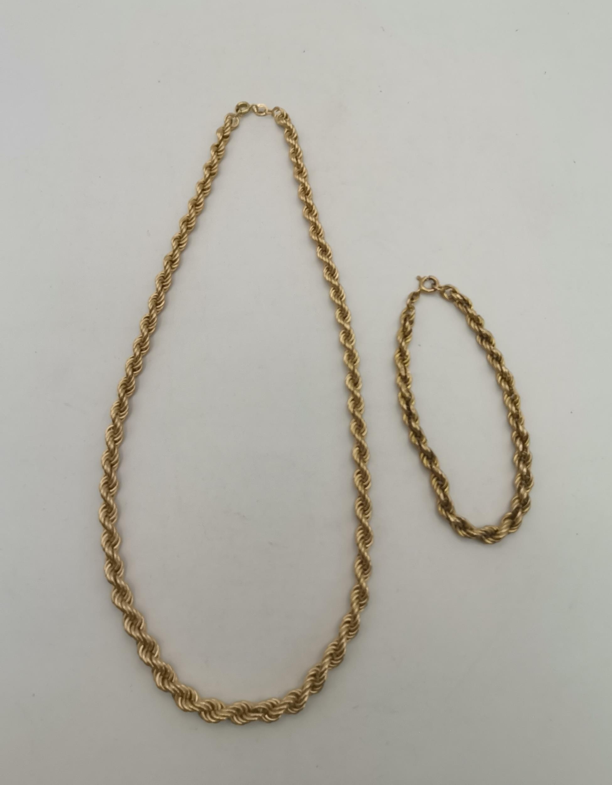 A 9 carat gold rope-twist chain necklace and bracelet set, both hallmarked 375. (2) Necklace 45.5cm long, bracelet 19.5cm long, 12.0g gross