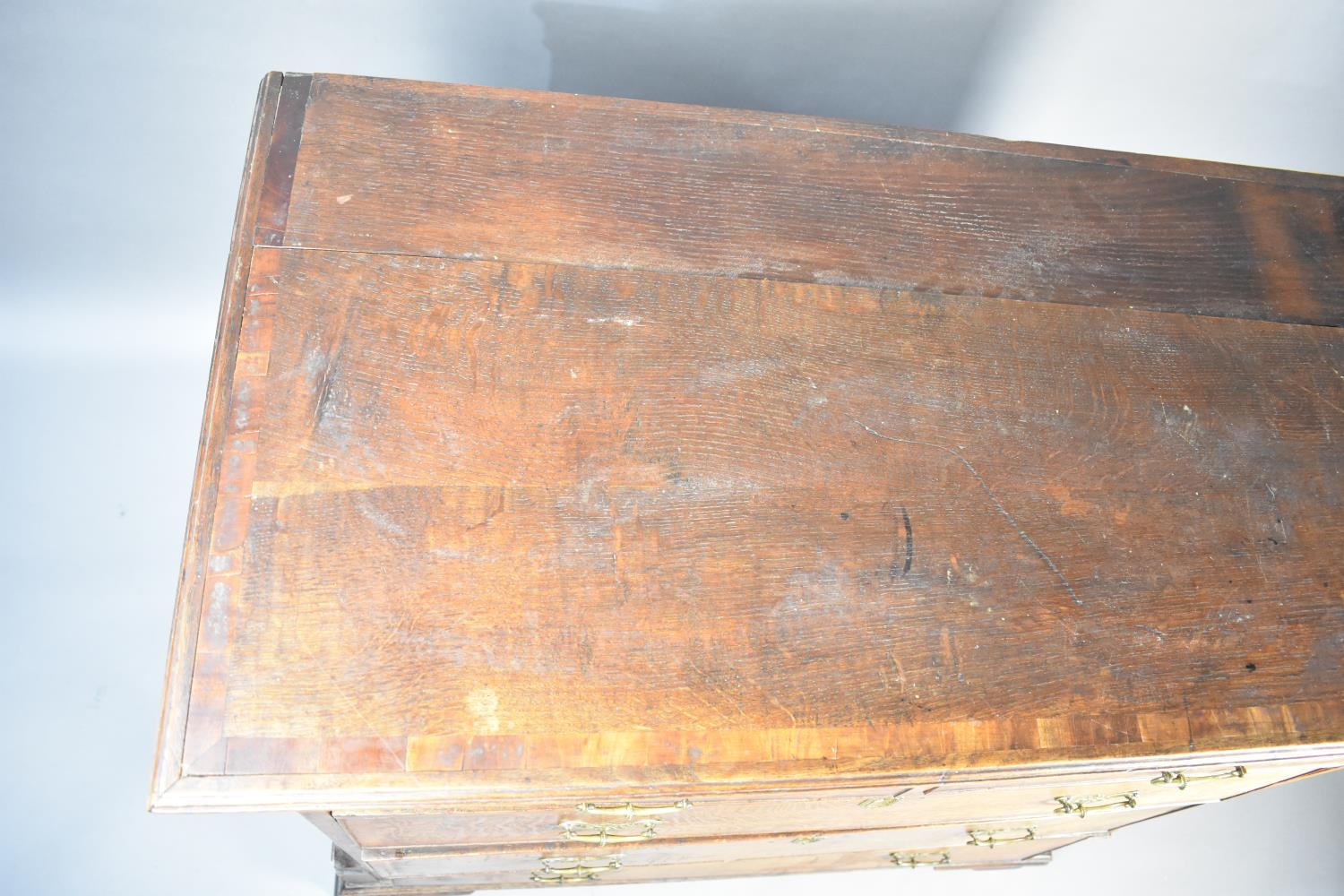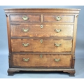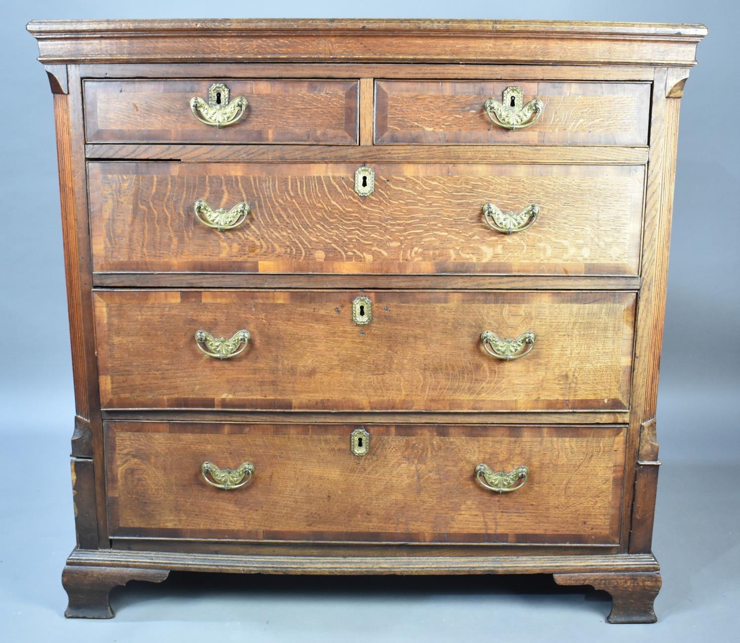 A 19th Century Oak Chest of Two Short and Three Long Drawers, Cross Banded with Mahogany, Brass Drop handles and Bracket Feet, 107cms Wide by 56cms Deep and 105cms High, Chamfered Reeded Sides