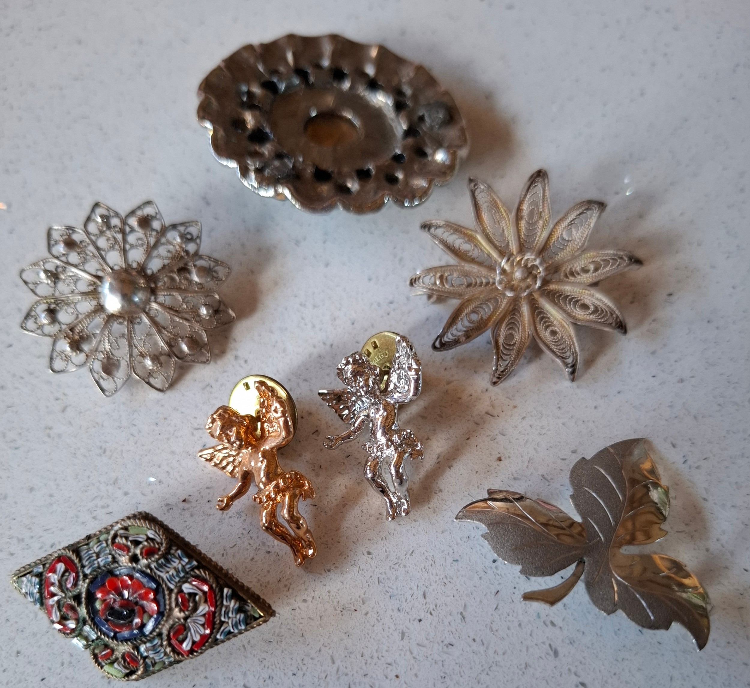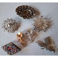 Gold chain broken, missing rear pin fastener to one brooch