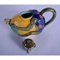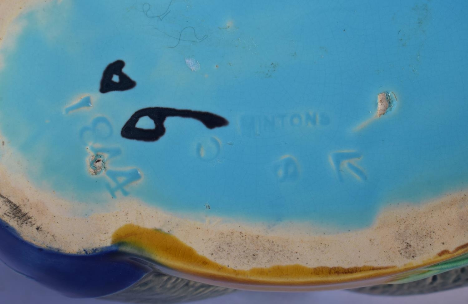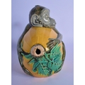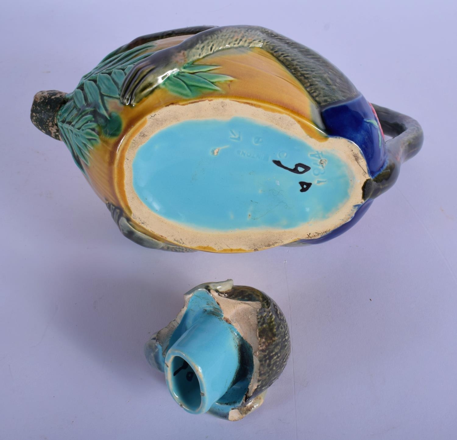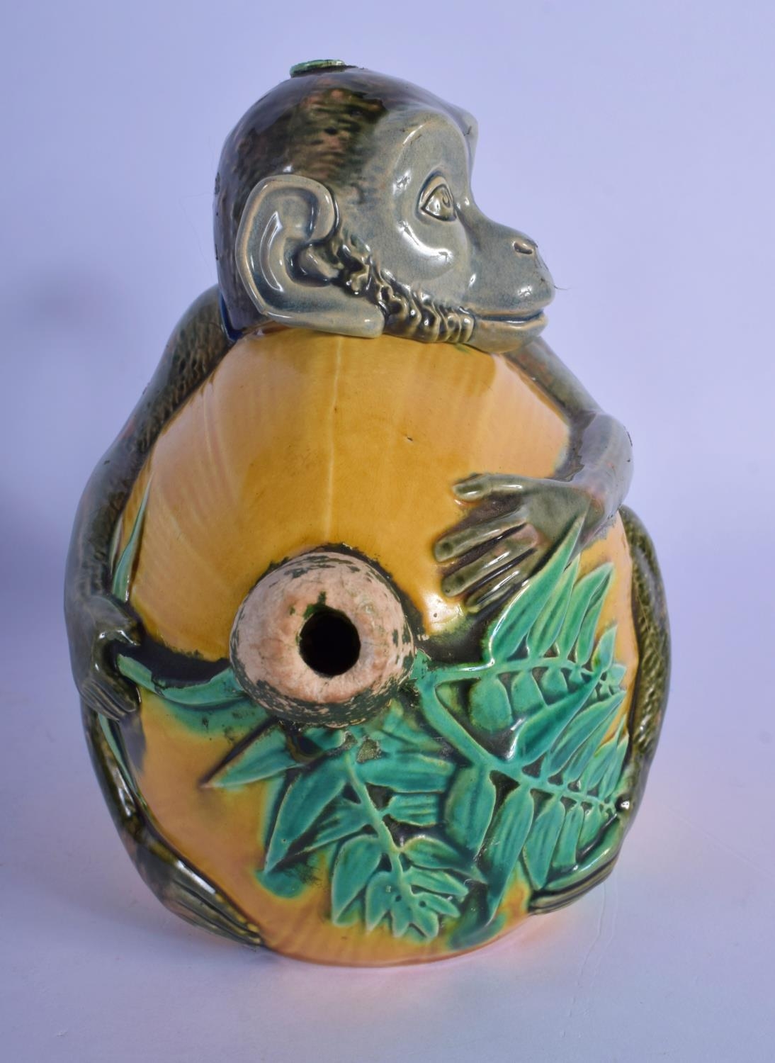 A RARE 19TH CENTURY MINTON MAJOLICA TEAPOT AND COVER in the form of a monkey. 21 cm x 17 cm.
