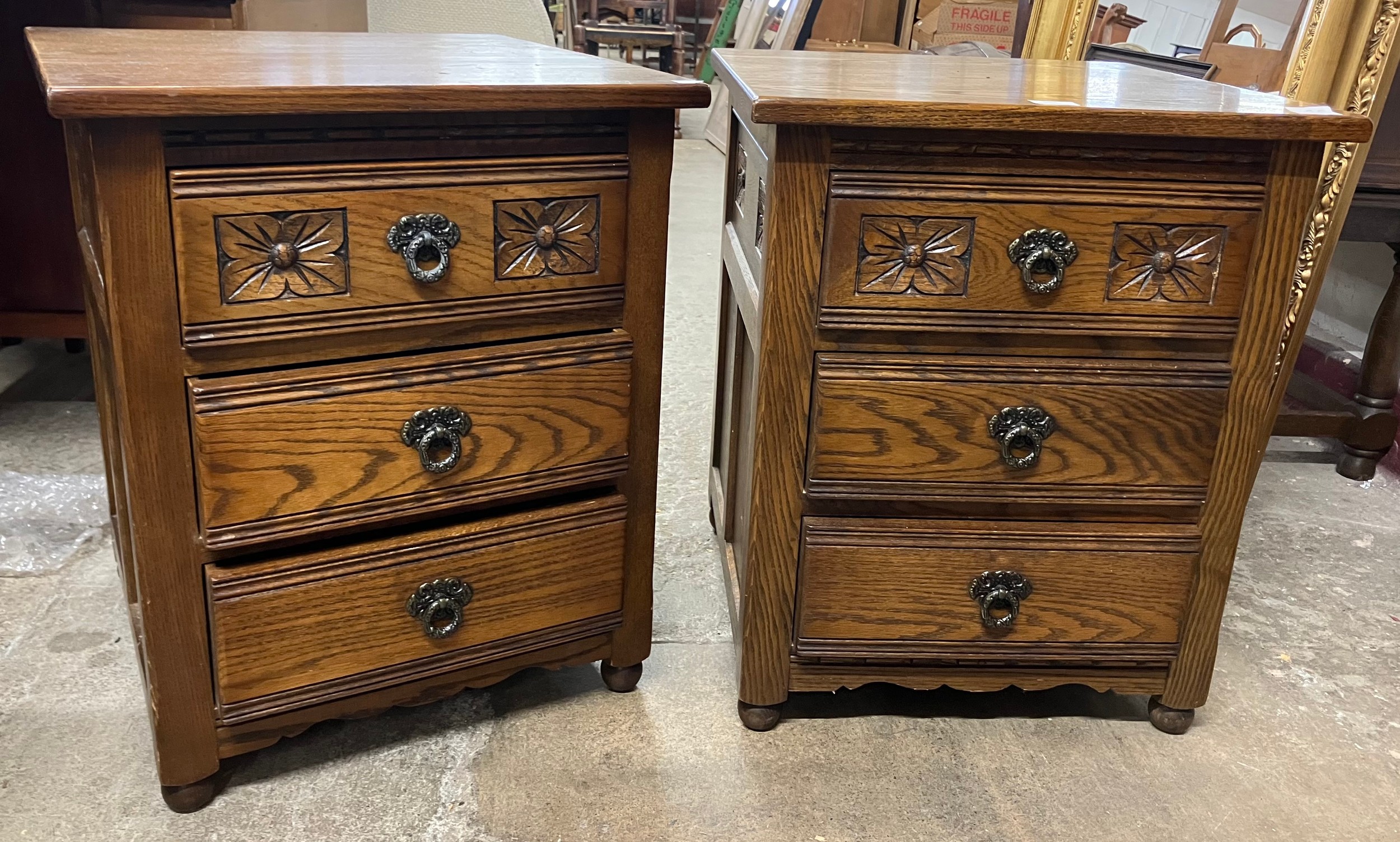 A pair of 17th Century style oak bedside chests