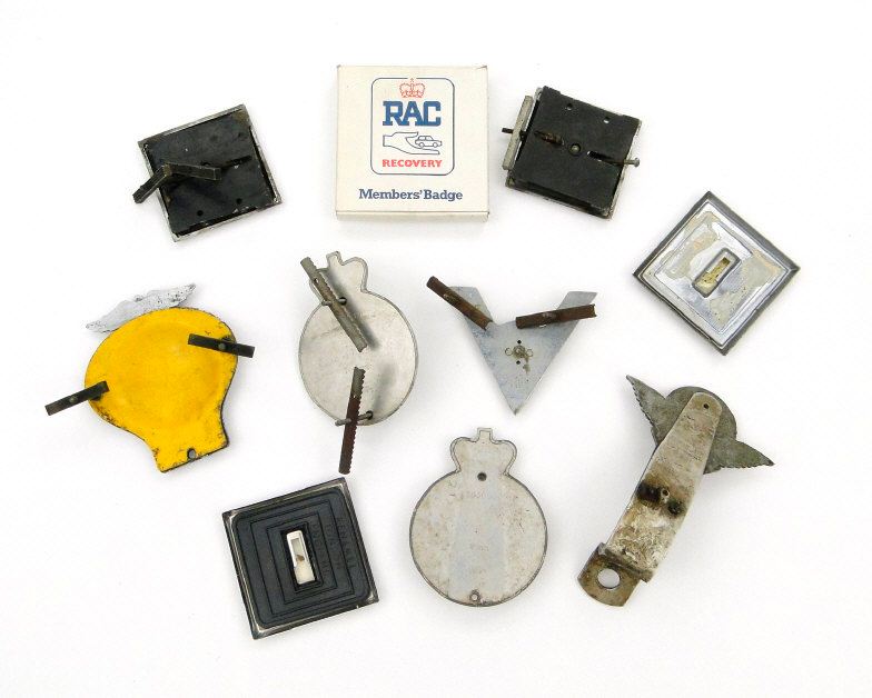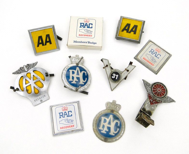 Collection of AA and RAC car radiator badge, an Ottervale M.C. badge, etc