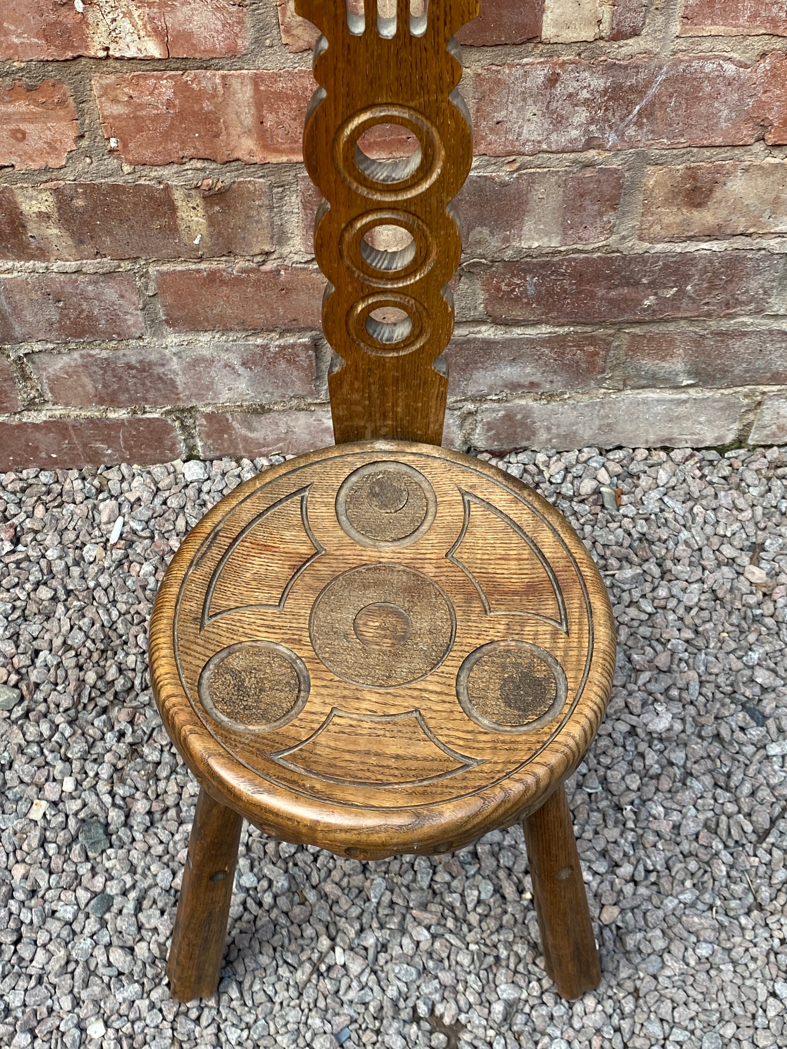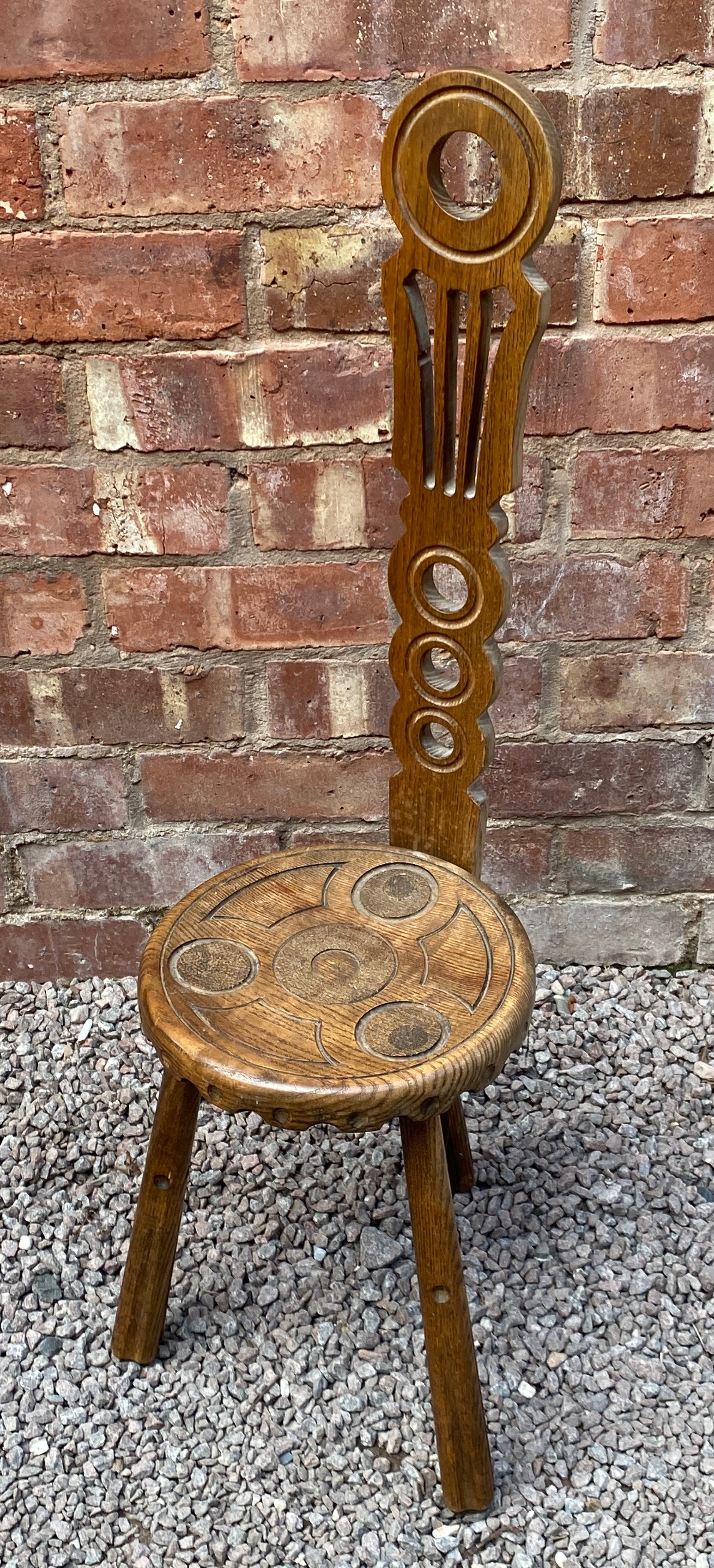 CARVED RUSTIC PINE PIERCED BACK SPINNING CHAIR