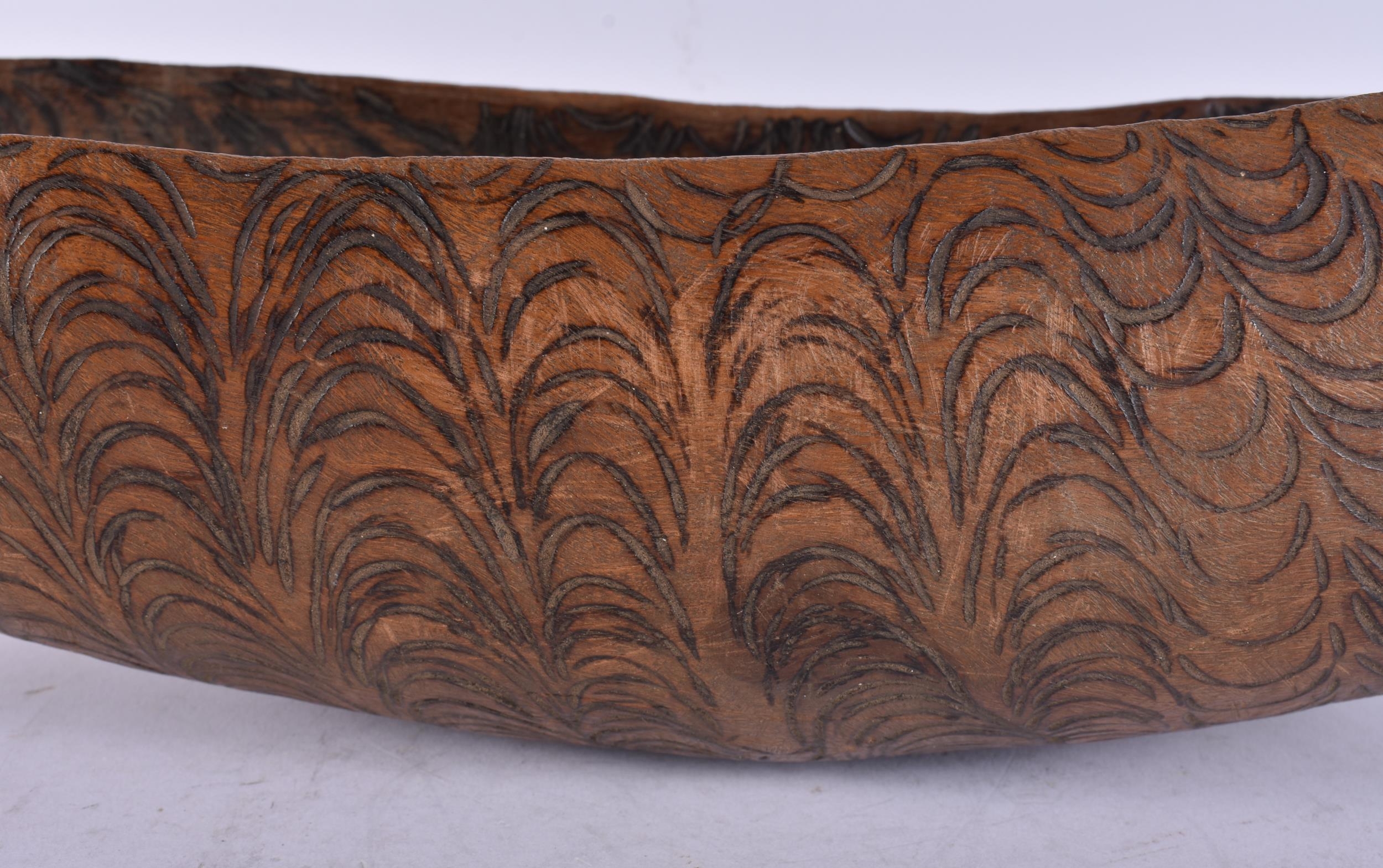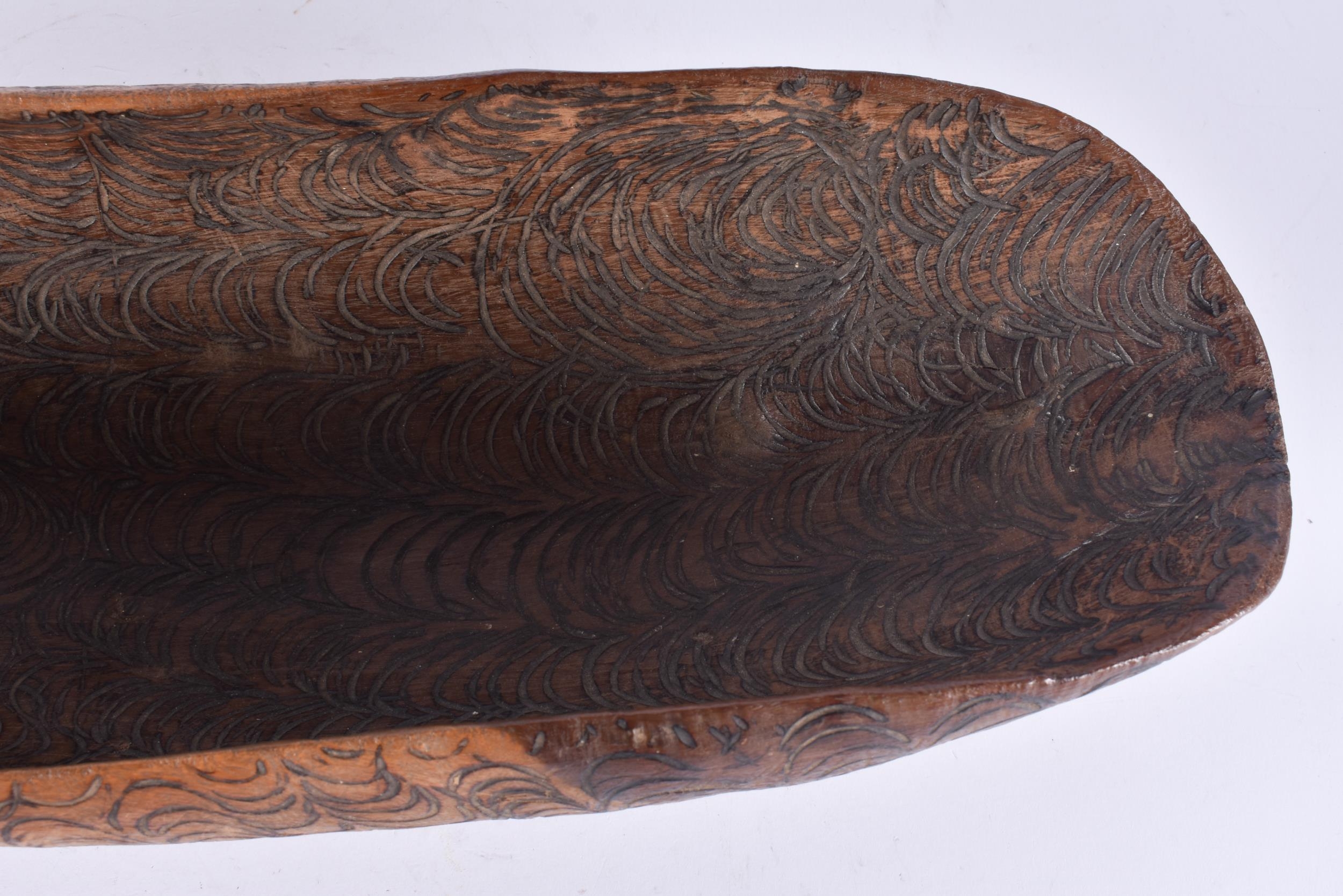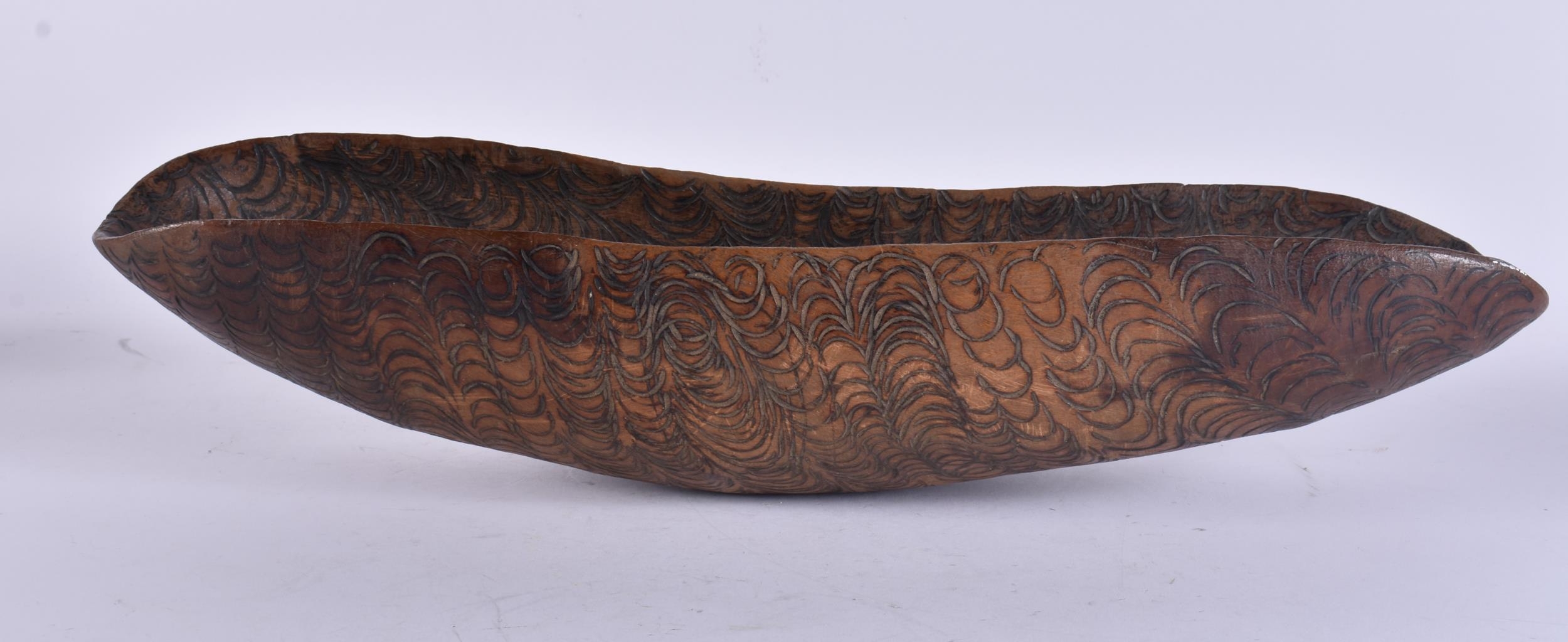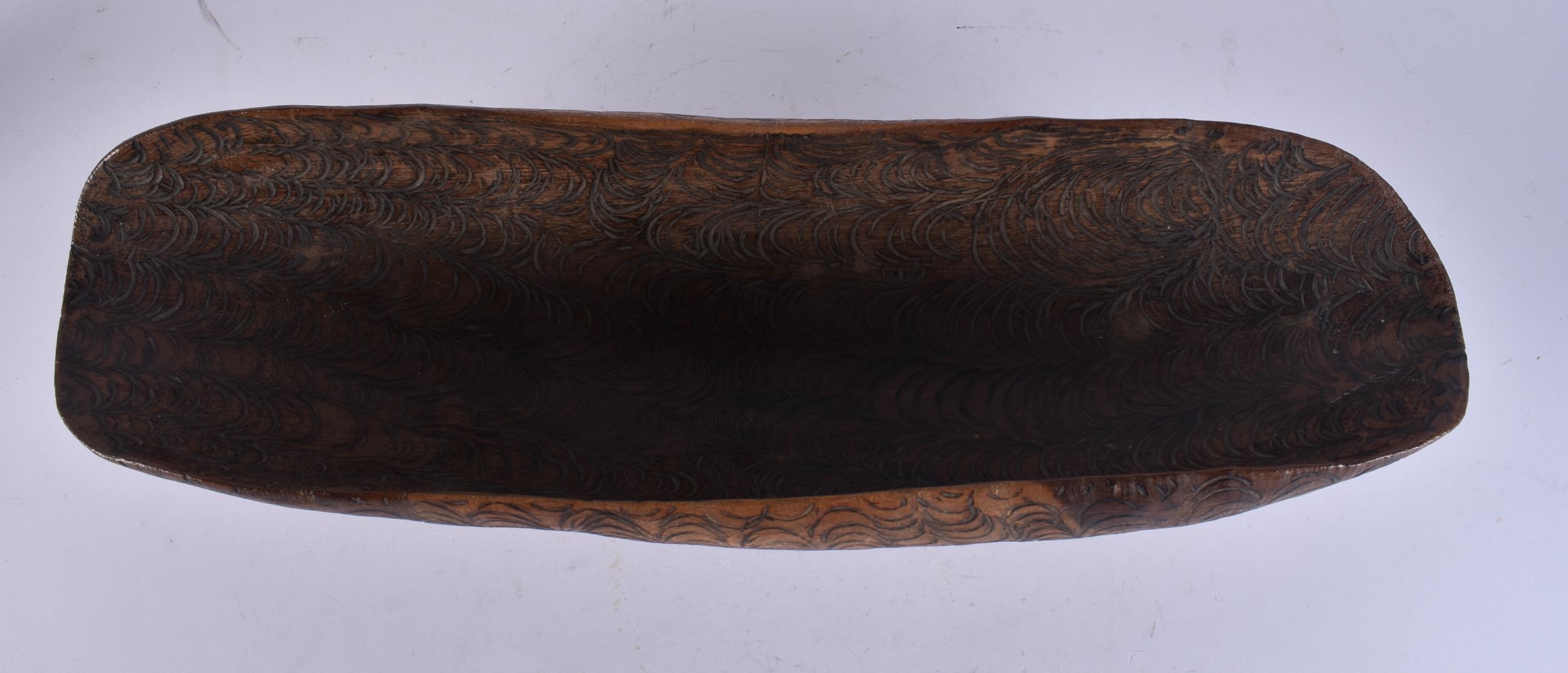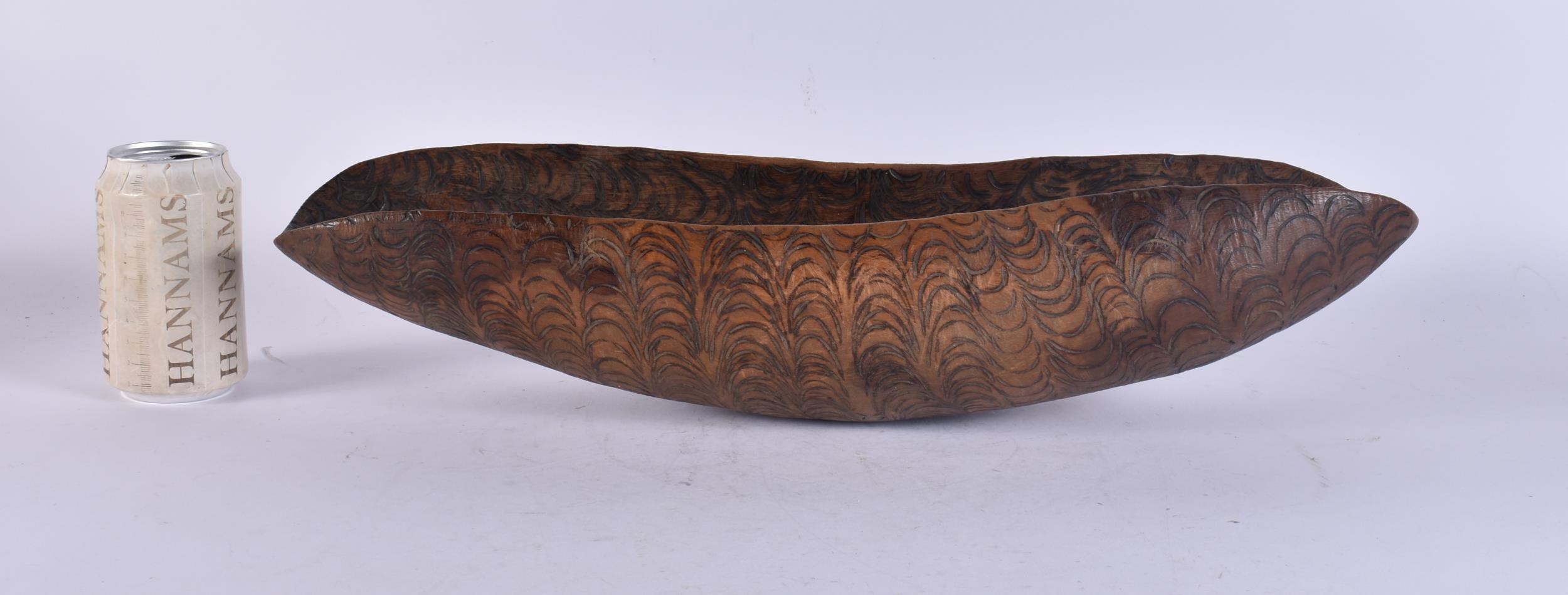 A FINE AND UNUSUAL AUSTRALIAN ABORIGINAL CHIP CARVED BOWL decorated all over with foliage. 52 cm x 14 cm.
