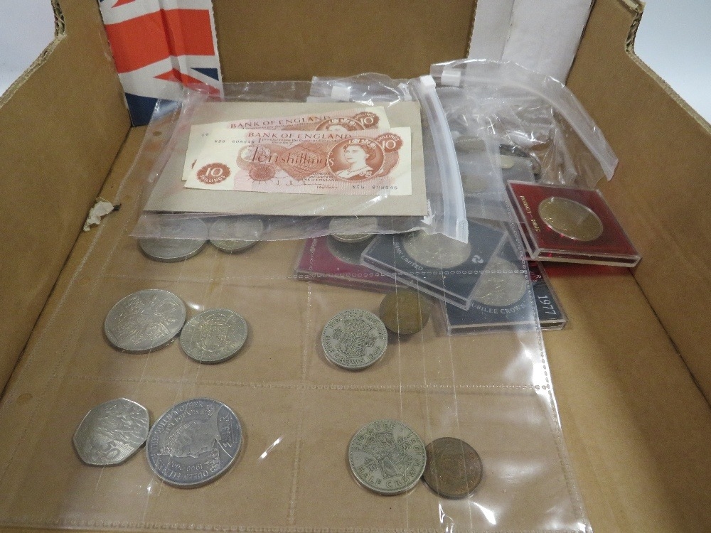A small quantity of coins and notes to include 10 shilling notes