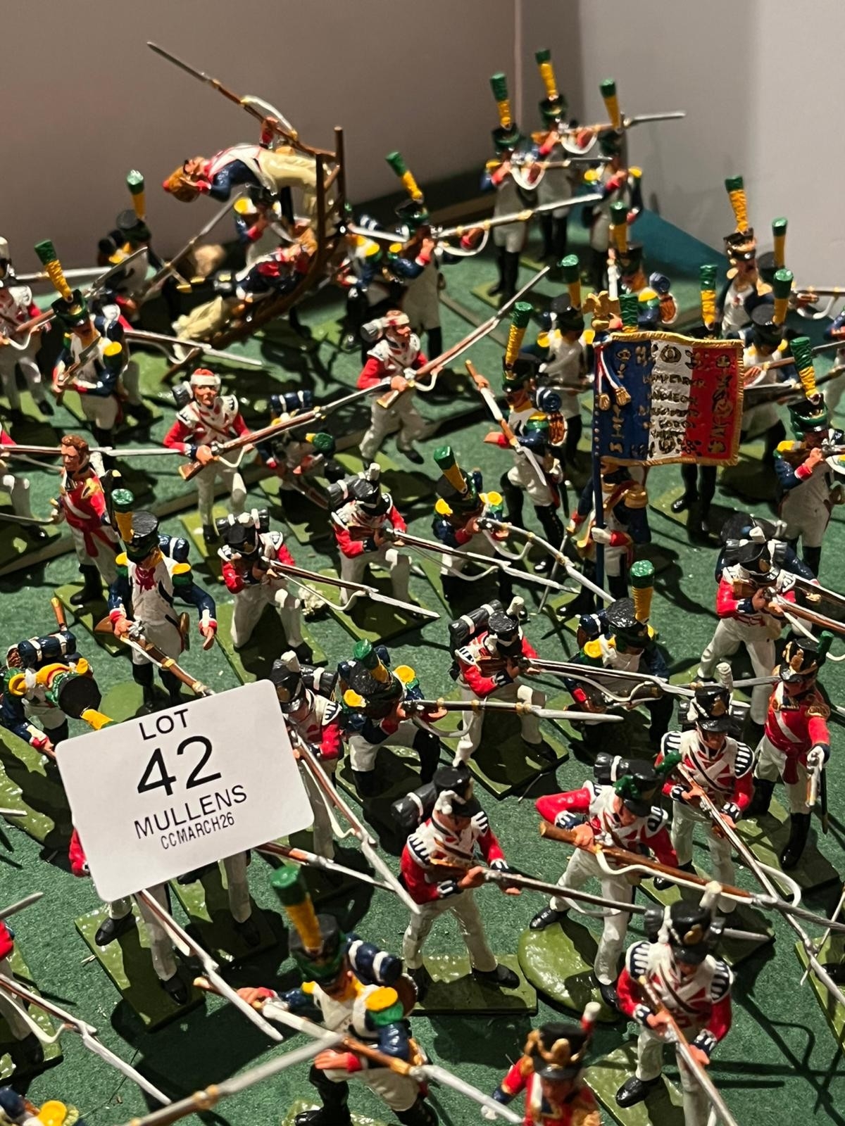 + Calendar 2026-04-17 12:00:00 2026-04-27 18:00:00 Europe/London The Collector's Cabinet Timed Online Auction Mullens Laurel Park April Collector’s Cabinet Auction showcases a variety of accessible collectibles for all budgets. The catalogue features a wonderful single owner collection of model soldiers and militaria with a strong focus on the Napoleonic wars, with some high quality, hand painted figures from niche and specialist makers from across Europe, and further afield, such as Niena in St Petersburg. The sale spans Edged weapons, through Dinky toys to some interesting and rare modern music and entertainment lots. Irish coinage along with gold and silver bullion complement a collection of Irish and international silver with some stand out pieces, including a three handled, silver banded and lined loving cup bearing the Fitzgerald family crest, part of the contents of Turlough Park House in County Mayo, some of which are included in this sale. *Please Note: toy lots may have wear, paint chips or some damage unless stated otherwise.  Unfortunately, it may not be possible to provide condition reports for lots with an estimate below €100. Lots 1-50 and Lots 66-148 will be sold as per photographs and unfortunately cannot be viewed in person, due to logistical purposes are boxed and ready for collection Mullen's Auctioneers
