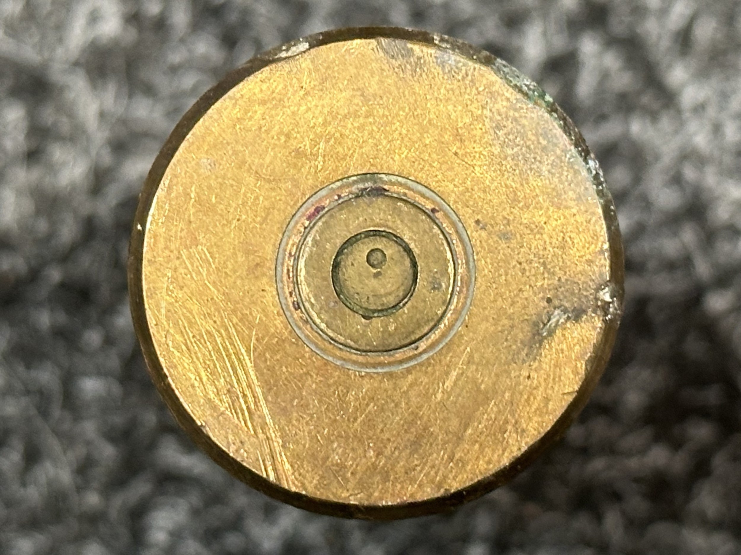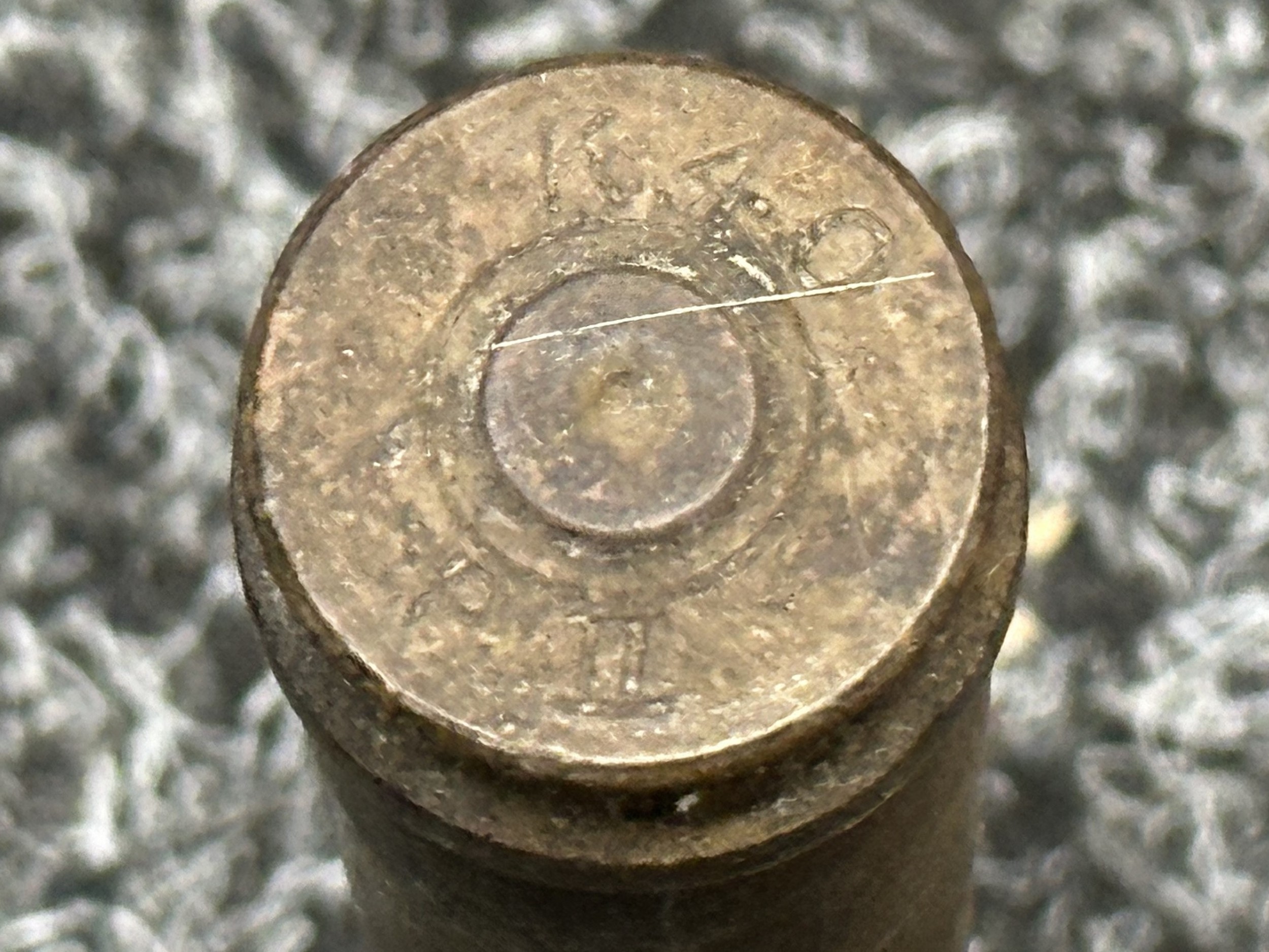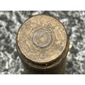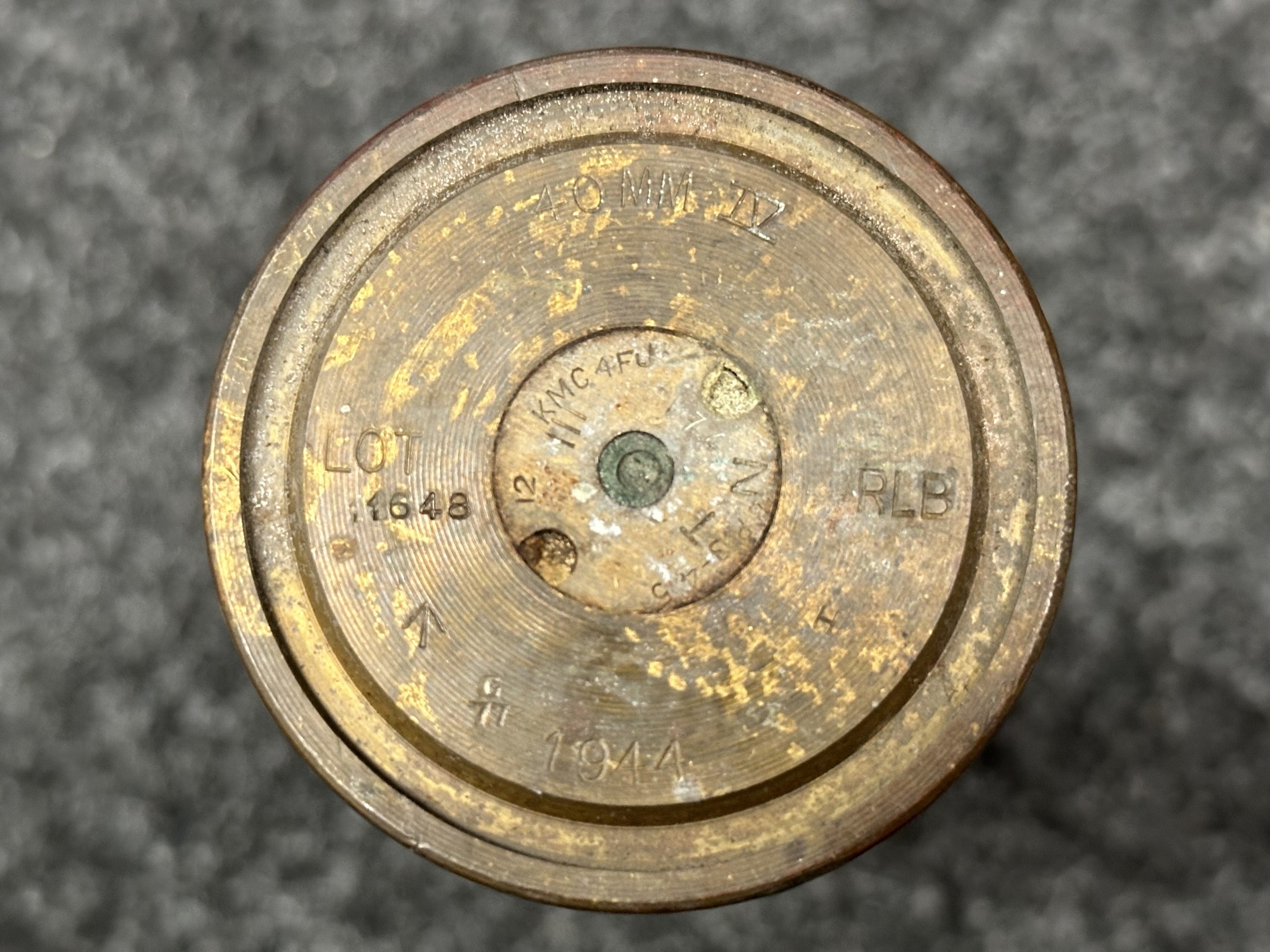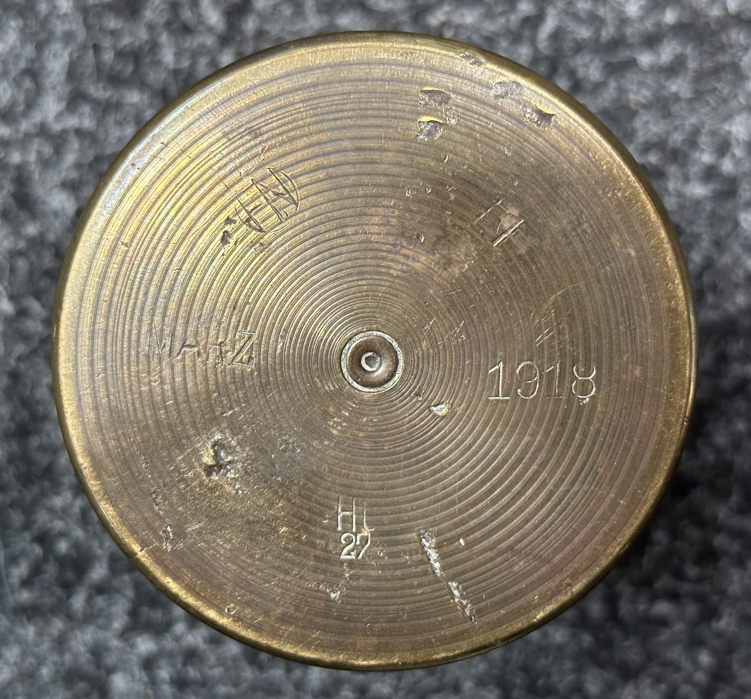 WW1 British Trench Art bowl made from a British 4.5 inch shell case dated 1917 on French Lebel cartridge case feet: Vase made from a 1918 dated shell case inscribed "Le Cateau": three WW2 shell cases. (6)