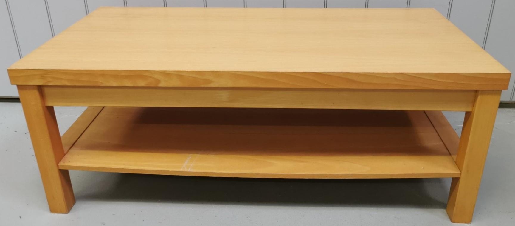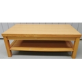 A contemporary, beech veneered coffee table with single underside shelf. Dimensions(cm) H45, W120, D60.