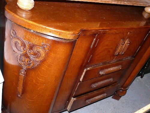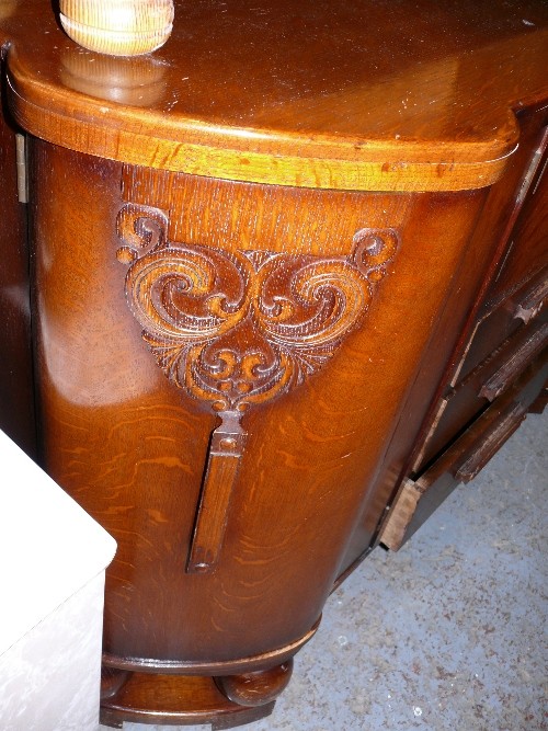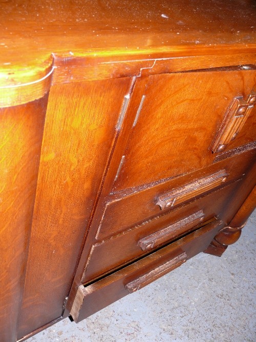 A LARGE WOODEN SIDEBOARD.