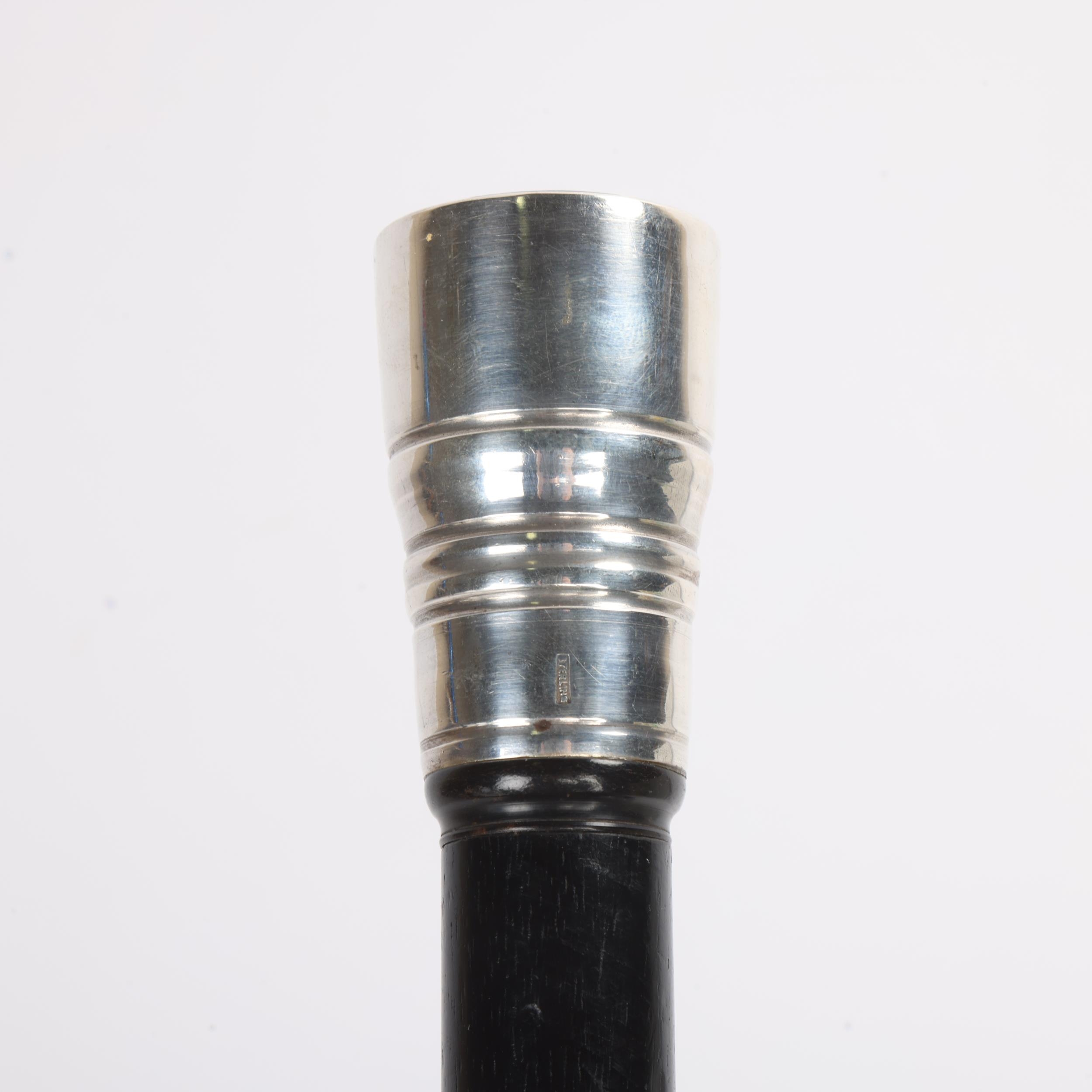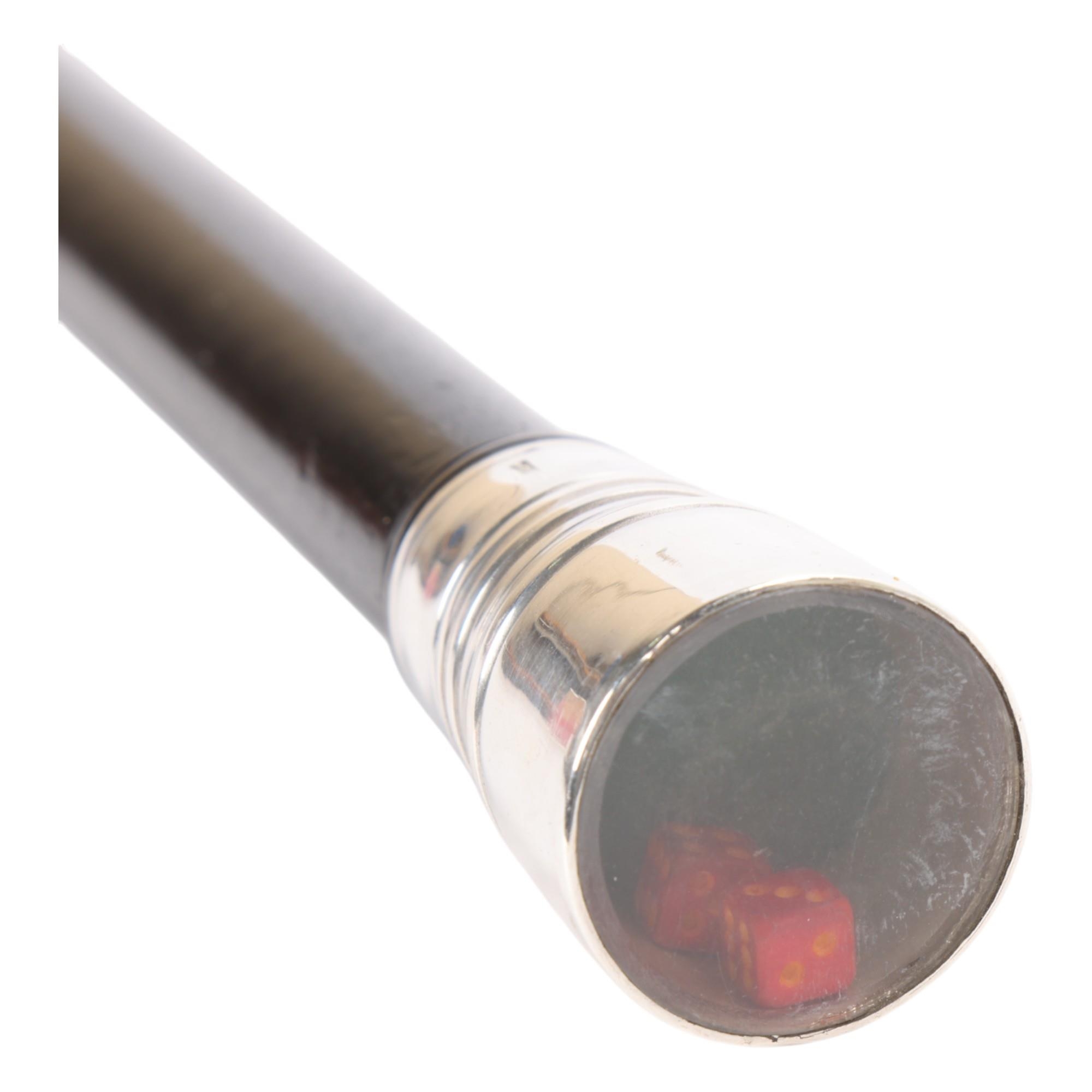 A novelty gambling walking cane, turned silver handle stamped STERLING with a pair of red dice within, ebonised hardwood shaft, American circa 1920s, length 94cm