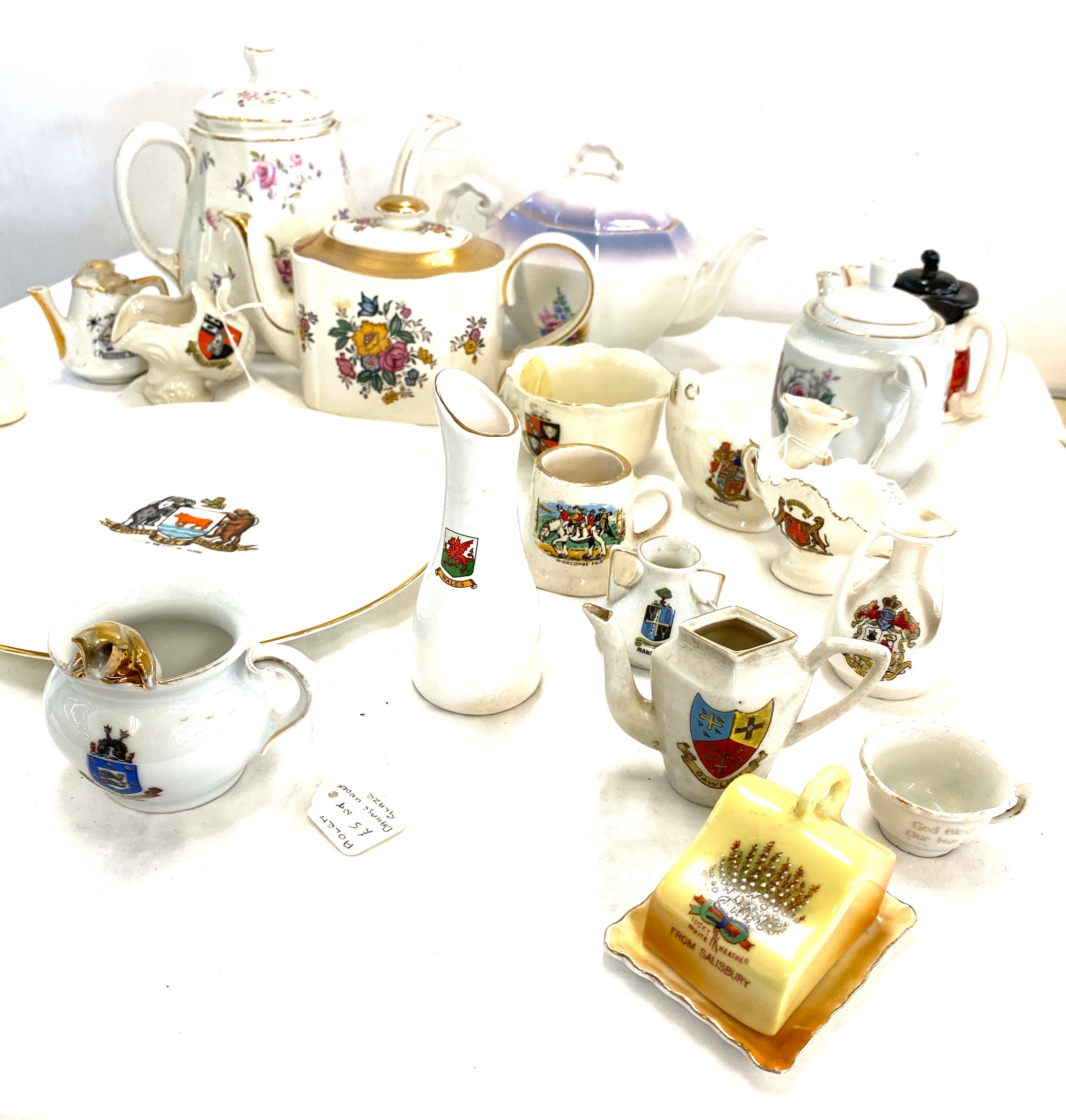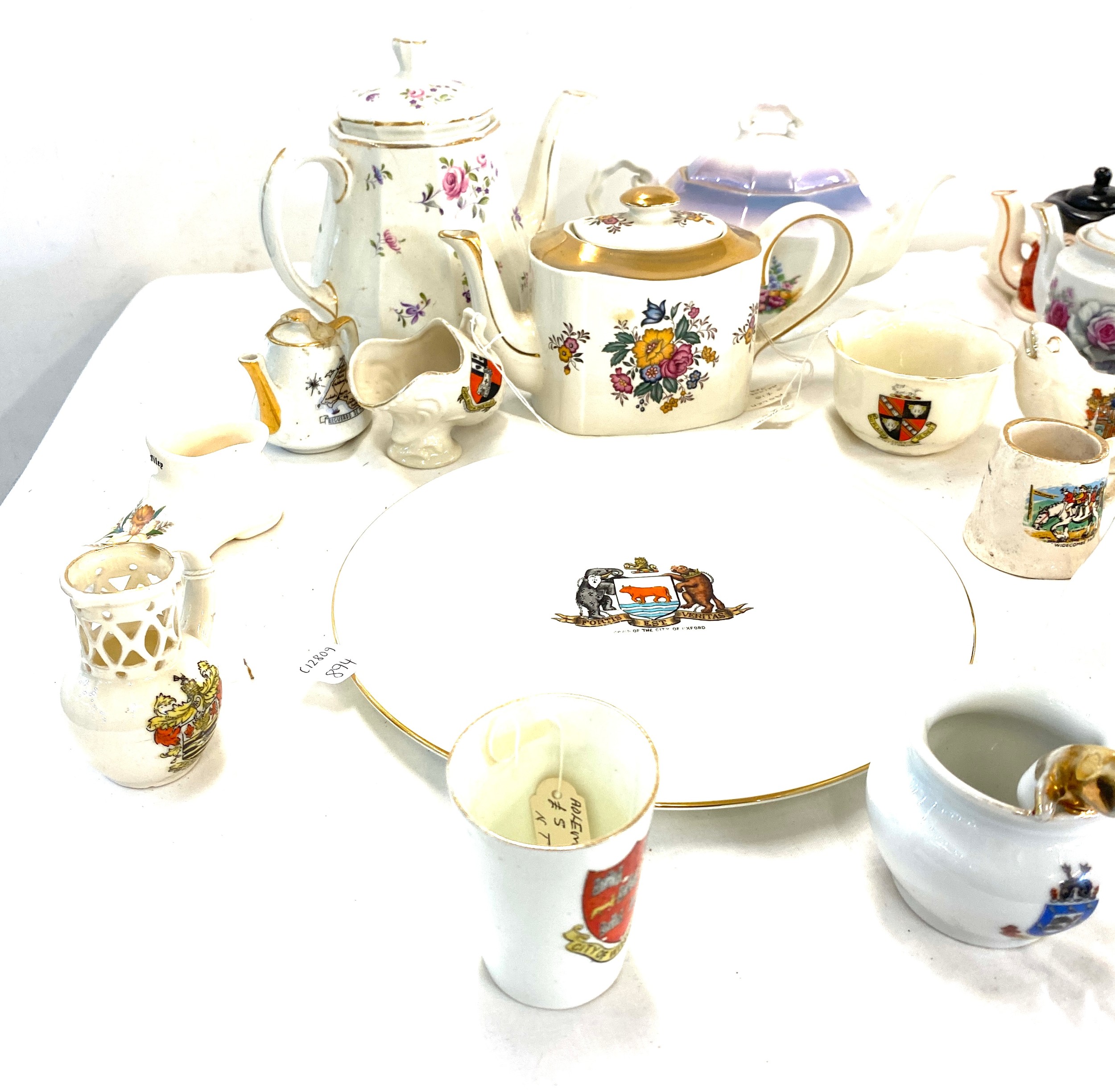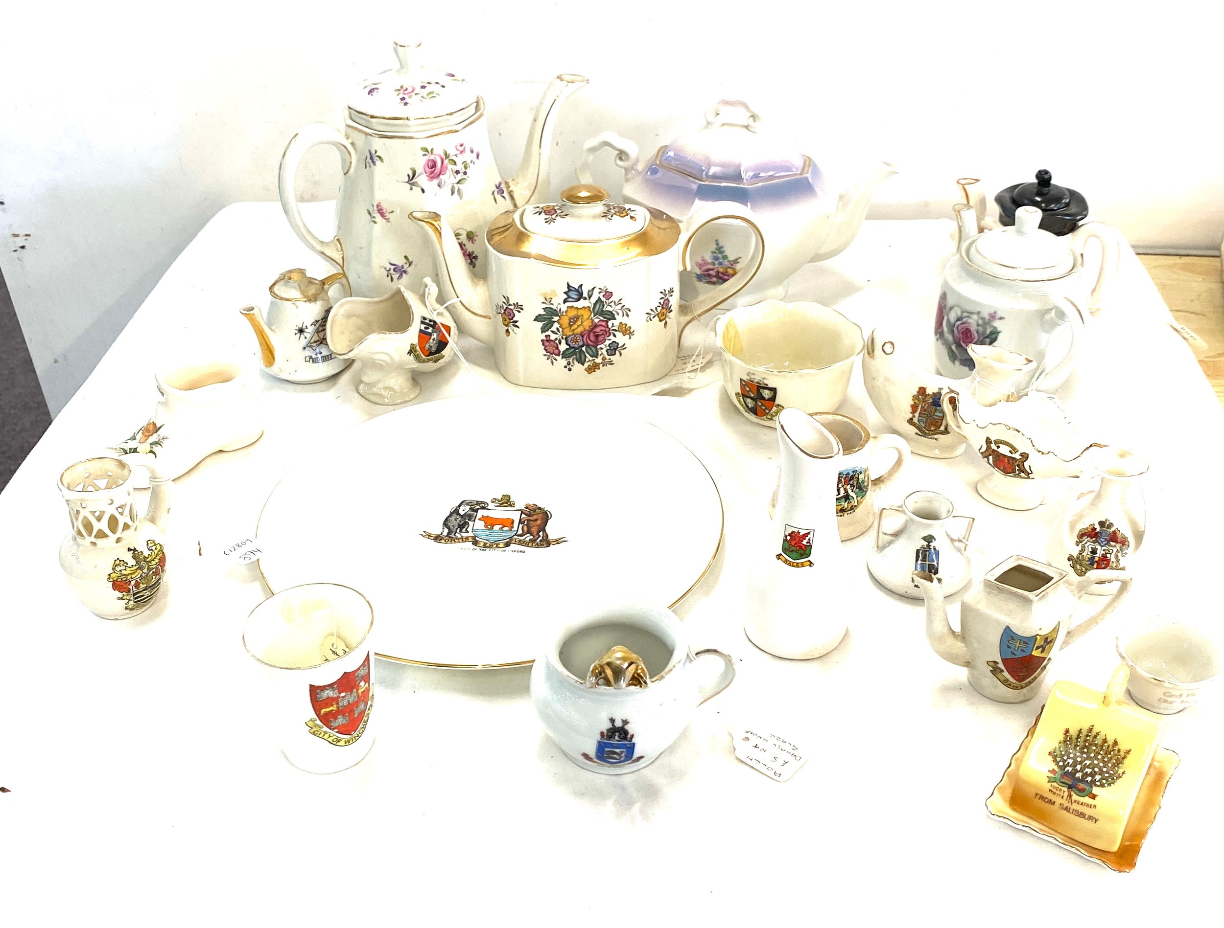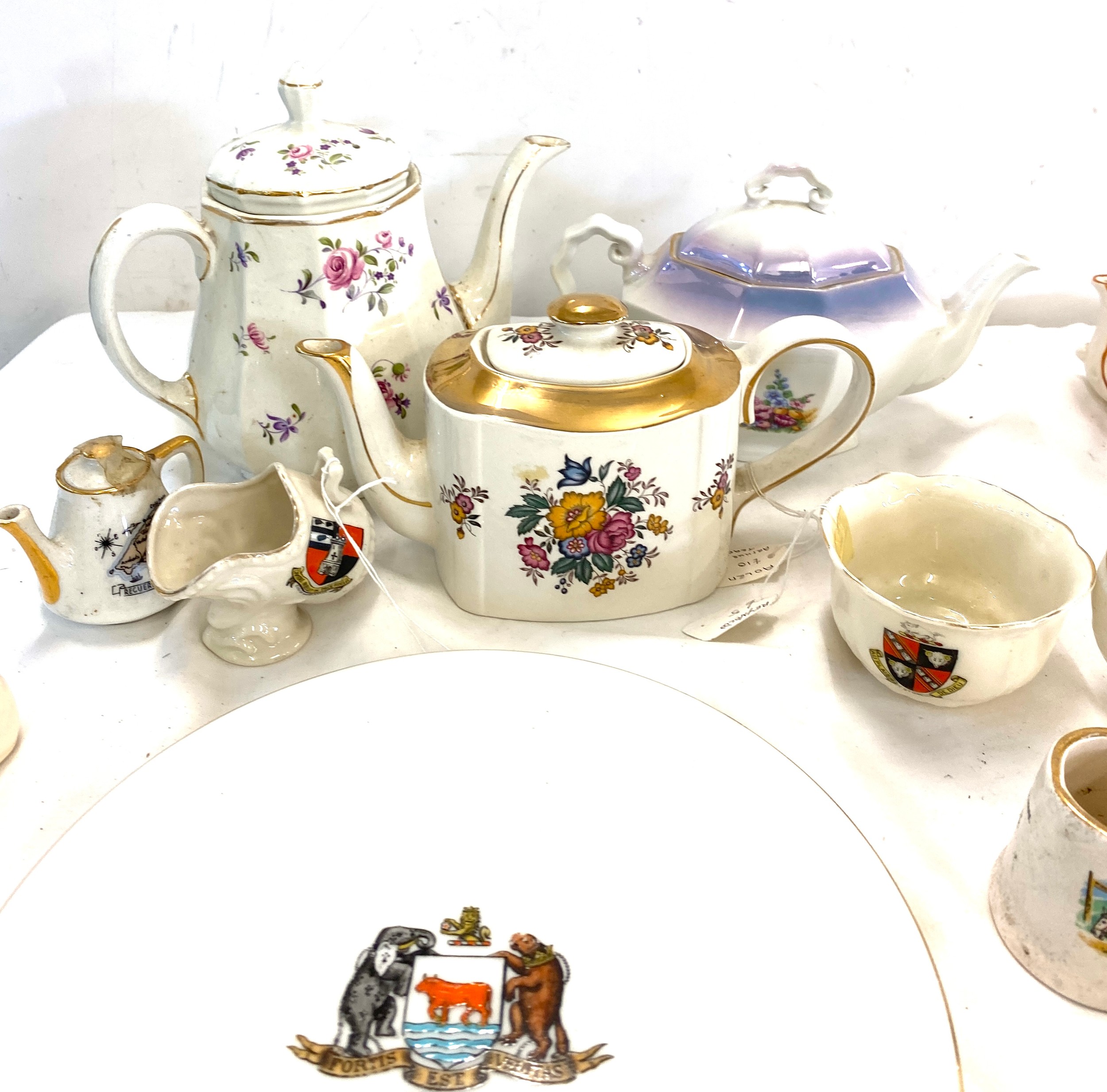 Selection of Goss crested ware and other pottery pottery to include Wedgwood teapot, Arthur Woods teapot etc