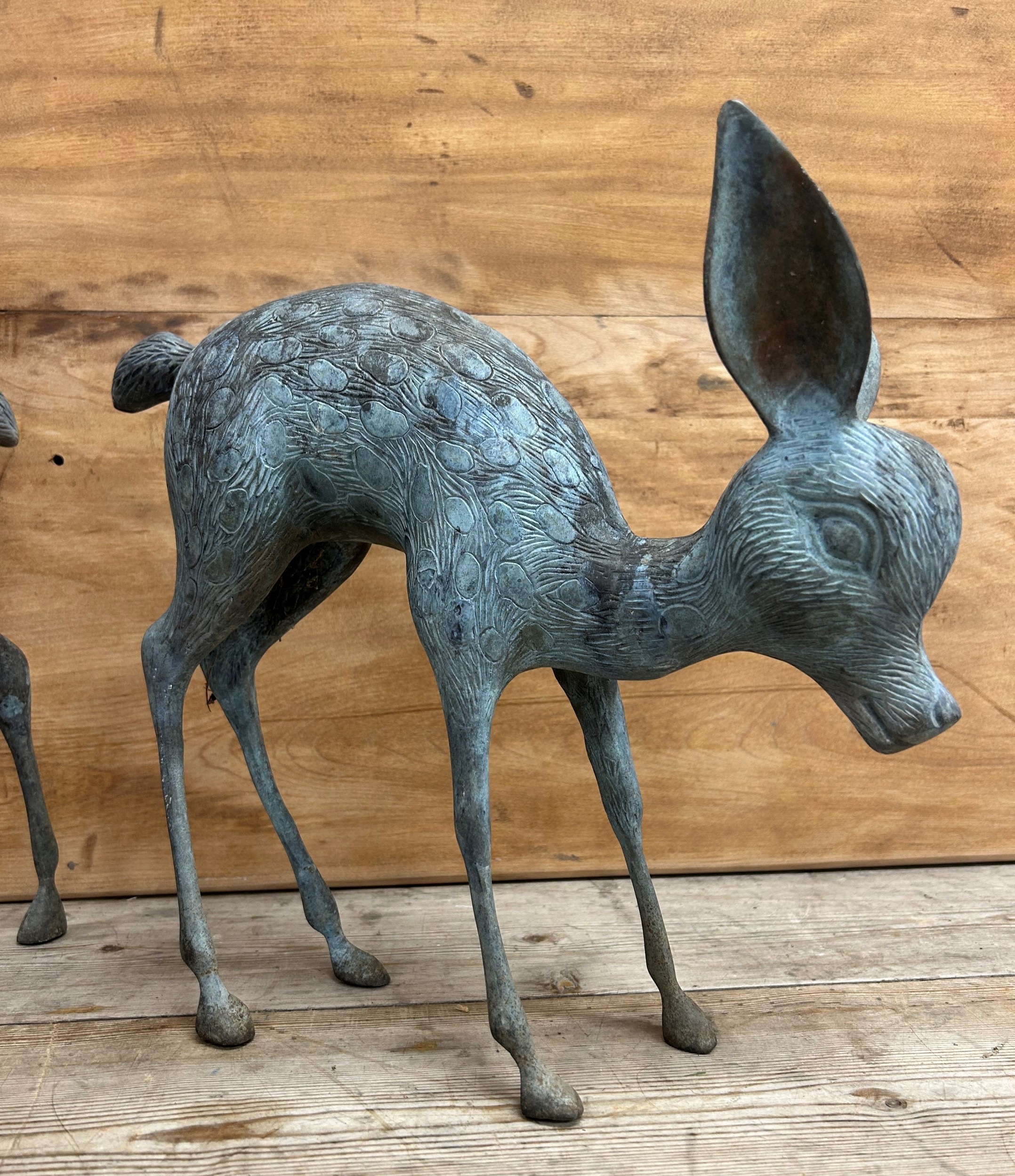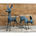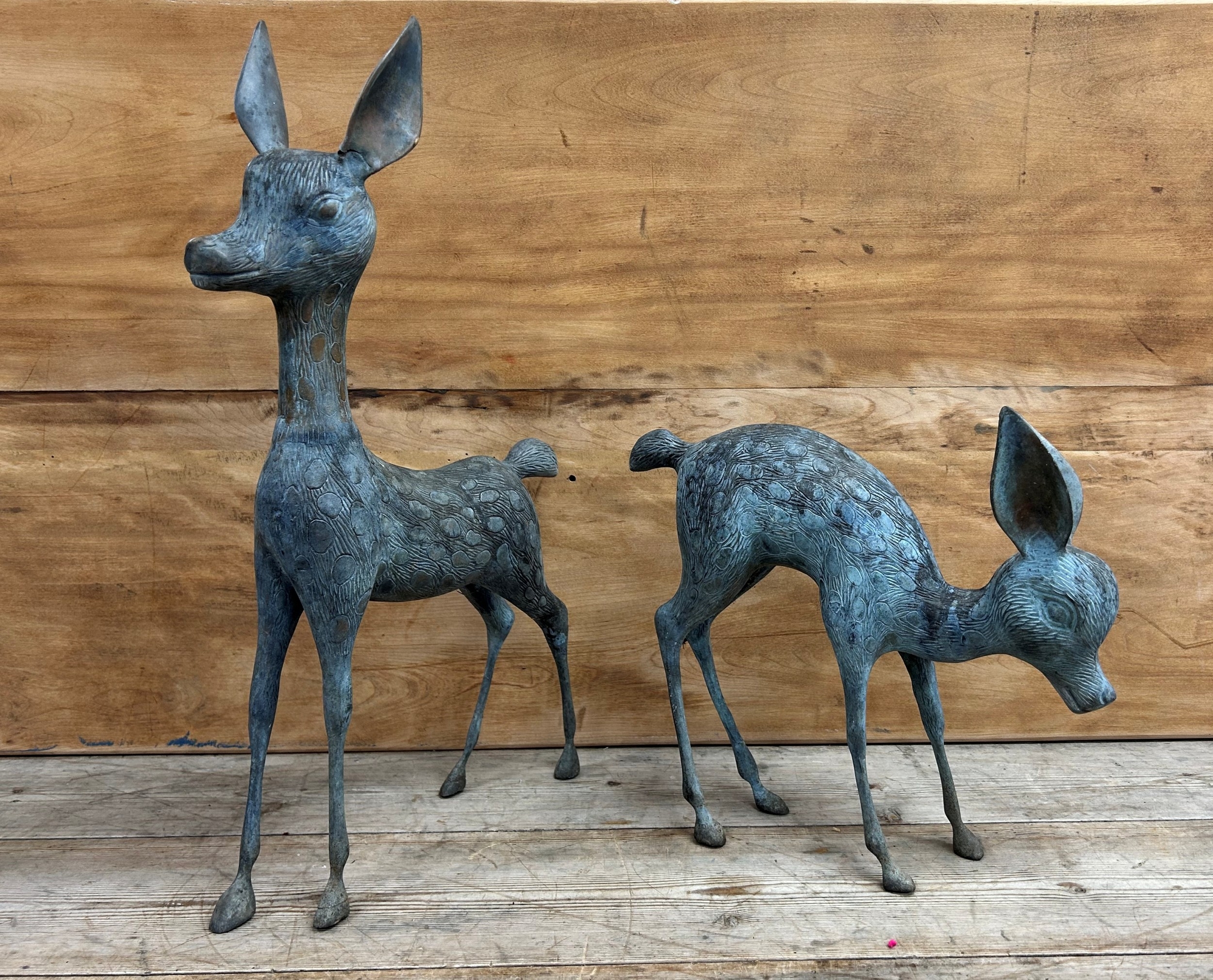 Two cast bronze garden ornament sculptures of deer, largest H 55cm