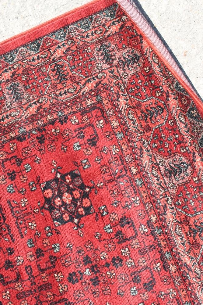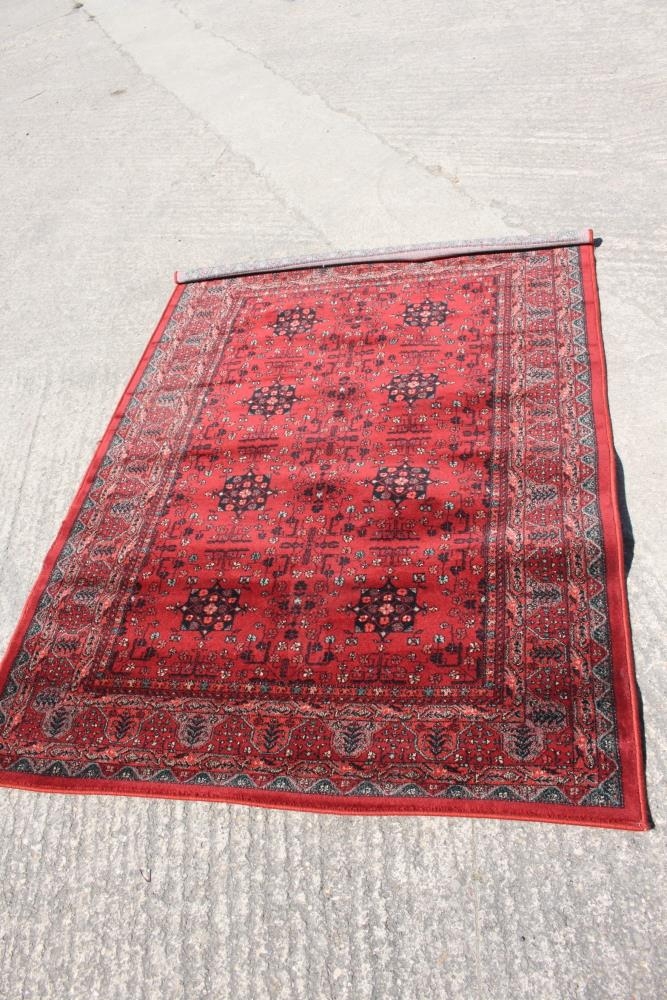 A Royal Kashqai Afghan style pile rug with eight central elephant guls and multi-borders on a terracotta ground, 66" x 47" approx
