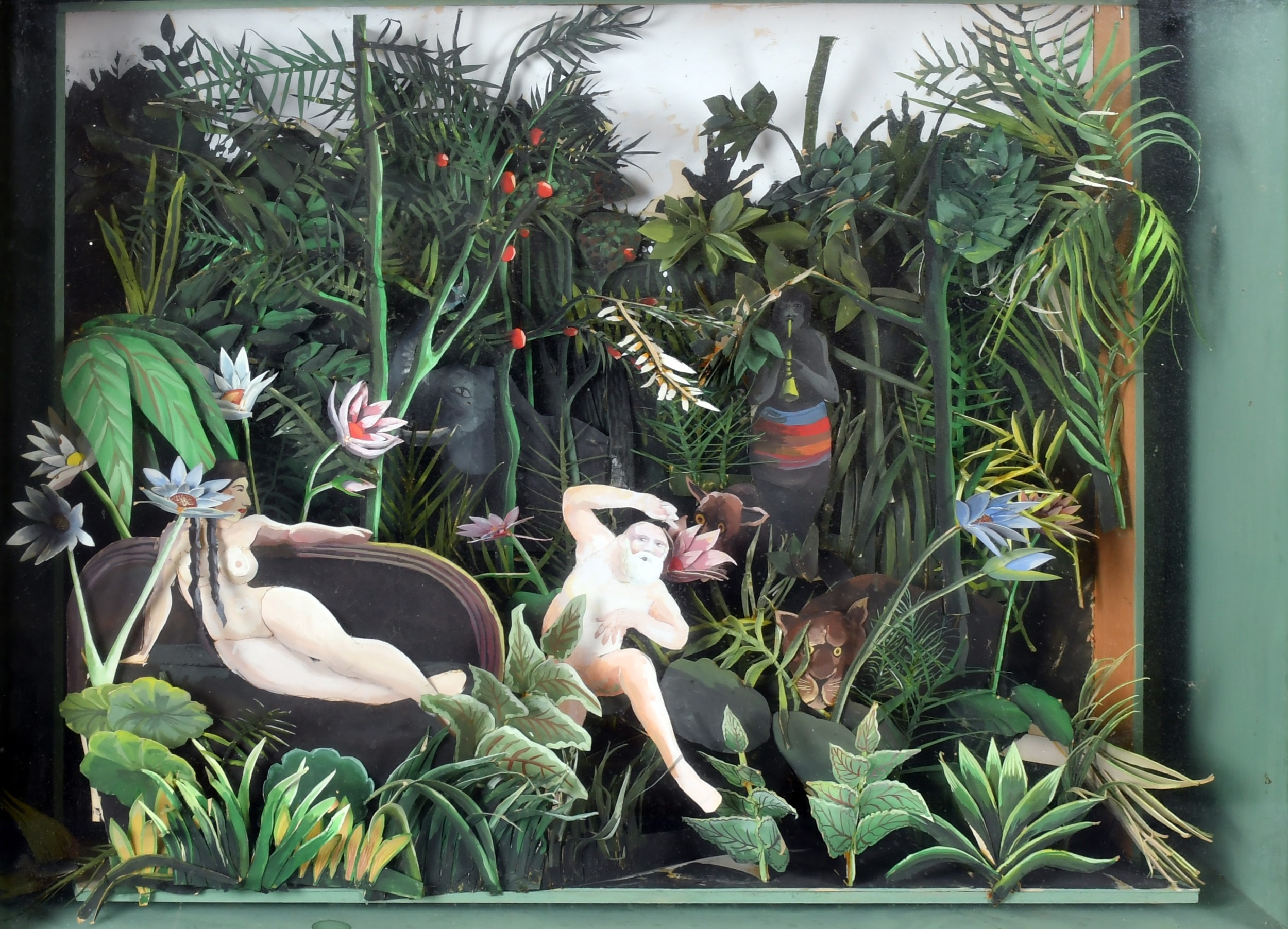 Paul Wright (20th-21st Century) British. "Monet Dancing before the Jungle Queen", Boxed collage, Inscribed on a label verso, 18.5" x 25.5" x 7.75" (47 x 64.8 x 19.7cm). Provenance: Air Gallery, 1977