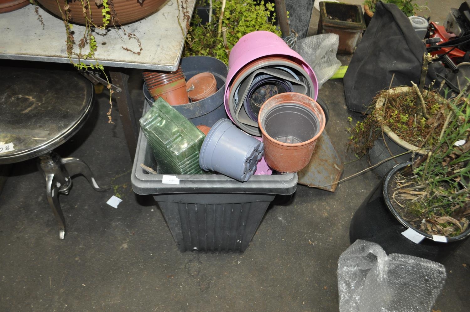 LARGE GARDEN POT AND QTY OF MISC SMALLER PLANT POTS