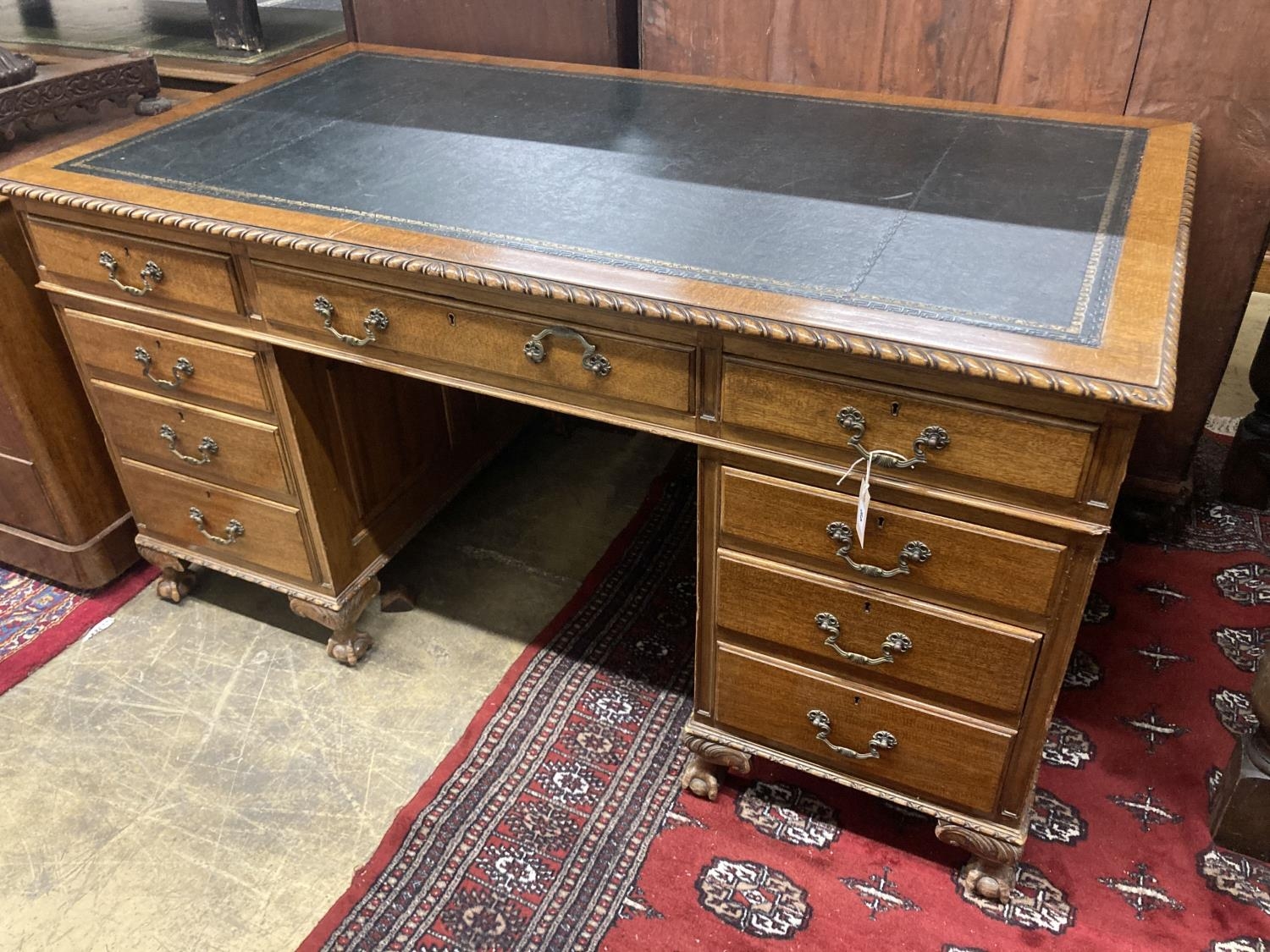 An early 20th century mahogany pedestal desk, length 152cm, depth 84cm, height 78cm