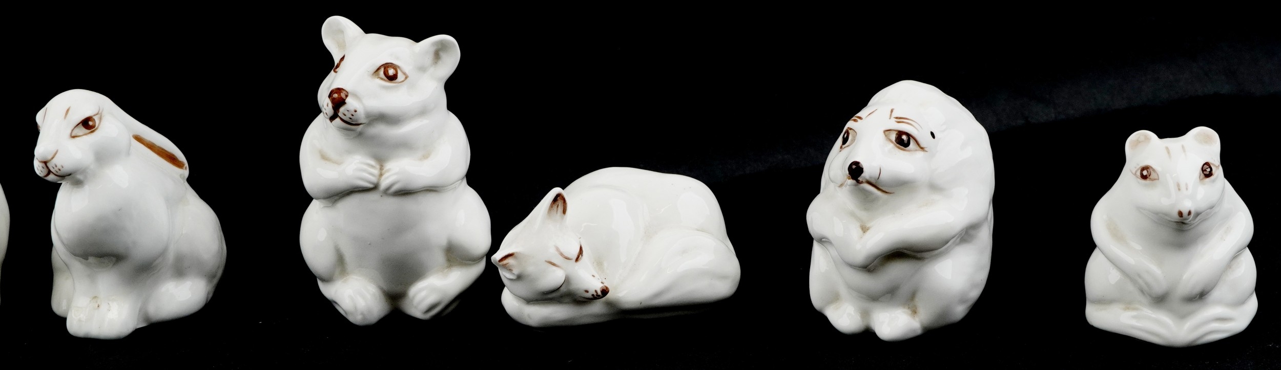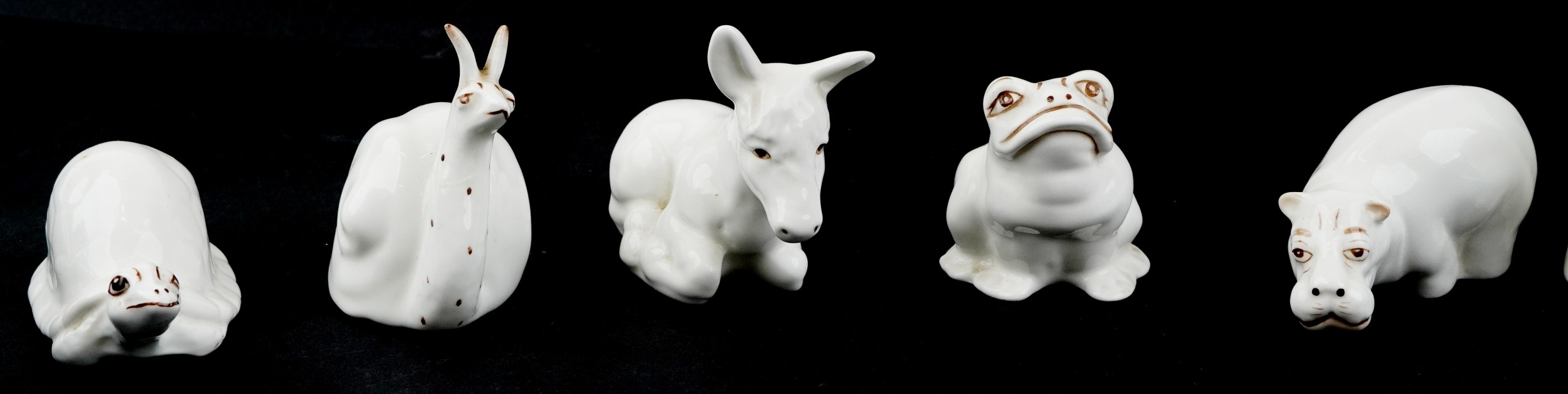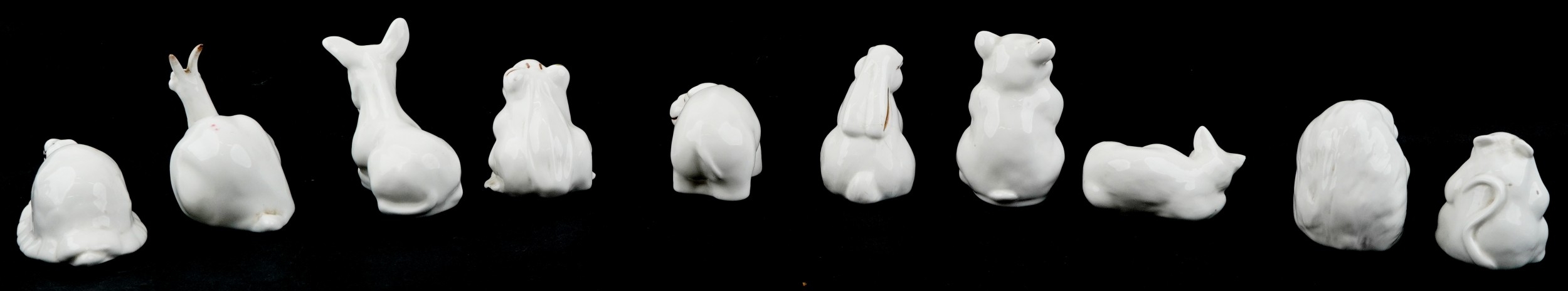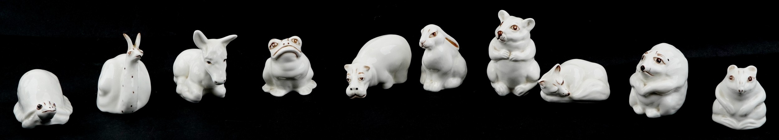 A group of ten Coalport fine bone china figures of animals including tortoise, snail, frog and hedgehog, the largest 10cm