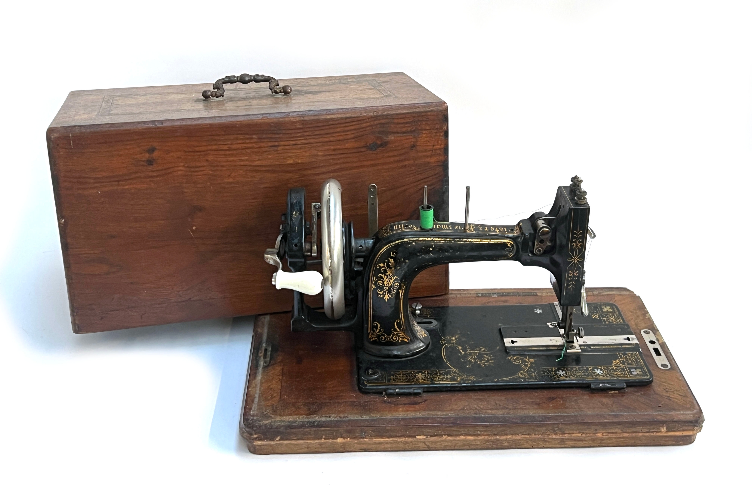 A Frister & Rossman sewing machine no. 8218, boxed with key