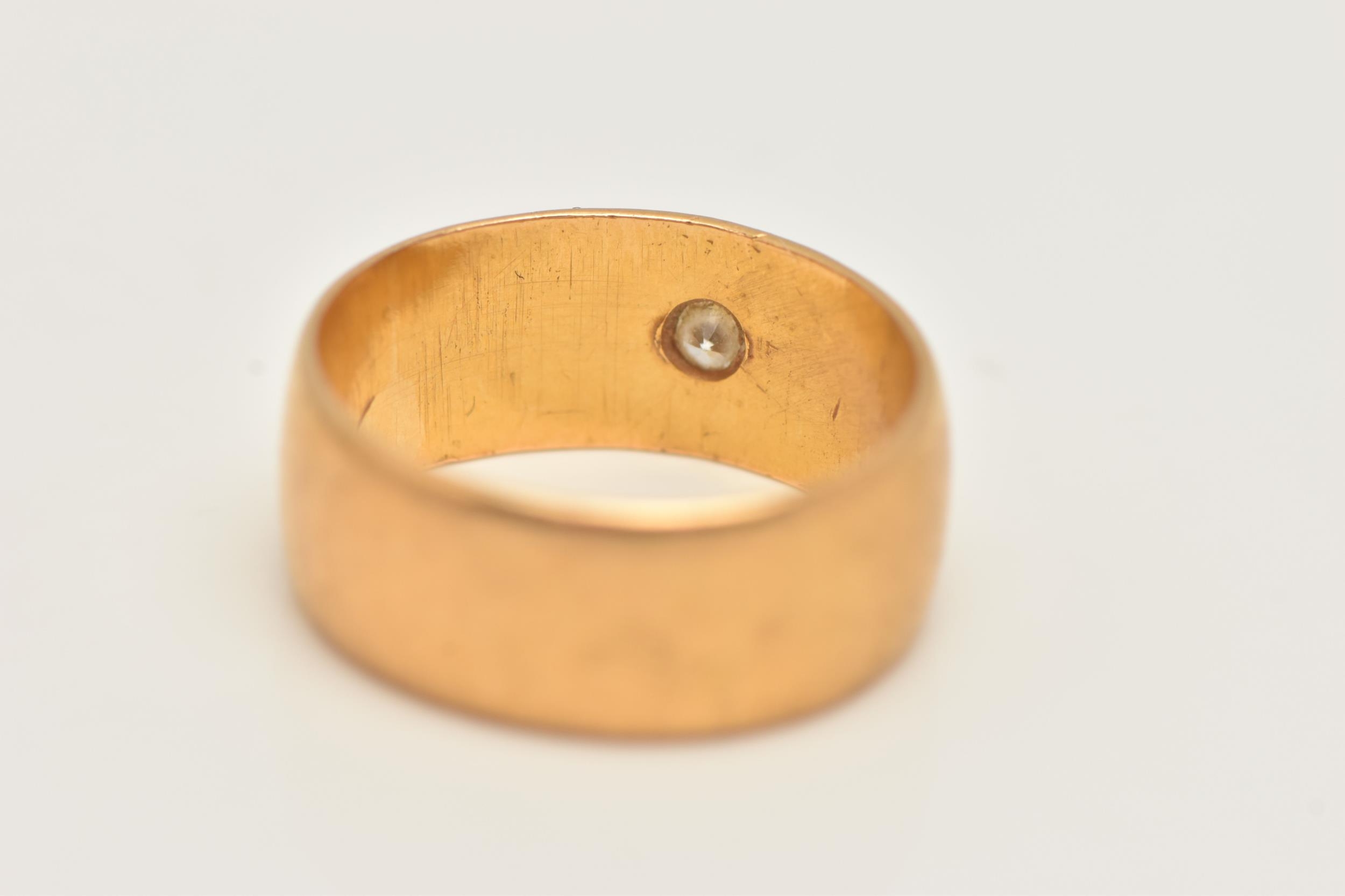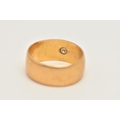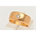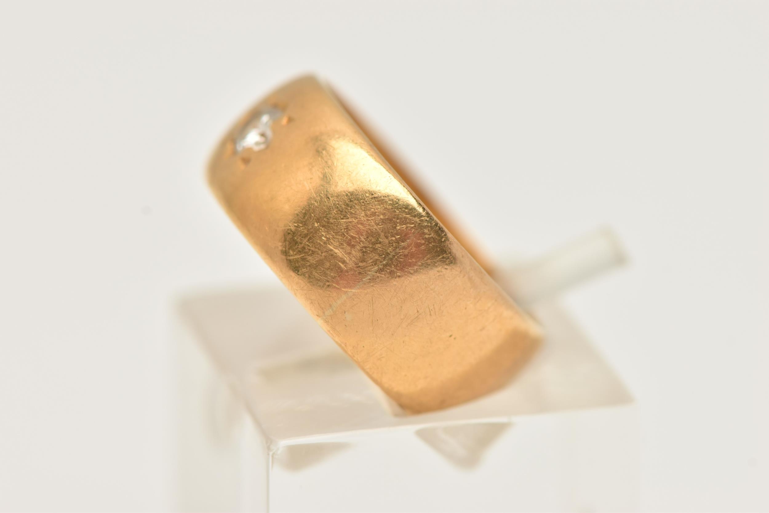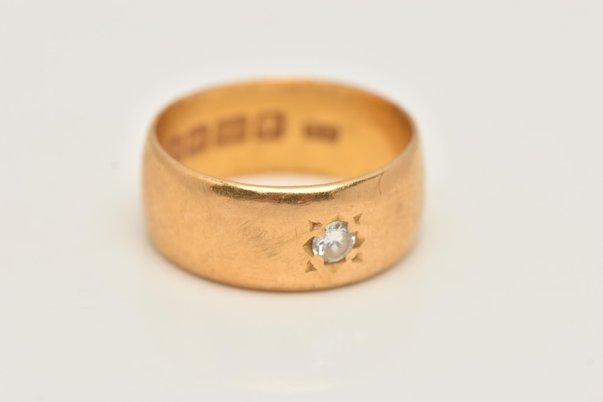 A 22CT GOLD DIAMOND SET WIDE BAND RING, star set with a round brilliant cut diamond, estimated diamond weight 0.10ct, approximate band width 7.1mm, hallmarked 22ct Birmingham, ring size H centre, approximate gross weight 5.6 grams (condition report: general light wear)