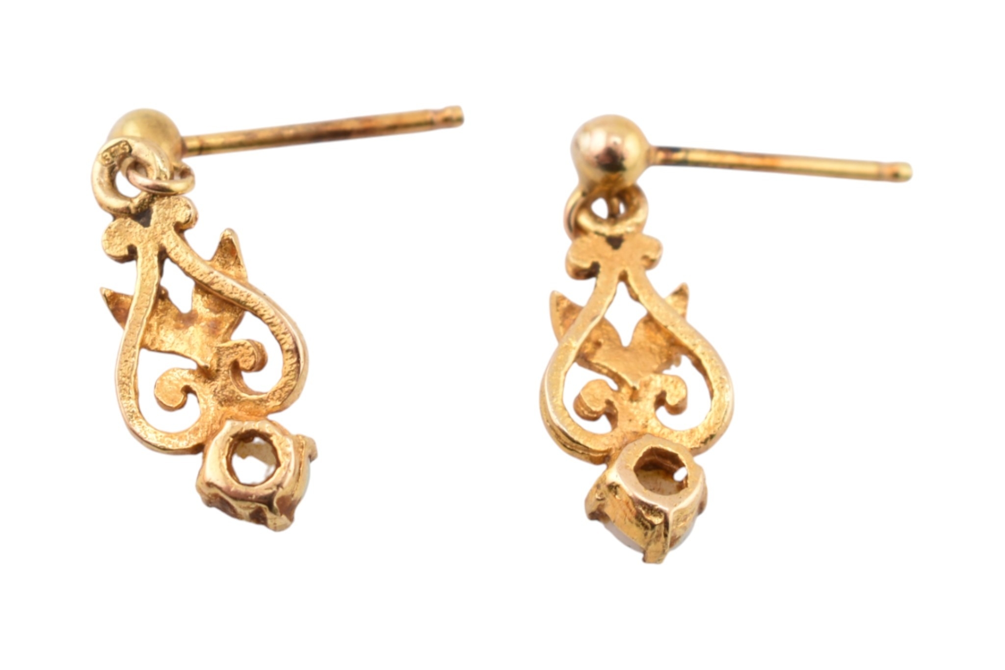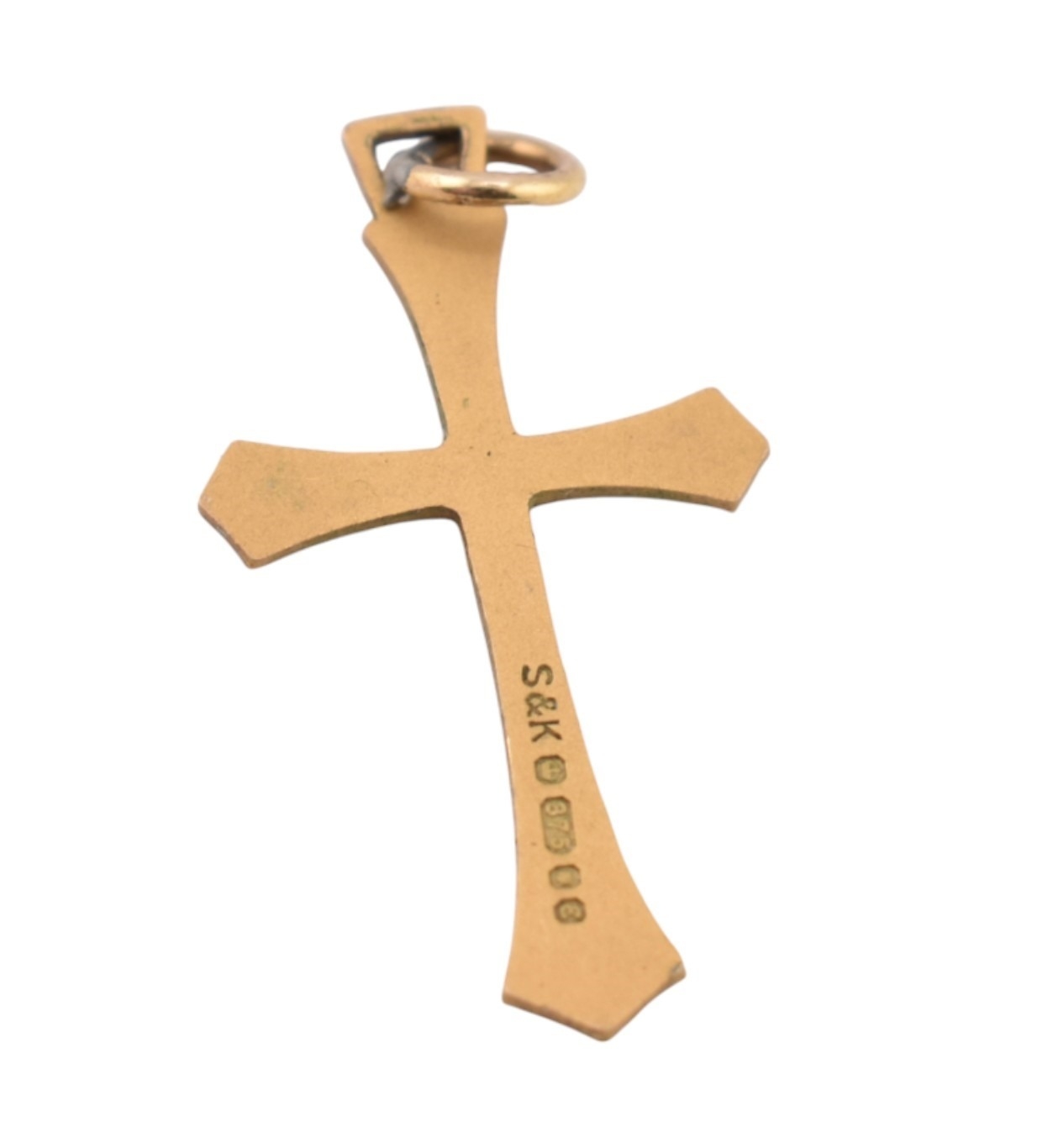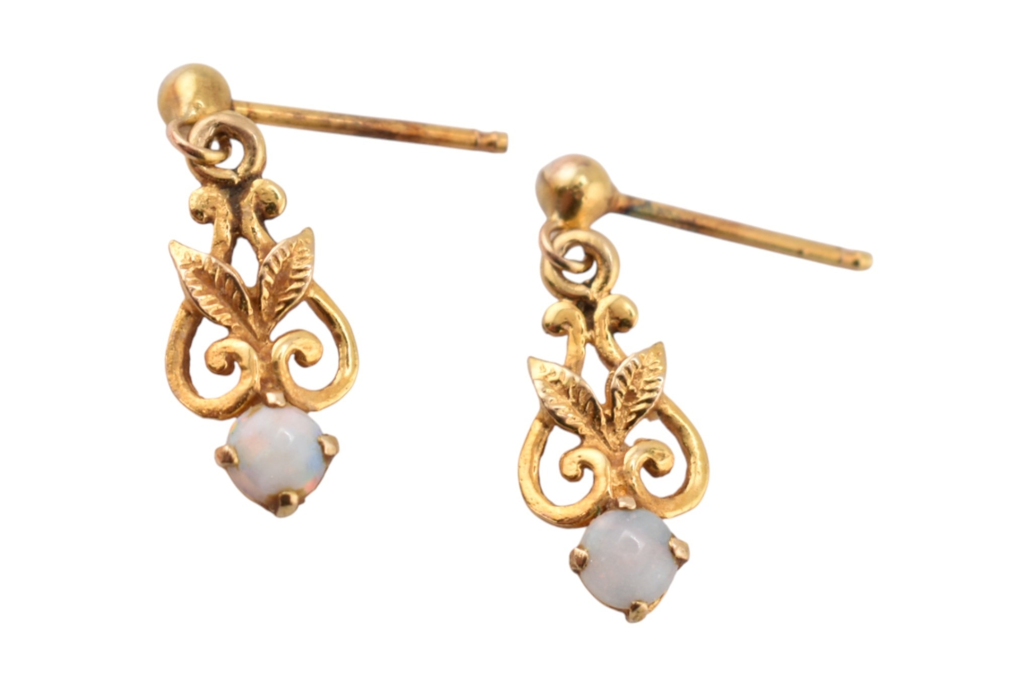 An assortment of gold jewellery. The jewellery to include a sovereign mount stamped 9ct, a hallmarked 9ct gold earrings set with opal and a hallmarked 9ct gold cross pendant with star cut decoration. Total weight 2.9g.