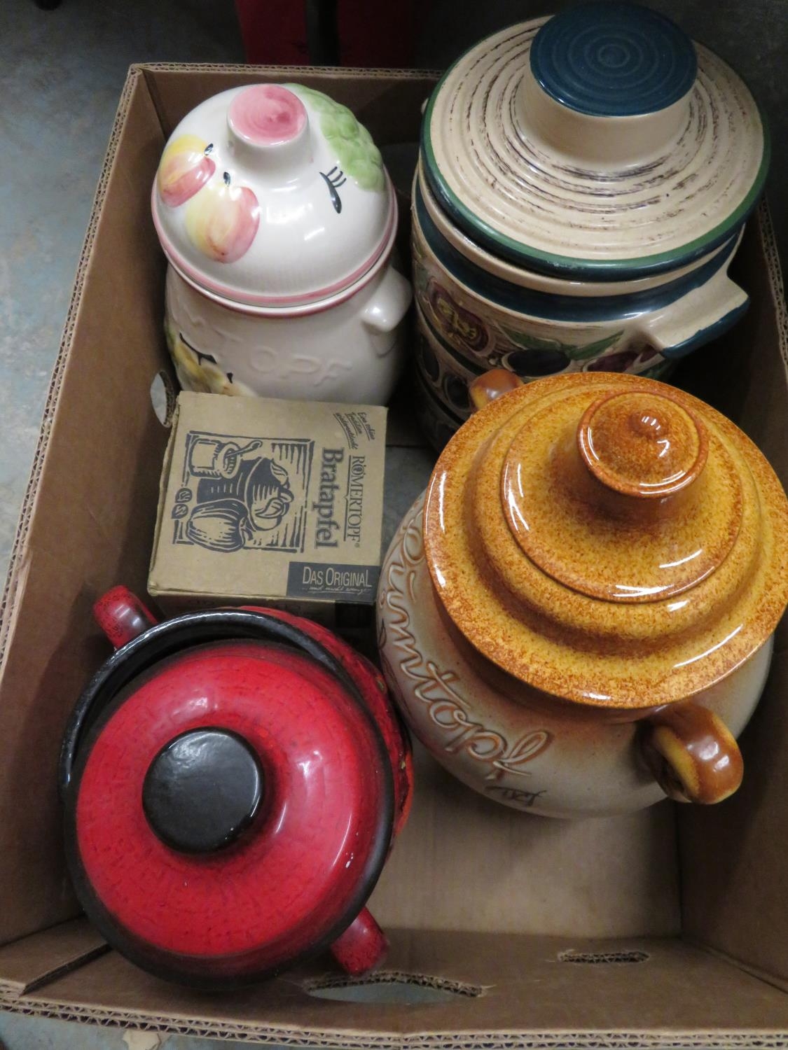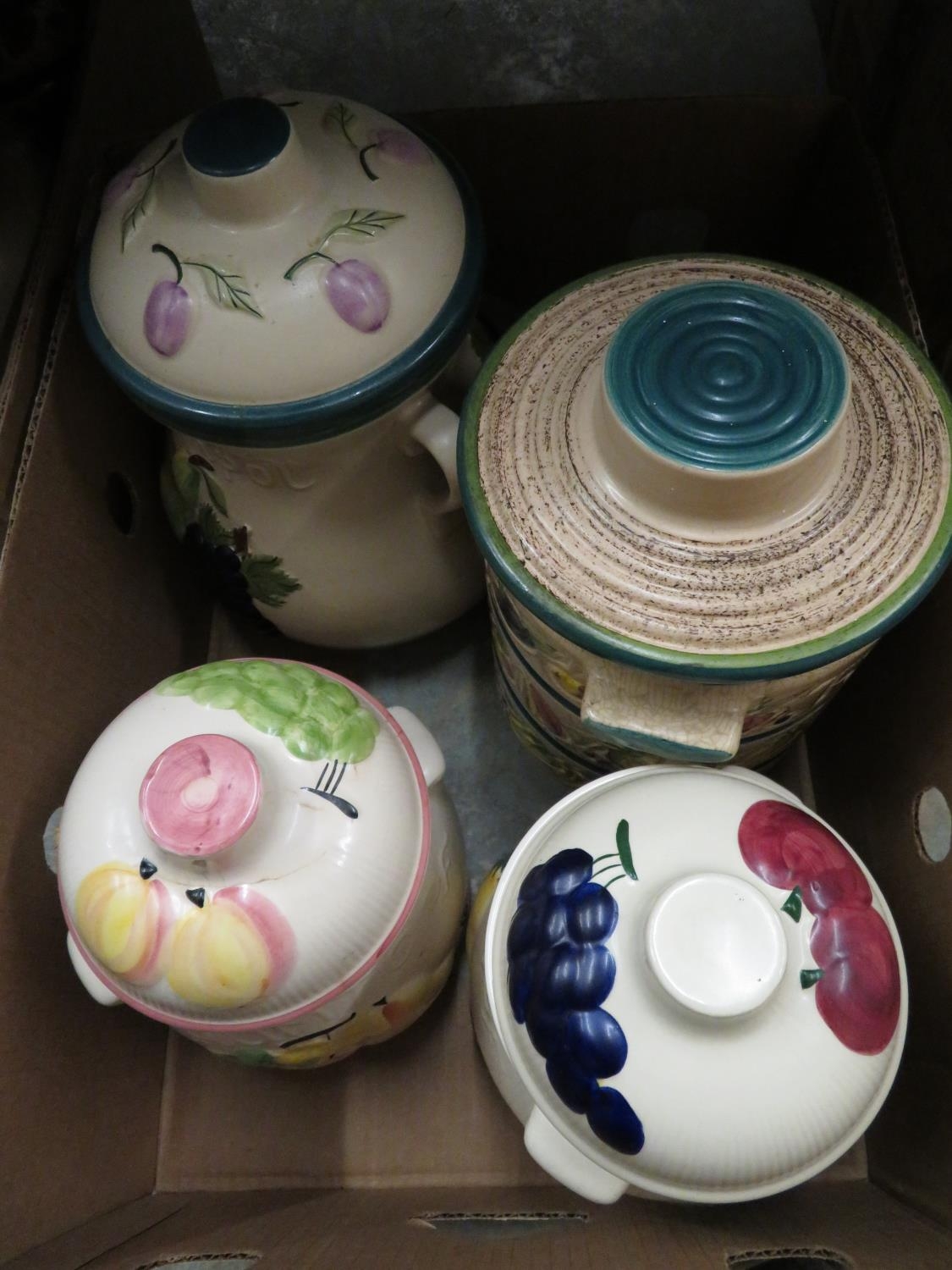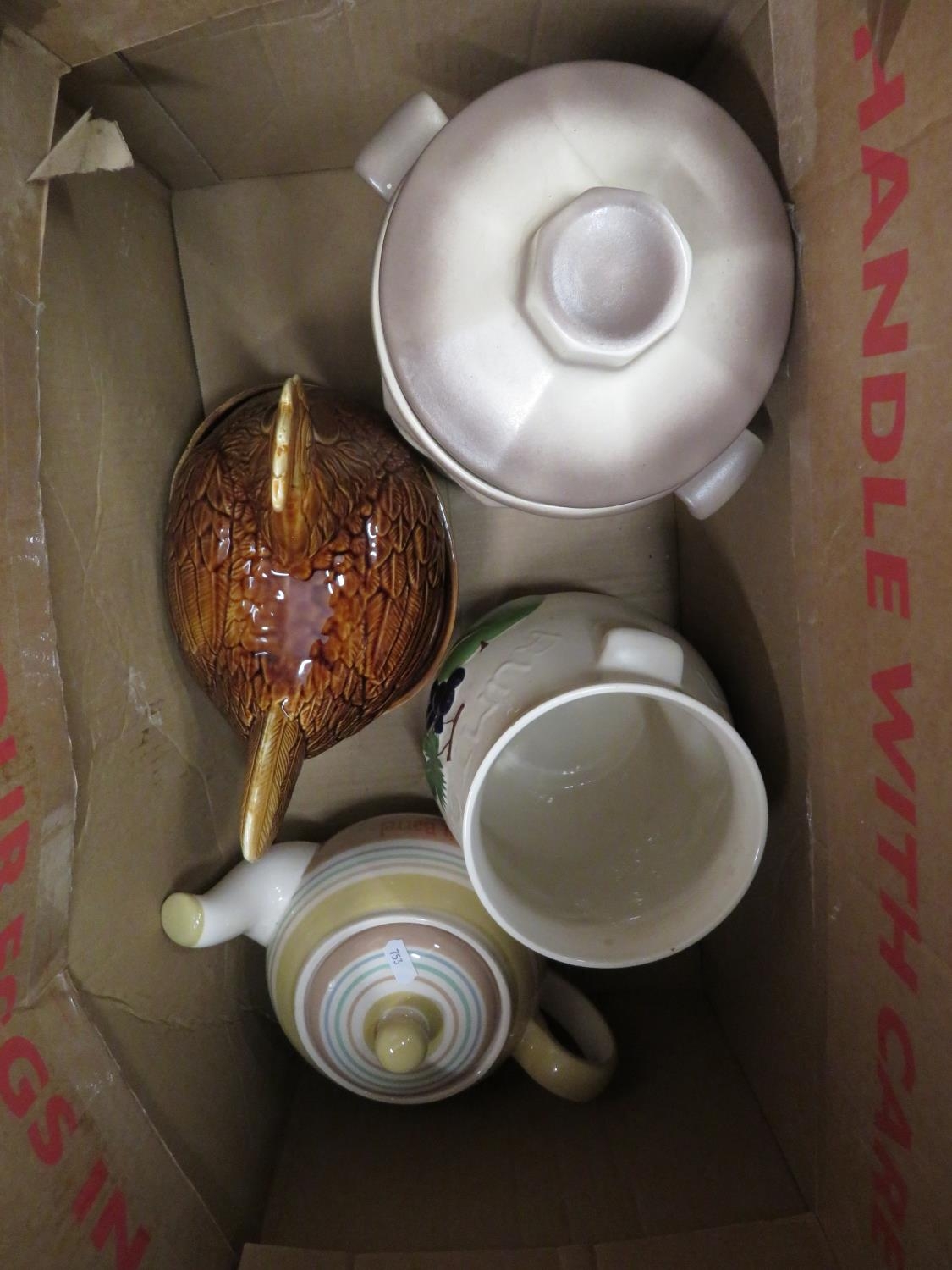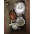 Collection of various Rumtopf, a egg on nest tureen and cover, large Ringtons biscuit barrel in the form of a tea pot (three boxes)