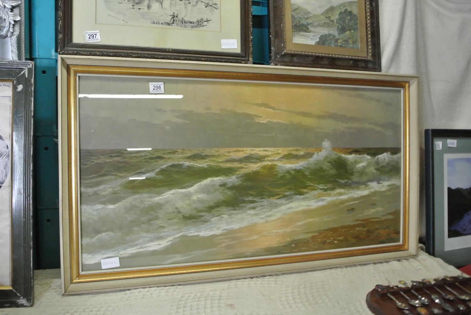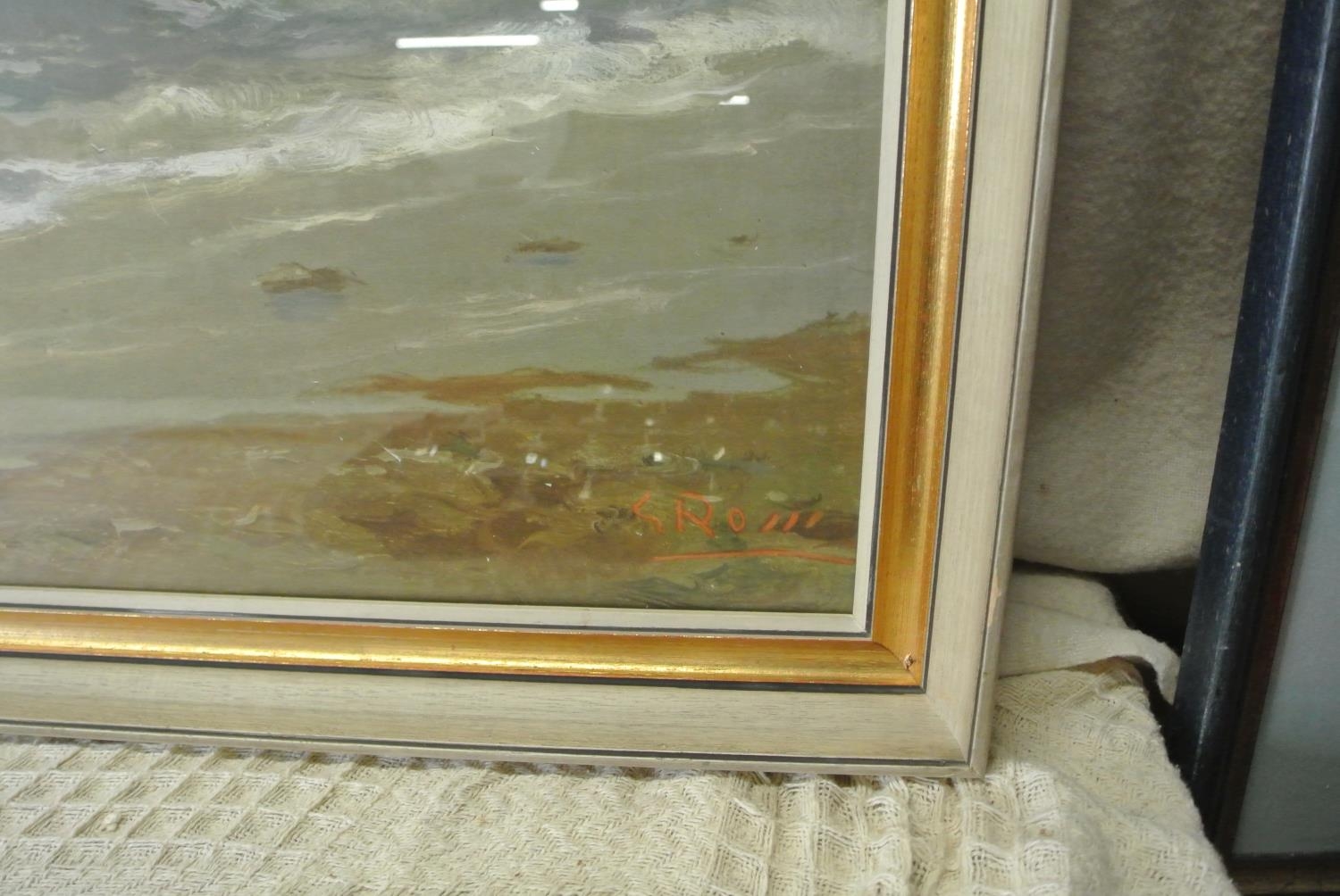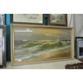 A large framed painting of a coastal scene, signed by artist 'GROIII'.