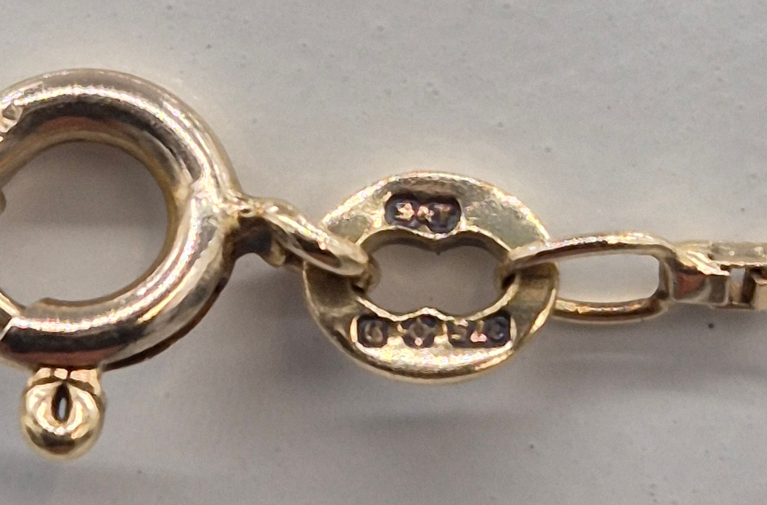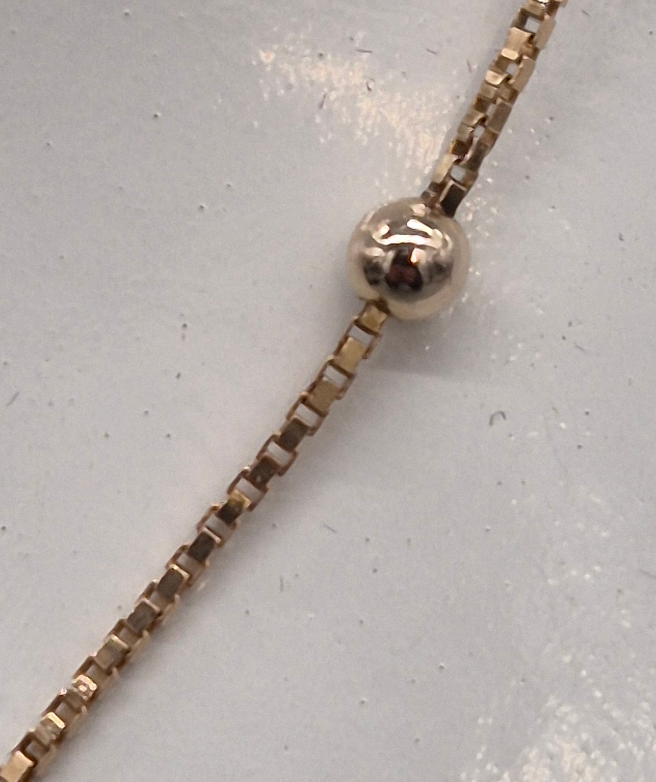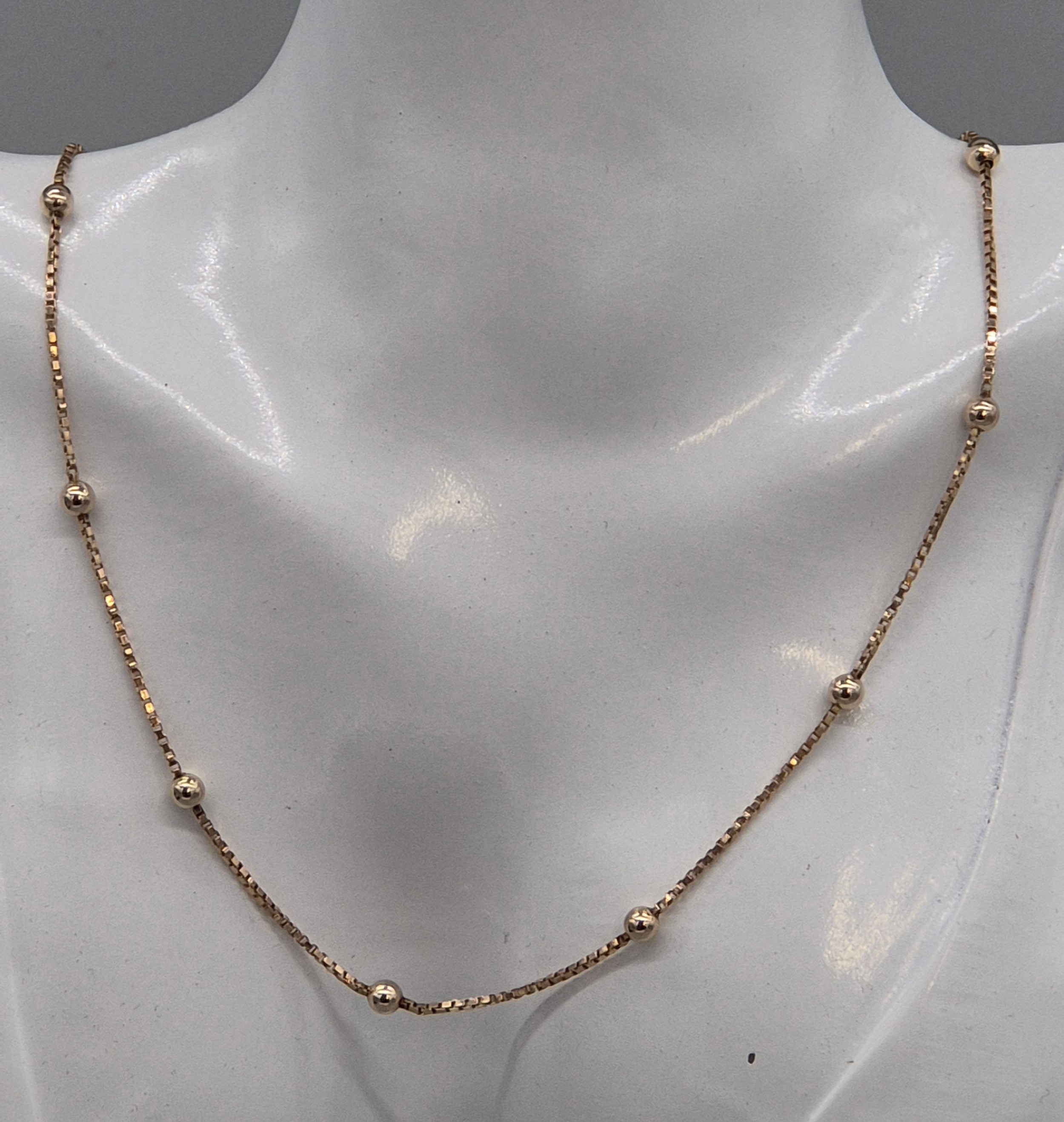 9ct yellow gold necklace fitted with white gold spheres. 5.14grams. 40cm length.