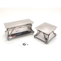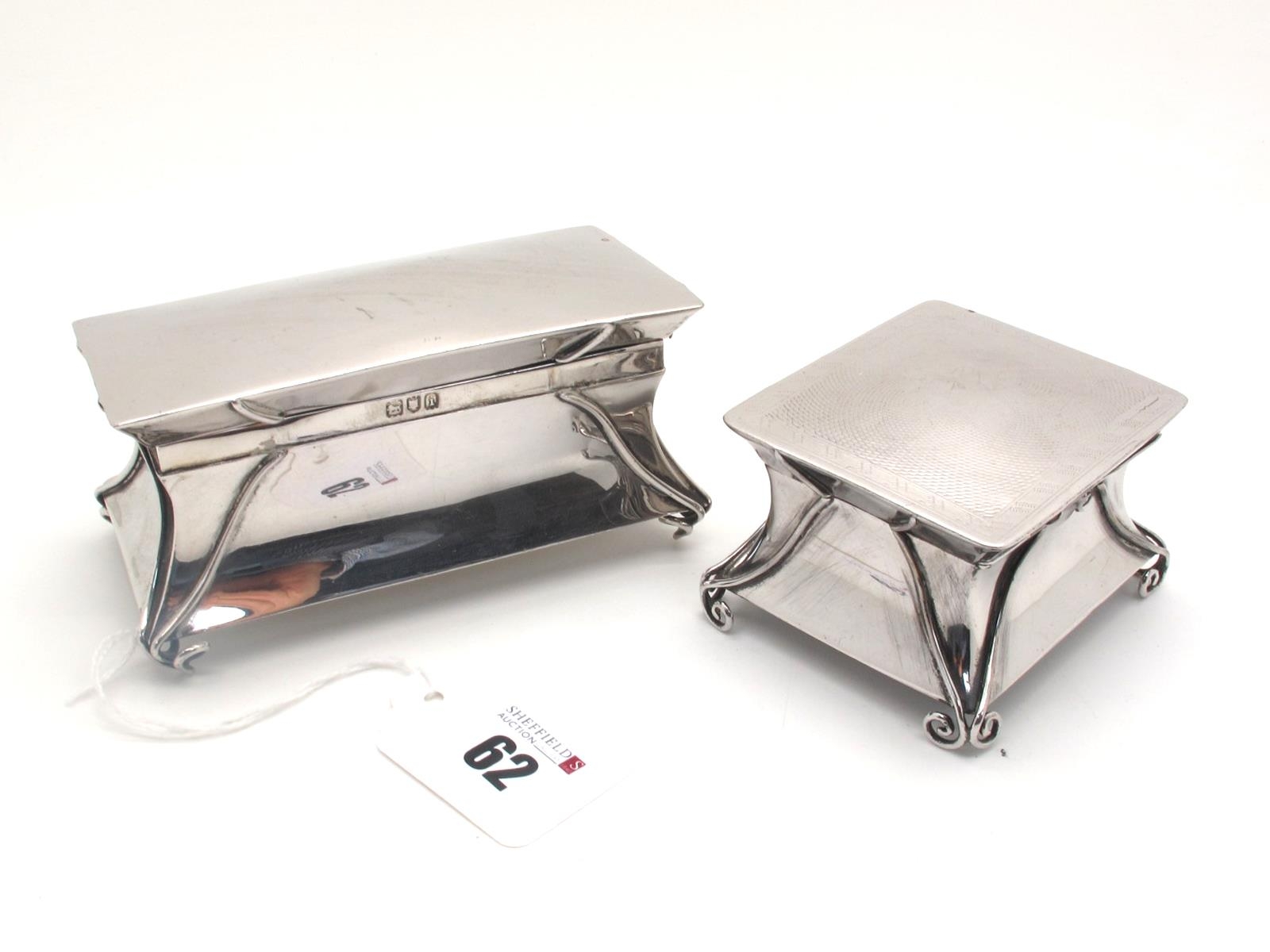 A Hallmarked Silver Lidded Trinket Box, London 1904, of Arts & Crafts style, gilt lined, sinuous on scroll feet; base 11.7cm wide; Together with Another Hallmarked Silver Trinket Box, D&FLd, London 1905, of similar design, gilt lined, with engine turned detail, on scroll feet, base 7.5cm wide. (2)