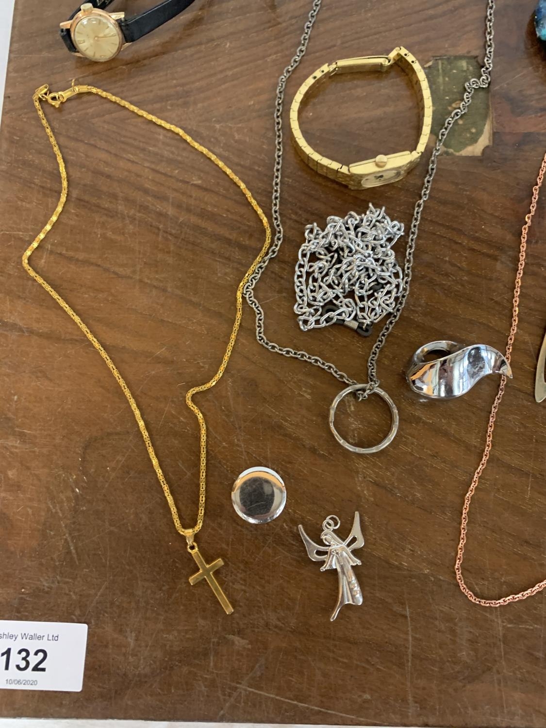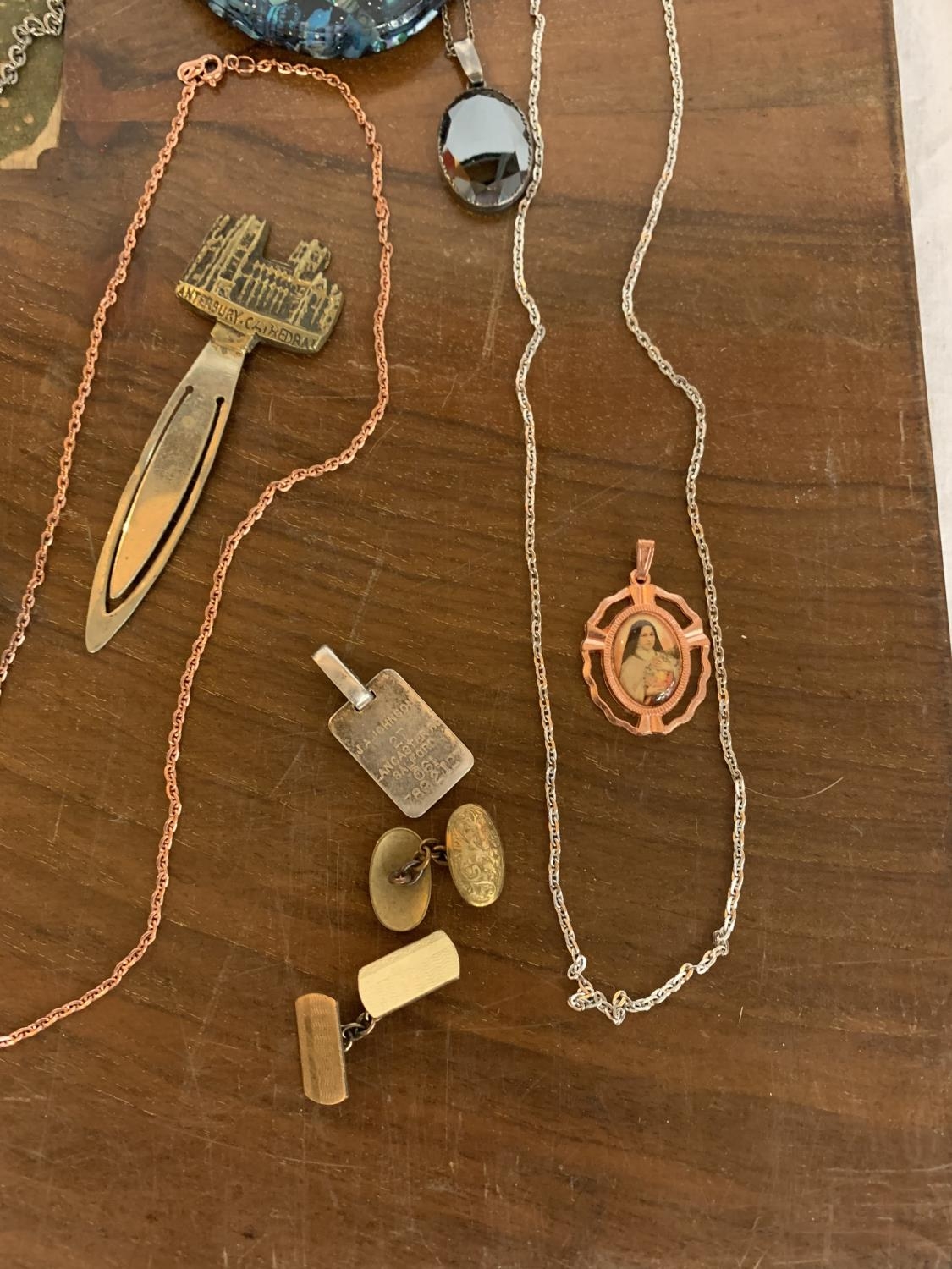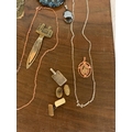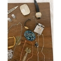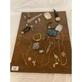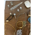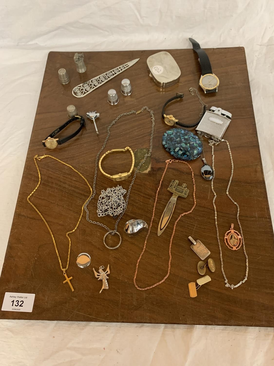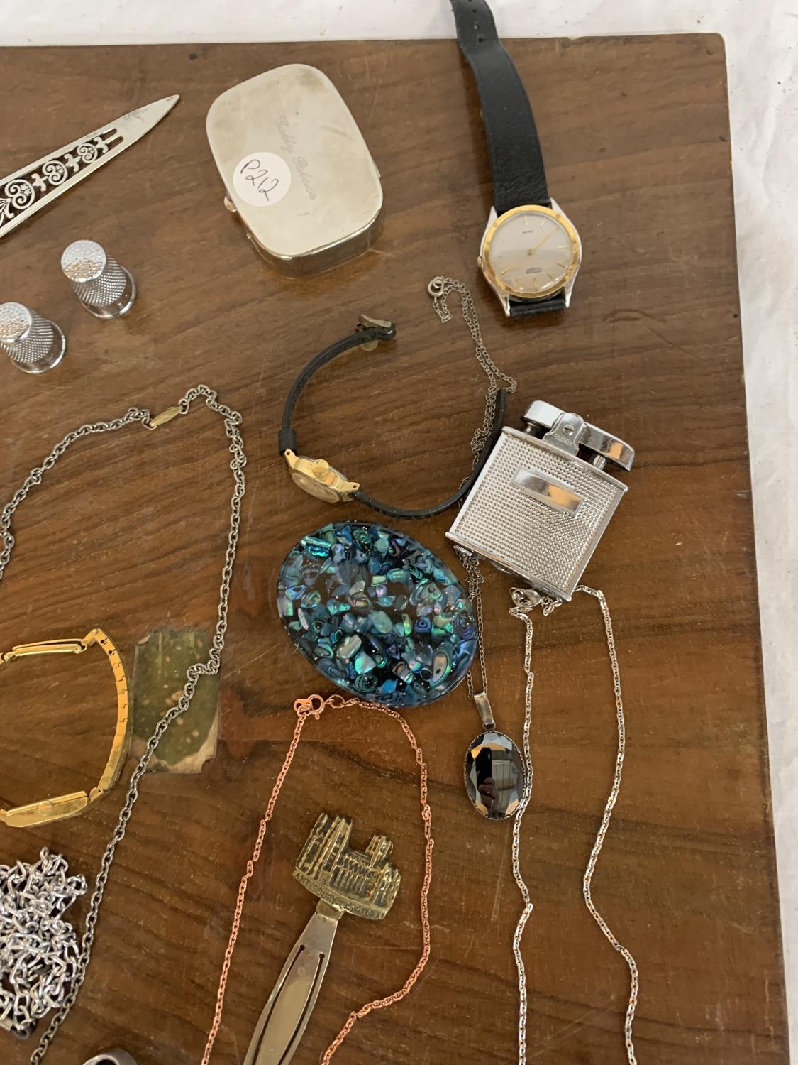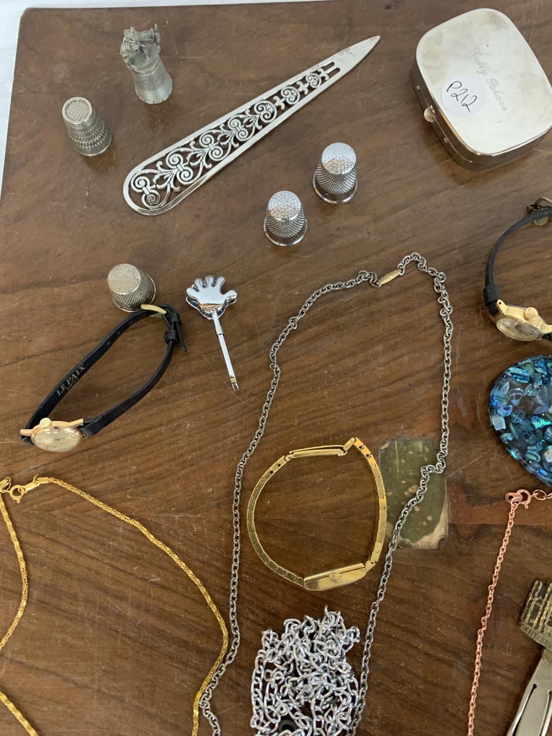 VARIOUS ITEMS OF COSTUME JEWELLERY TO CHAINS, WATCHES AND THIMBLES, LETTER OPENER ETC