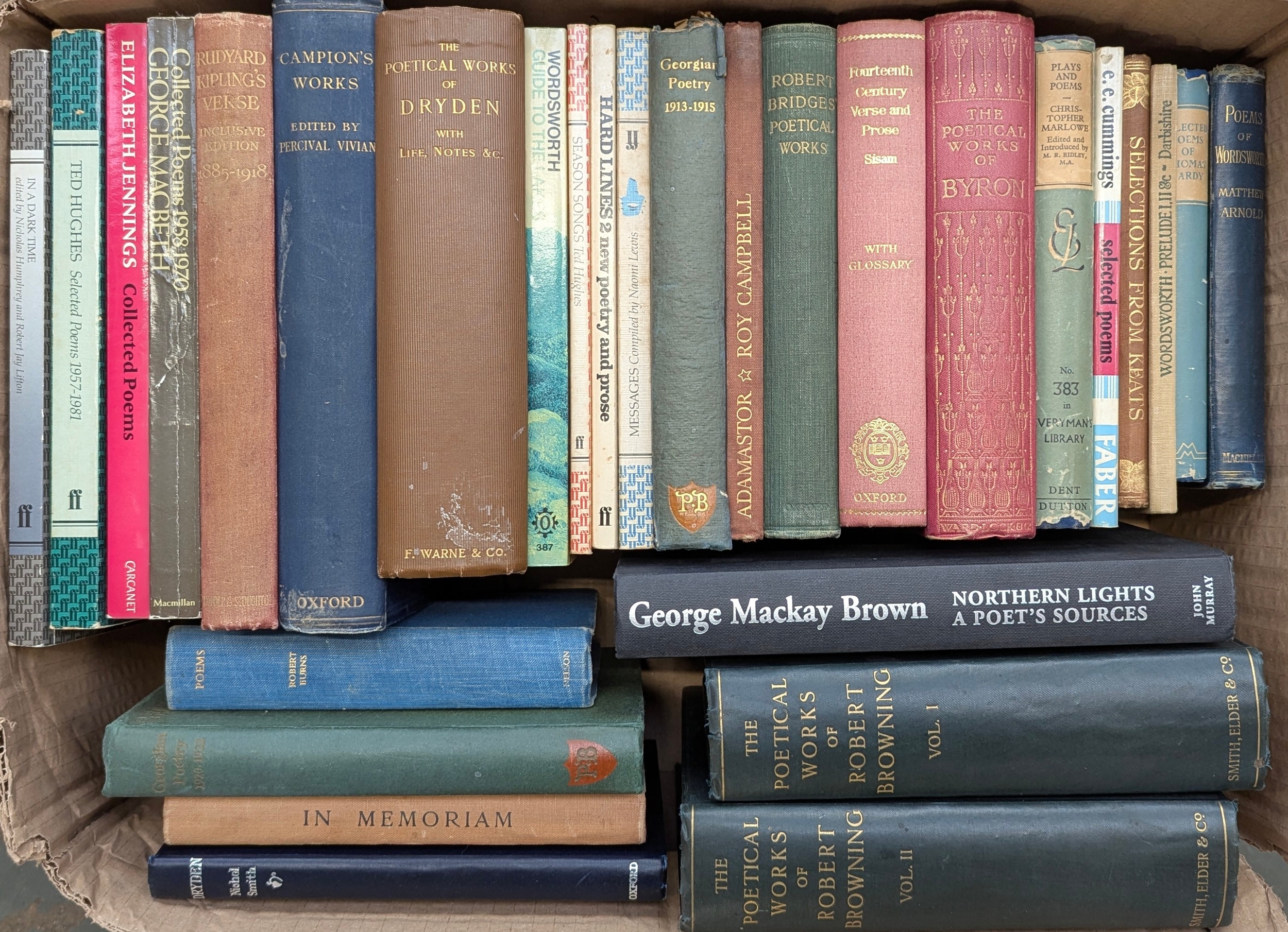 BOOKS, POETRY. A varied box. Classic 19th C. poets and some mid-20th C. examples. Generally VG.