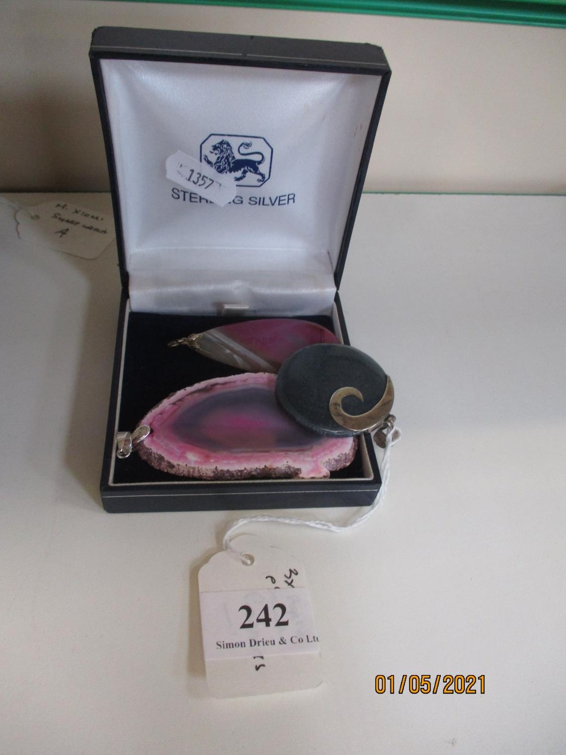 Three Agate and solid silver pendants