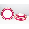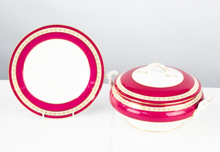 THIRTY FIVE PIECE SPODE BONE CHINA PART DINNER SERVICE, with sponged maroon and gilt borders, comprising: