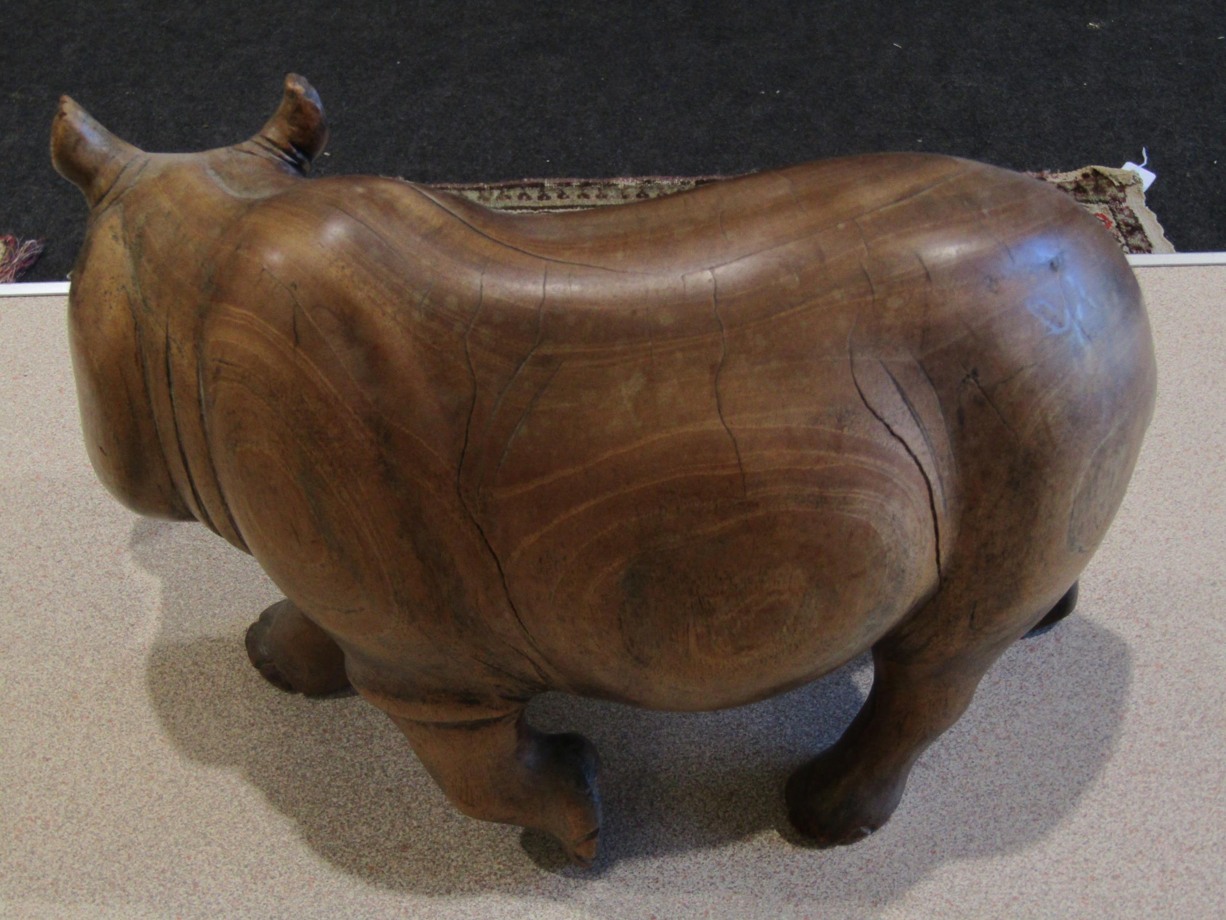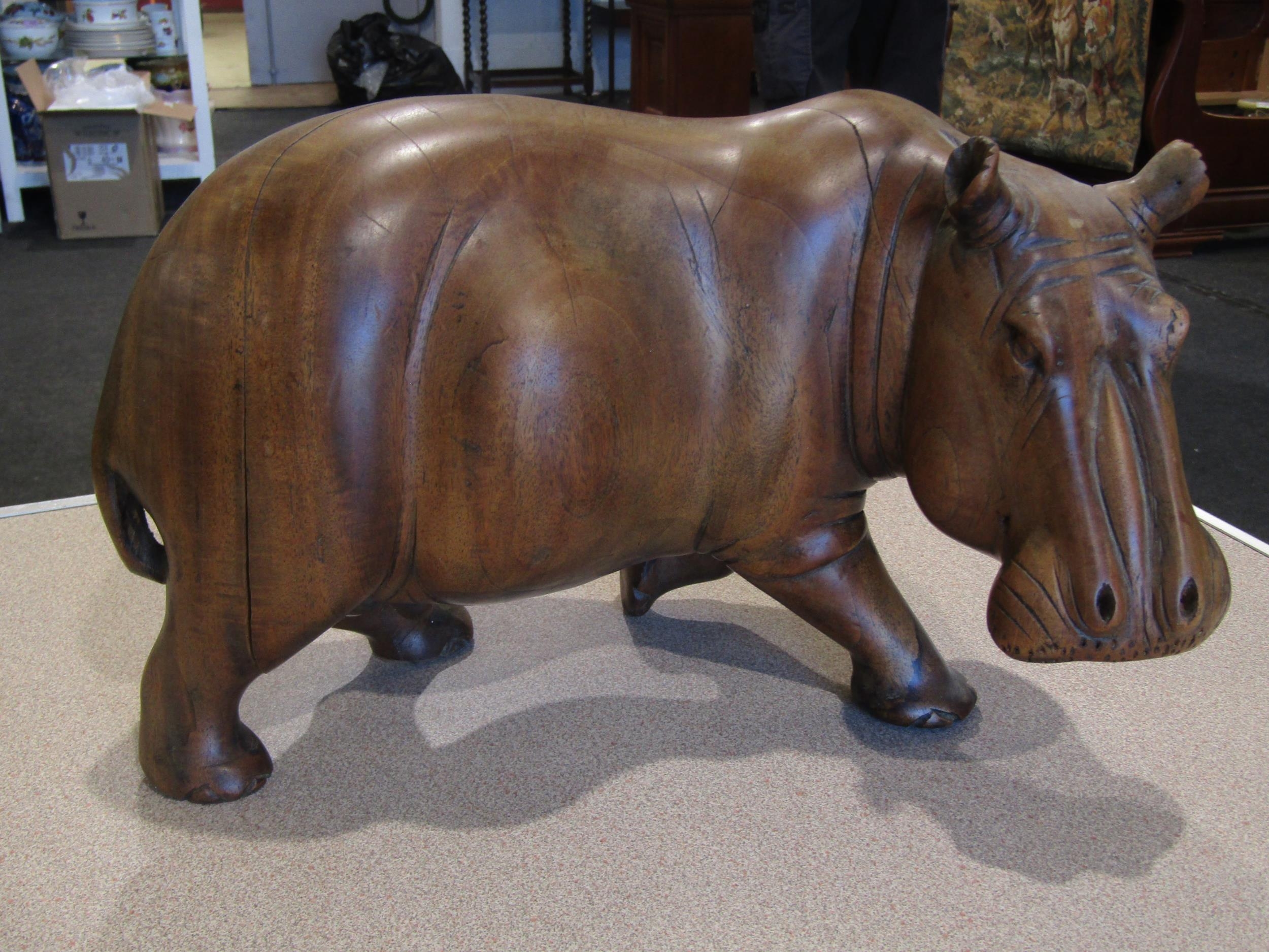 A large carved hardwood figure of a hippo, 34cm long, some splits