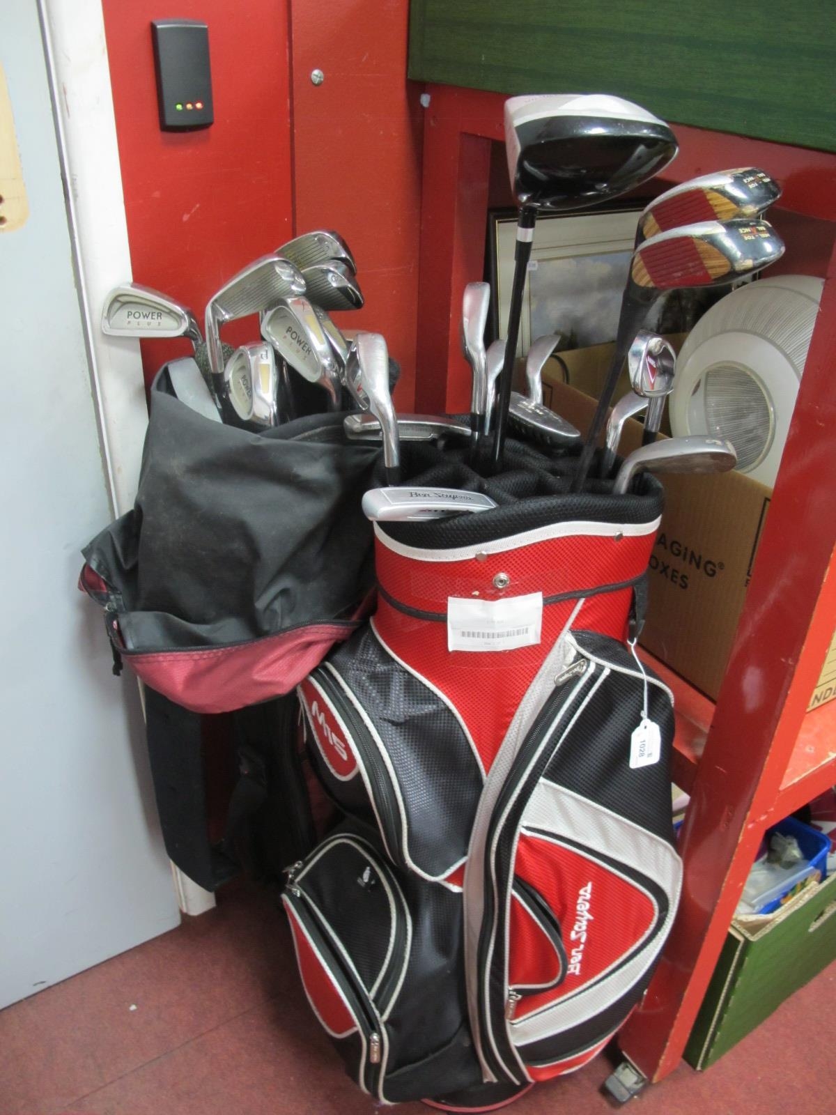 Golf clubs to include Irons, putters, woods and hybrids from Power Plus, Ben Sayers, Ping, Zebra in two golf bags. (2)