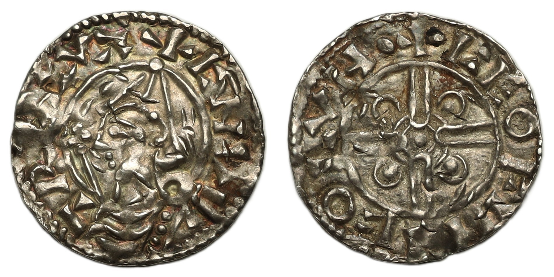 Cnut (1016-1035) Penny, pointed helmet type London, moneyer ...