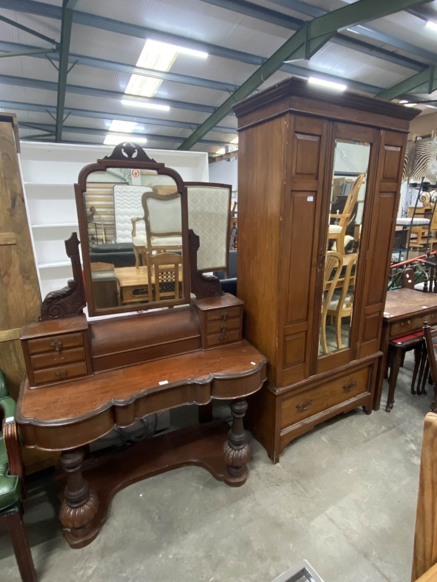 Victorian mahogany Duchess dressing table 180H 120W 50D & a Victorian satinwood mirrored wardrobe 200H 101W 46D