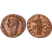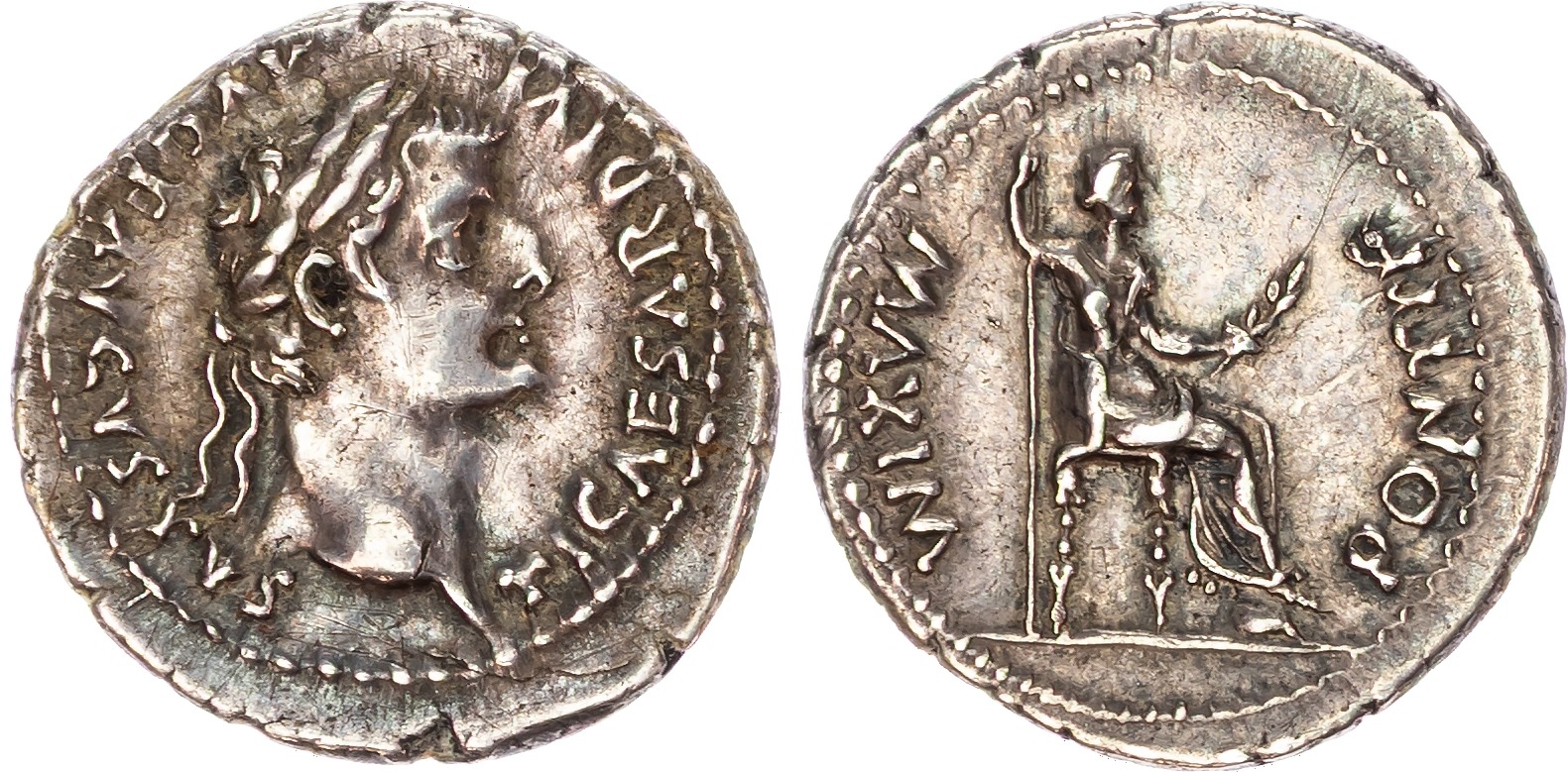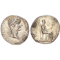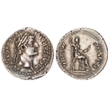 TI CAESAR DIVI F AVGVSTVS, laureate head of Tiberius right. Rev. PONTIF – MAXIM, female figure seated left on throne with ornate legs. (RIC 30; BMC 48; RSC 16a). Extremely Fine. Large flan. Reverse particularly well-centred. Pleasing cabinet tone.