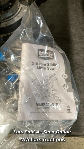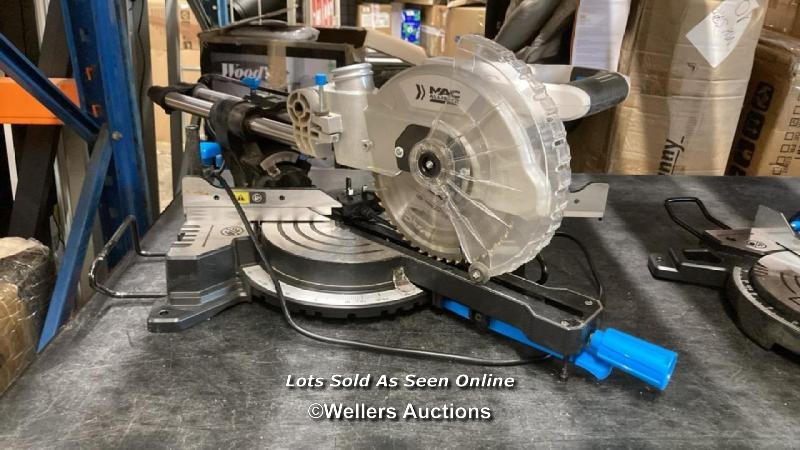 MAC ALLISTER 1500W 220-240V 210MM CORDED COMPOUND MITRE SAW / VIEW, BID AND BUY IN THE ROOM, THEN TAKE AWAY THE SAME DAY / VIEWING FROM 8AM ON THE DAY OF THE SALE