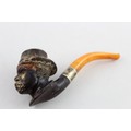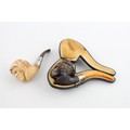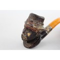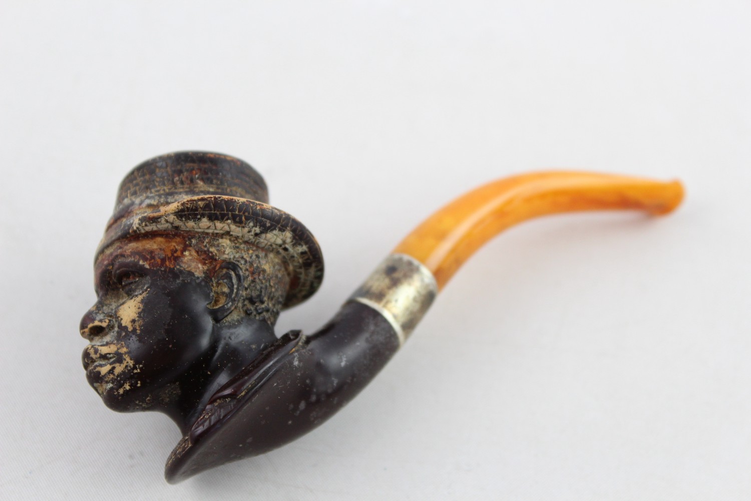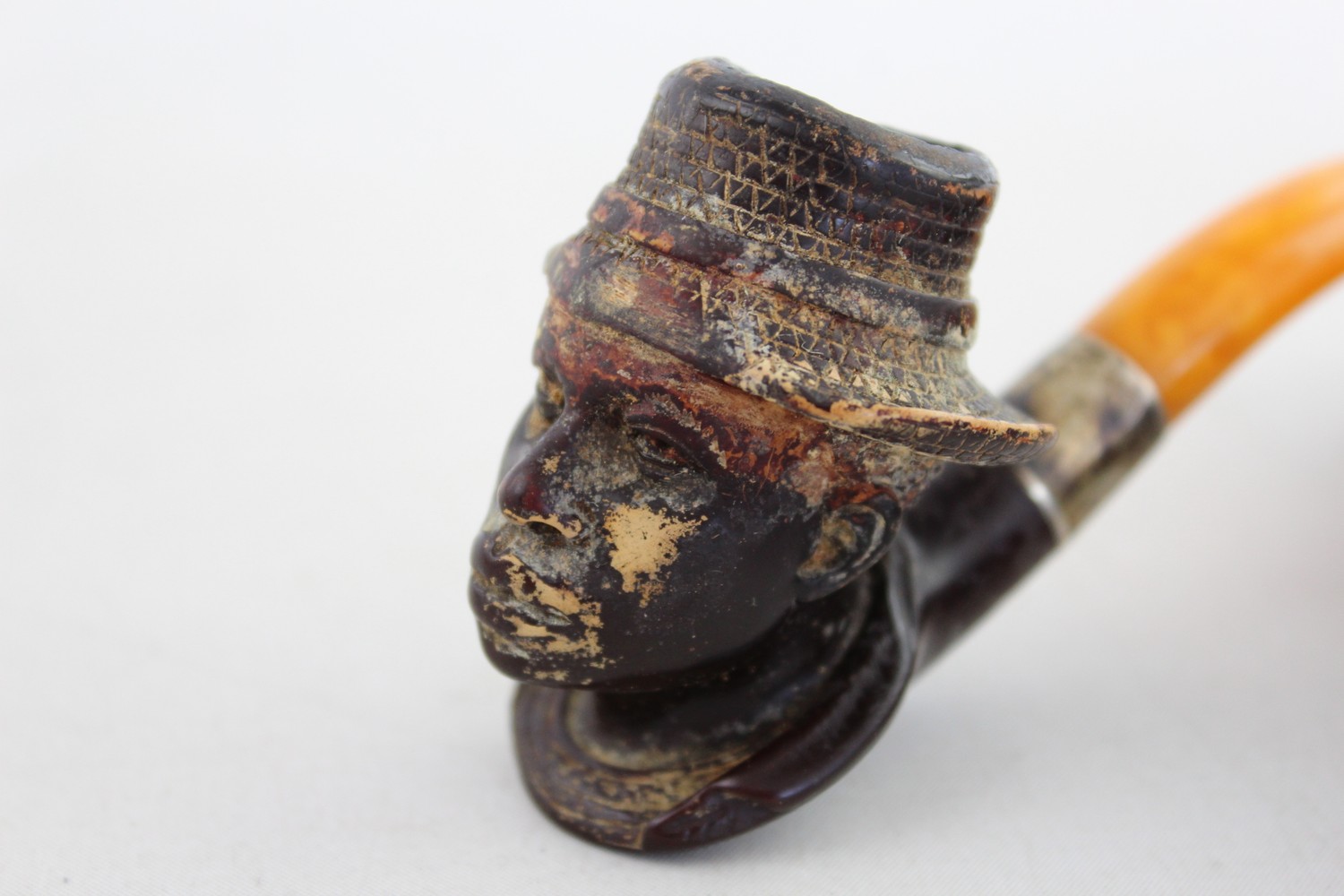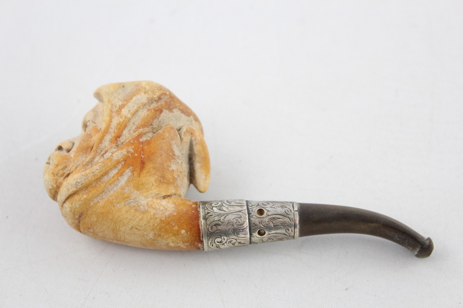 2 x Antique Carved MEERSCHAUM Figural Estate Smoking Pipes Inc SOLID SILVER Mout