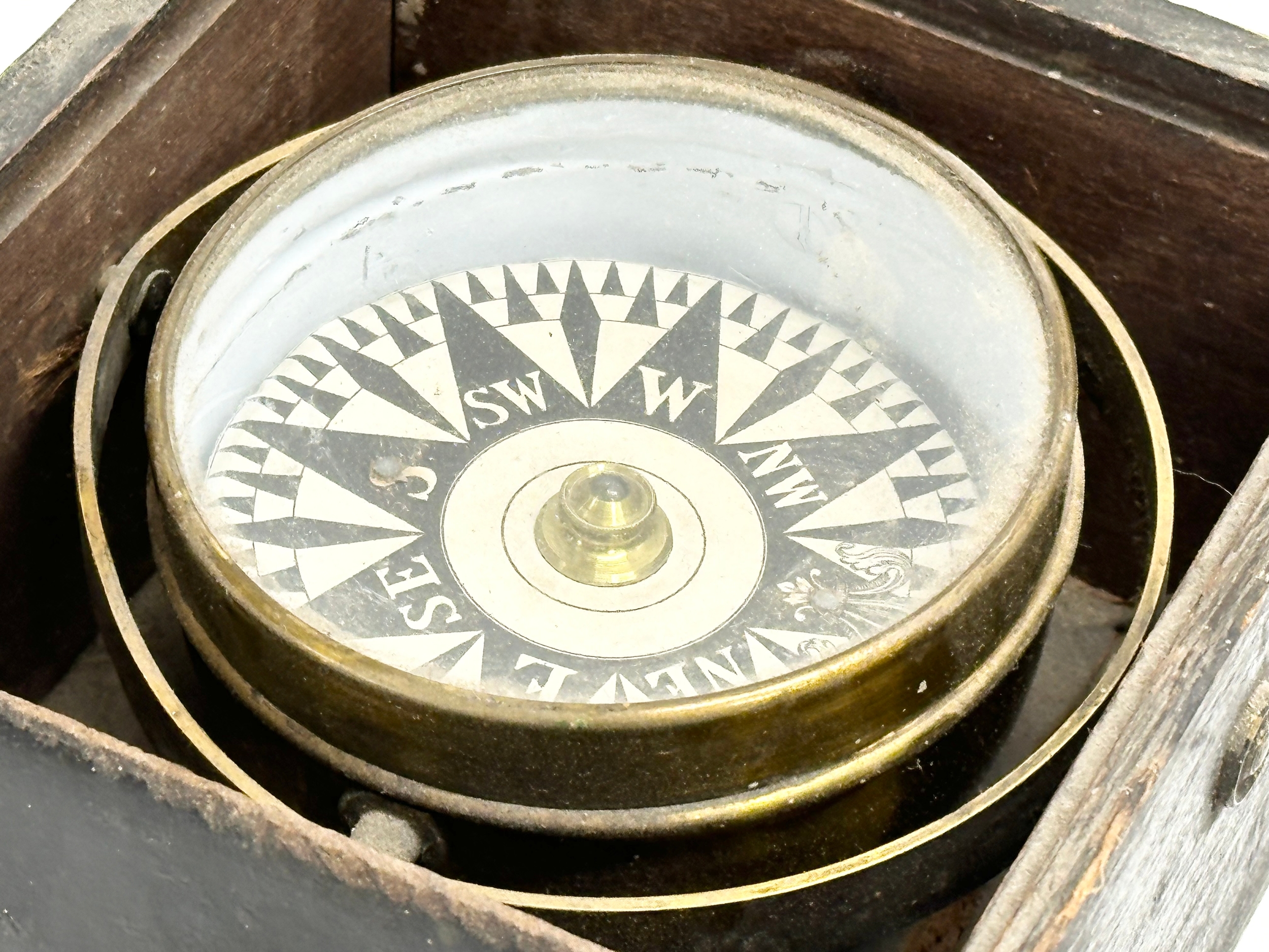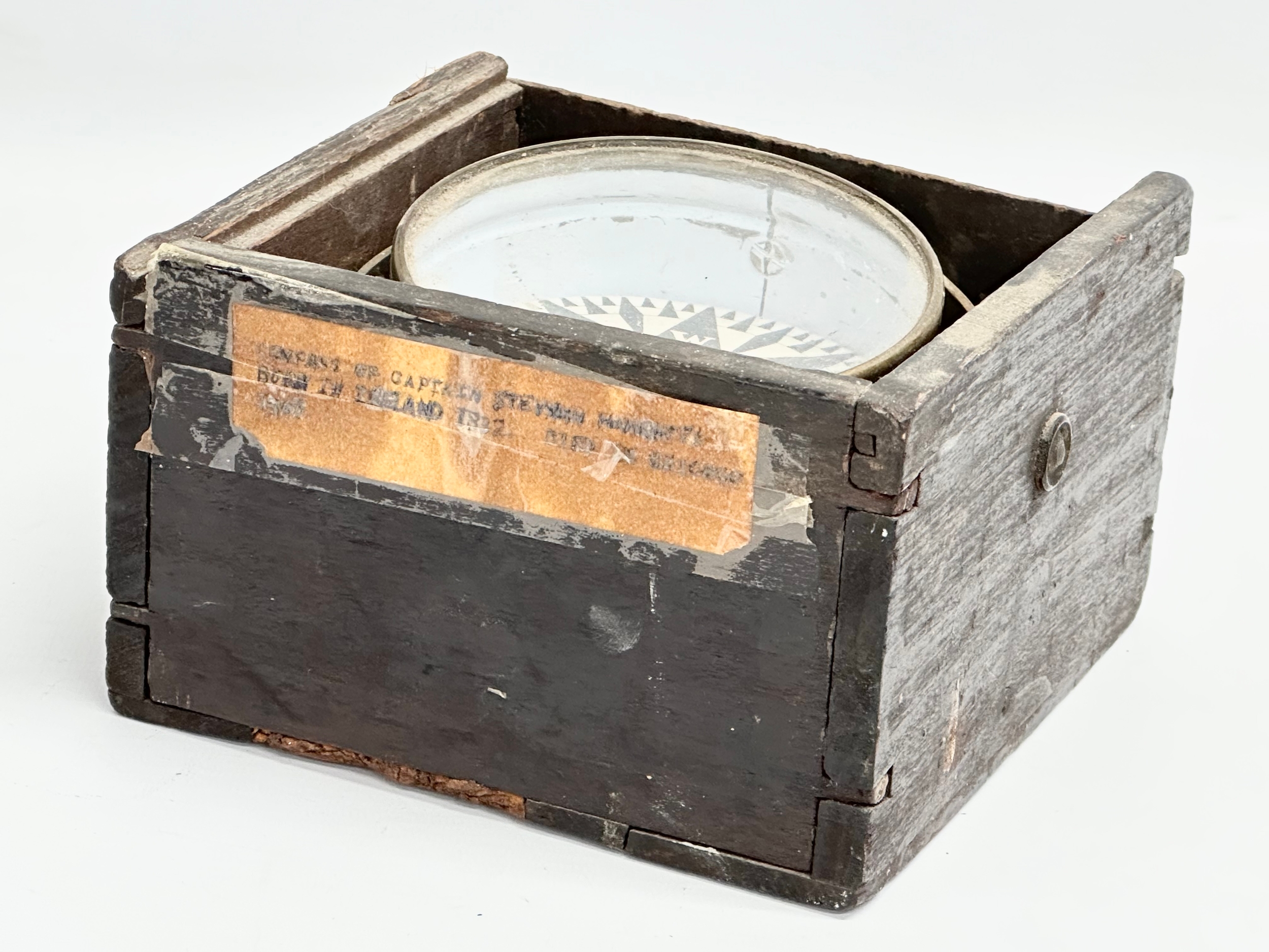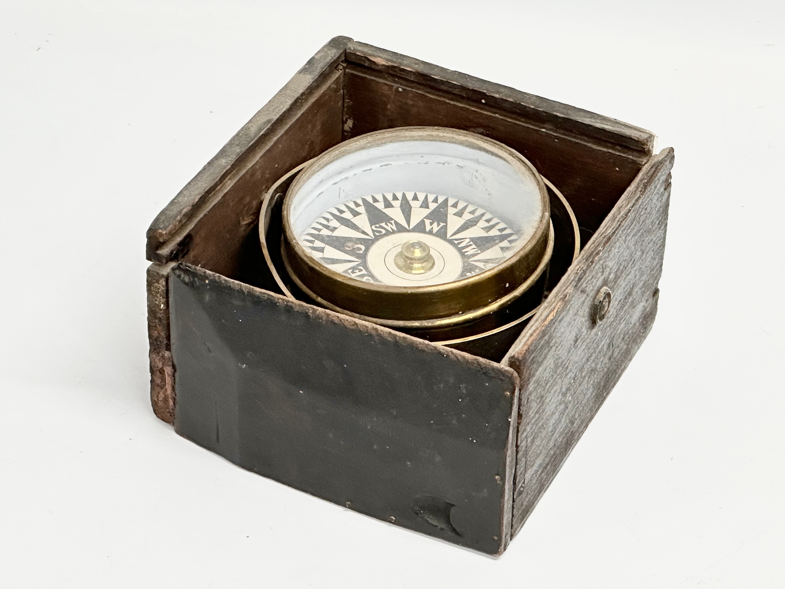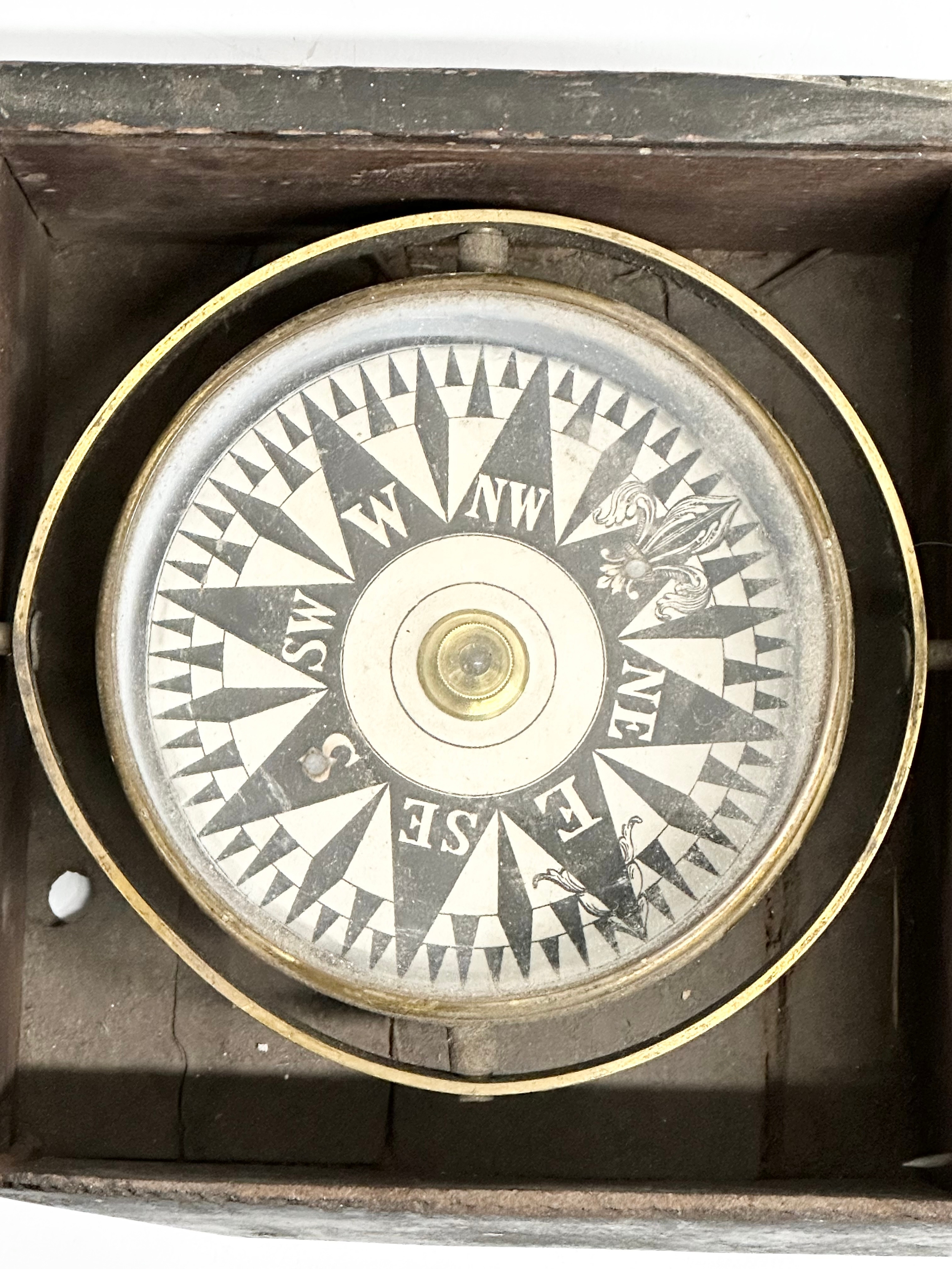 A 19th/early 20th century ships compass in box 16x16x10cm