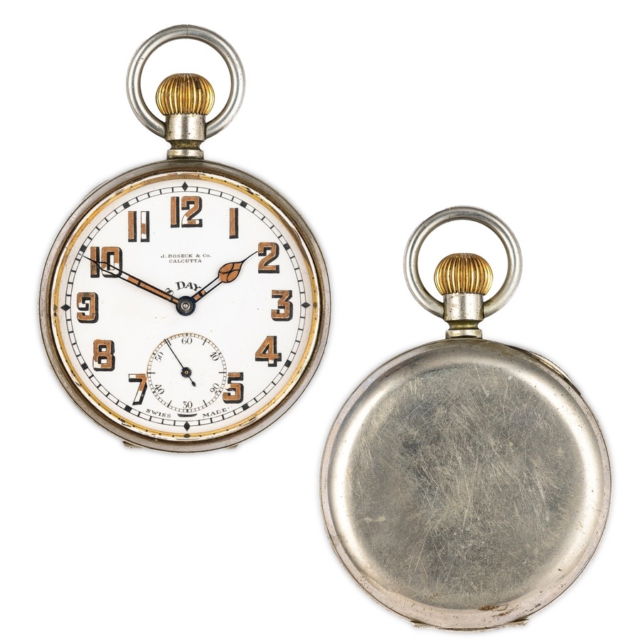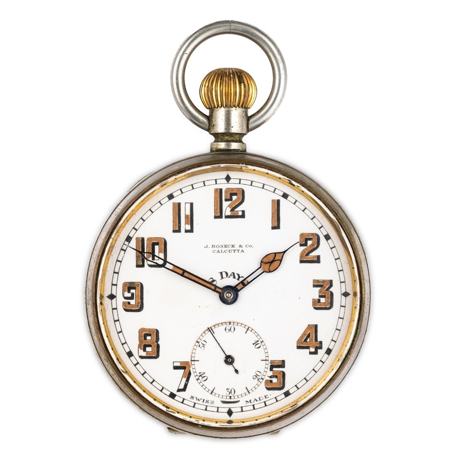 J. BOSECK & CO, CALCUTTA, 8 DAY POCKET WATCH, SWITZERLAND 1920 CIRCA
